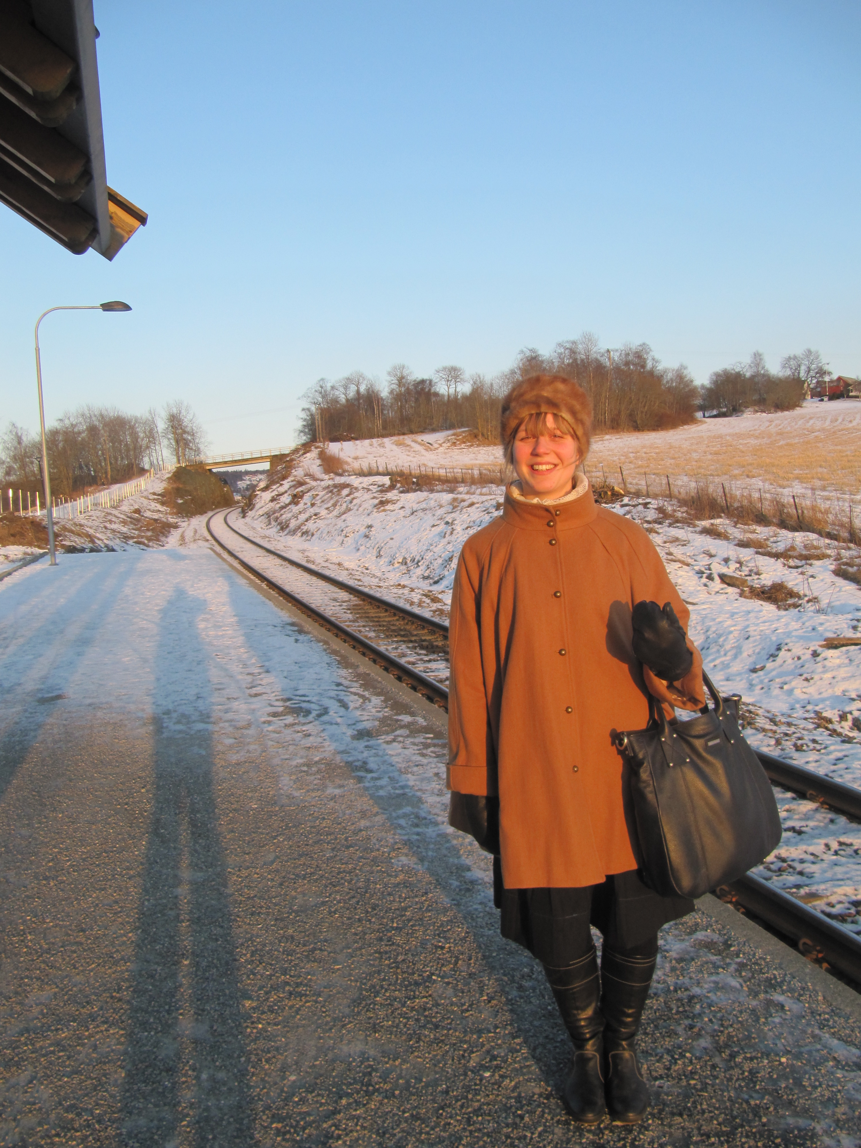 Det var deilig vær, men en del vind på HINT (Høgskulen i Nord-Trøndelag) i Levanger. Her står vi og venter på toget hjem igjen. Levanger er omtrent 1,5 timer fra Trondeim. Og høyskolen ligger nesten nede i fjæra, det må være deilig der om sommeren.