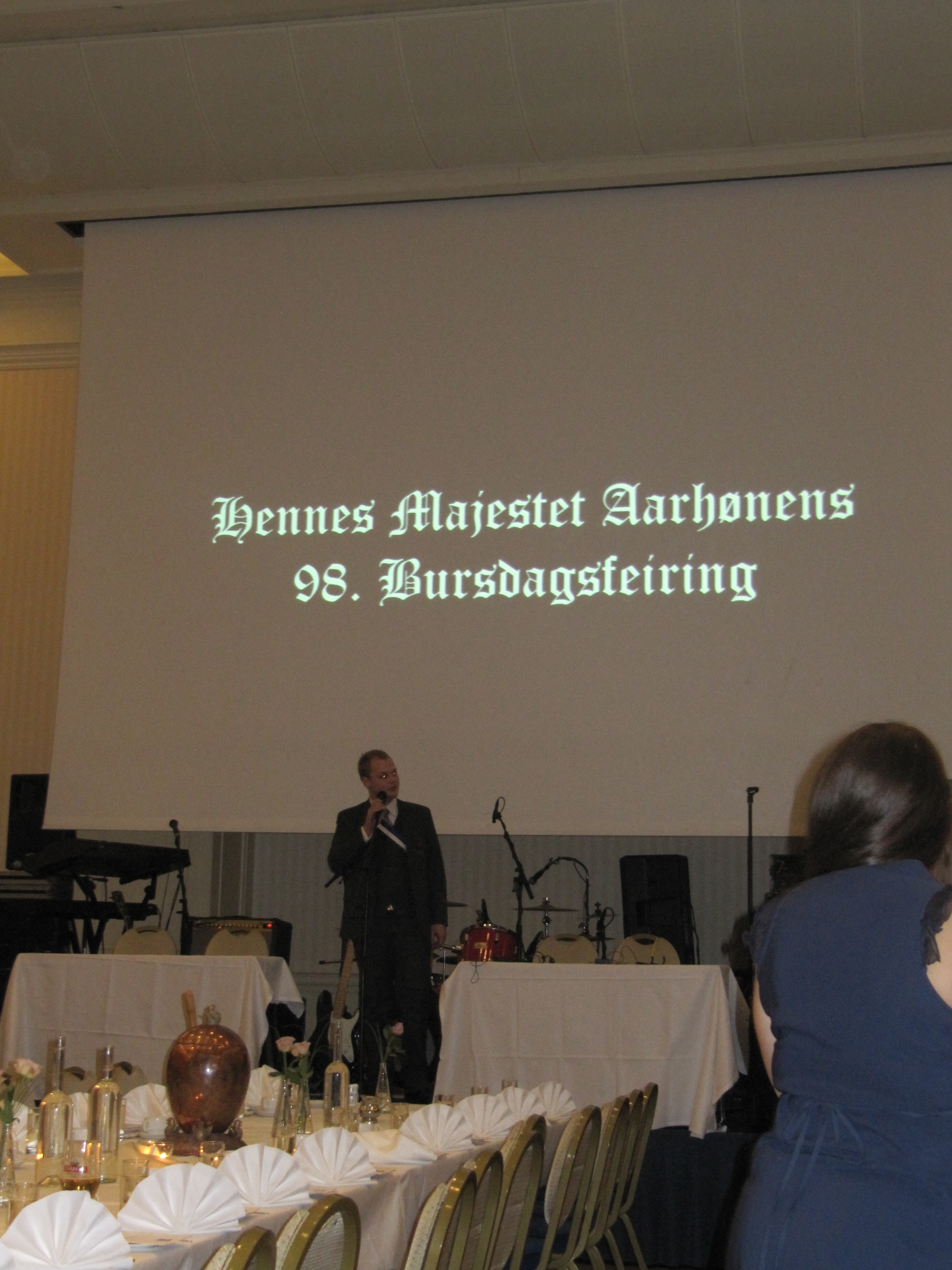 Hennes Majestet Aarhønen er linjeforeningen til de som går bygg- og miljøteknikk (bedre kjent som bygg) på NTNU. Hvert år feirer de Hennes Majestets bursdag med galla. Det er også her hvor promosjoner og daljeutdelinger skjer. Jeg fikk liv til å være med Helge, en kompis, på bursdagsfest sist helg.