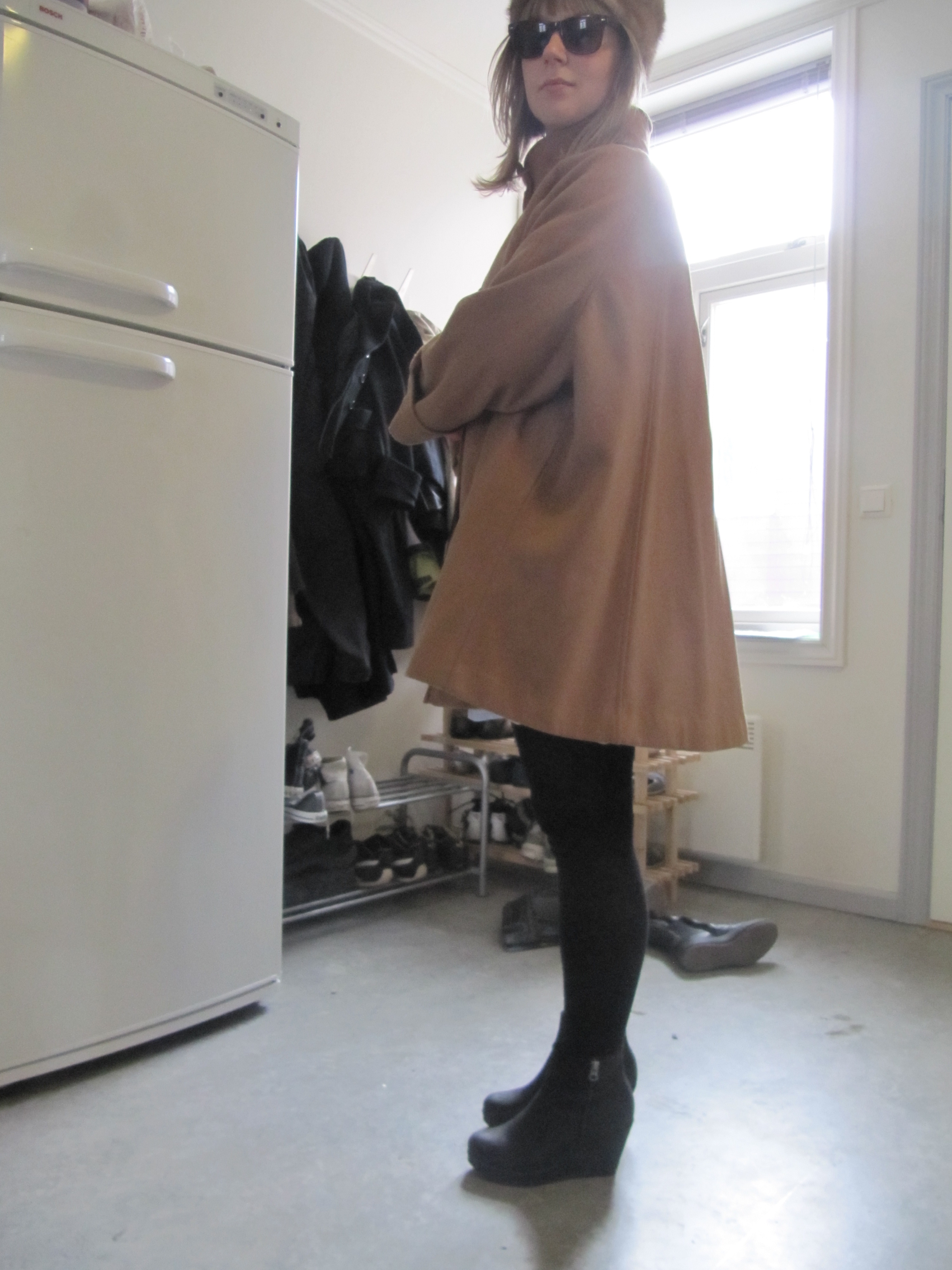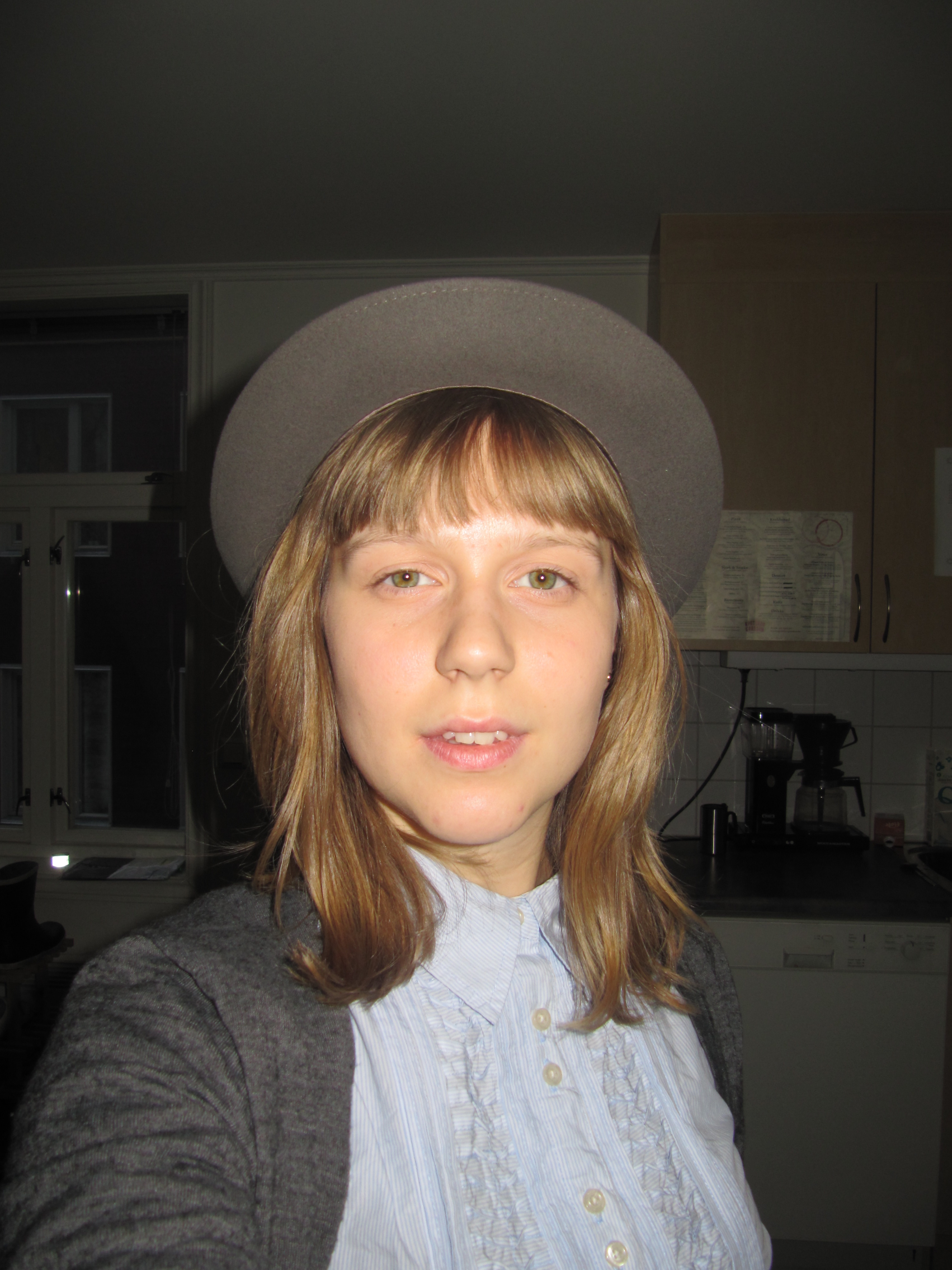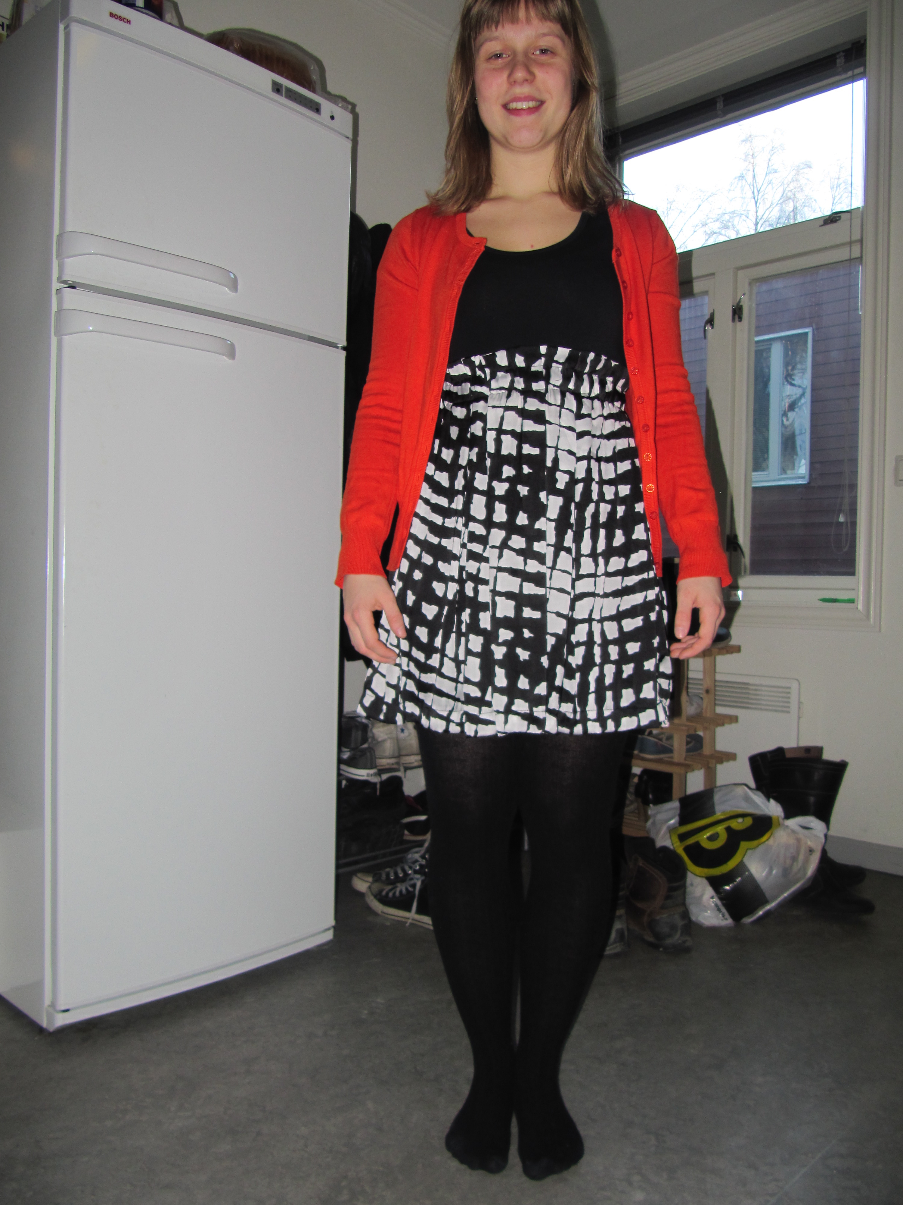 My ever faithful shirtdress, this time with electric orange D&G belt, grey merino cardigan from H&M (men section) and my lovely Borsalino