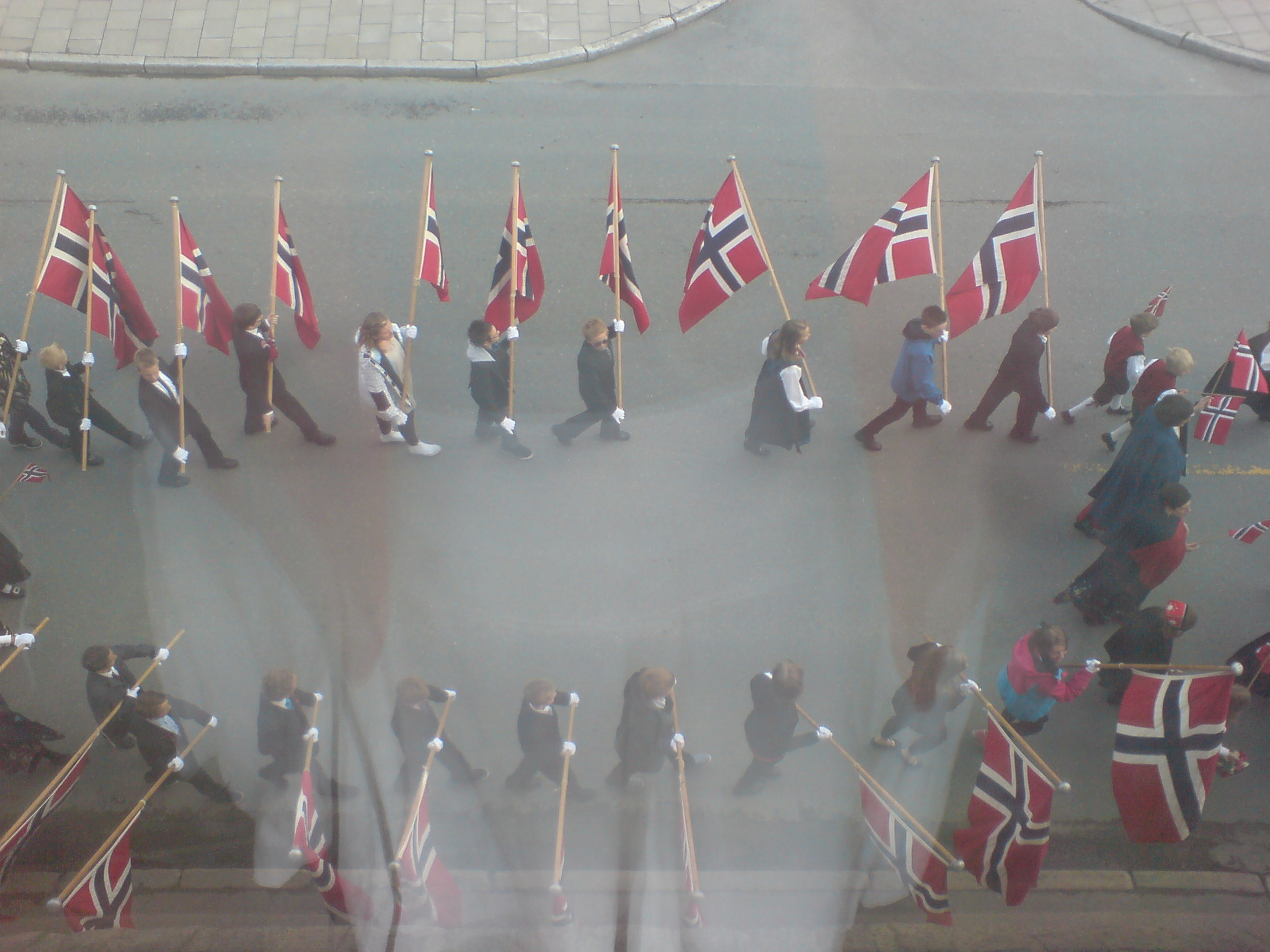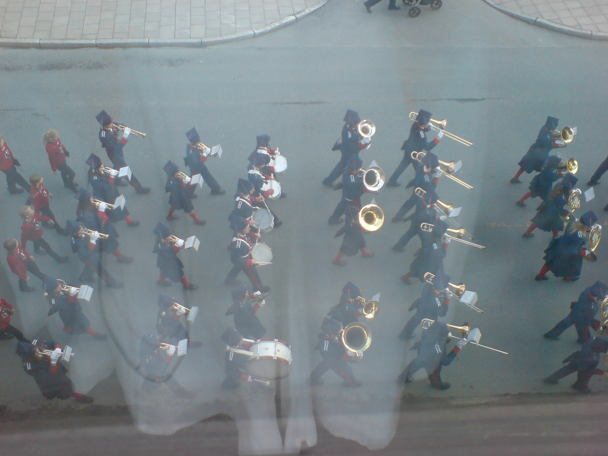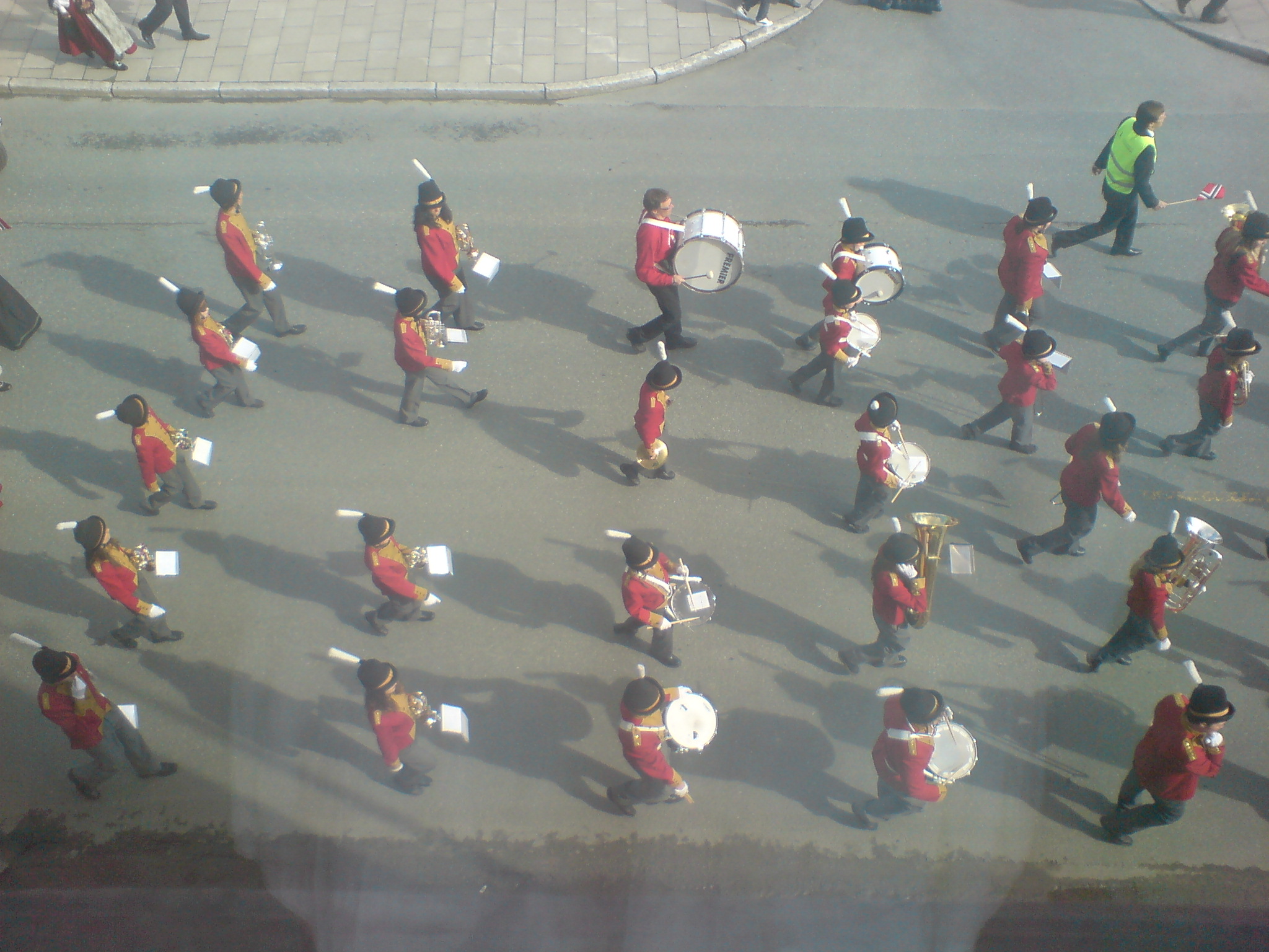 I spent 17. May, our constitution day at the office, but as the office is in the city centre, the parade came to me, without asking me for permission. So this is the parade seen through my phone and the window of my office. As you can see, marching bands are a big part of it 😉