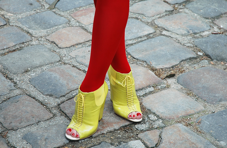 What can I say? The colours. How her nails and tights are exactly the same shade of red. The yellow shoes.