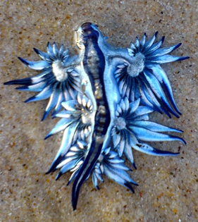 I have found a new cool piece of nature! This one is called Glaucus atlanticus and is a marine gastropod, that is a slug that lives in the ocean. As you might know, I really like sea slugs because they have a number of wonderful adaptations (and they are terribly pretty).