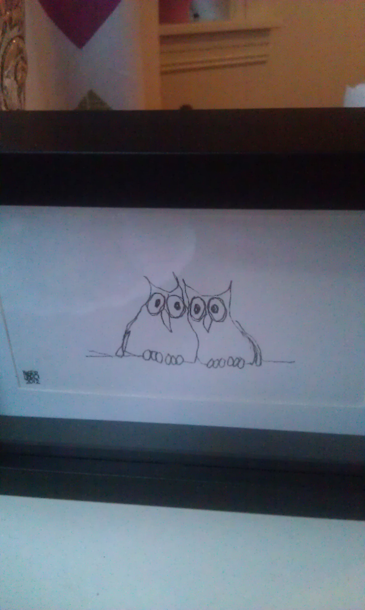 So the weather is quite bad at the moment, snowy and windy and not at all pleasant. So here are some owls to keep you company. The first are a picture that we got as a house warming present.