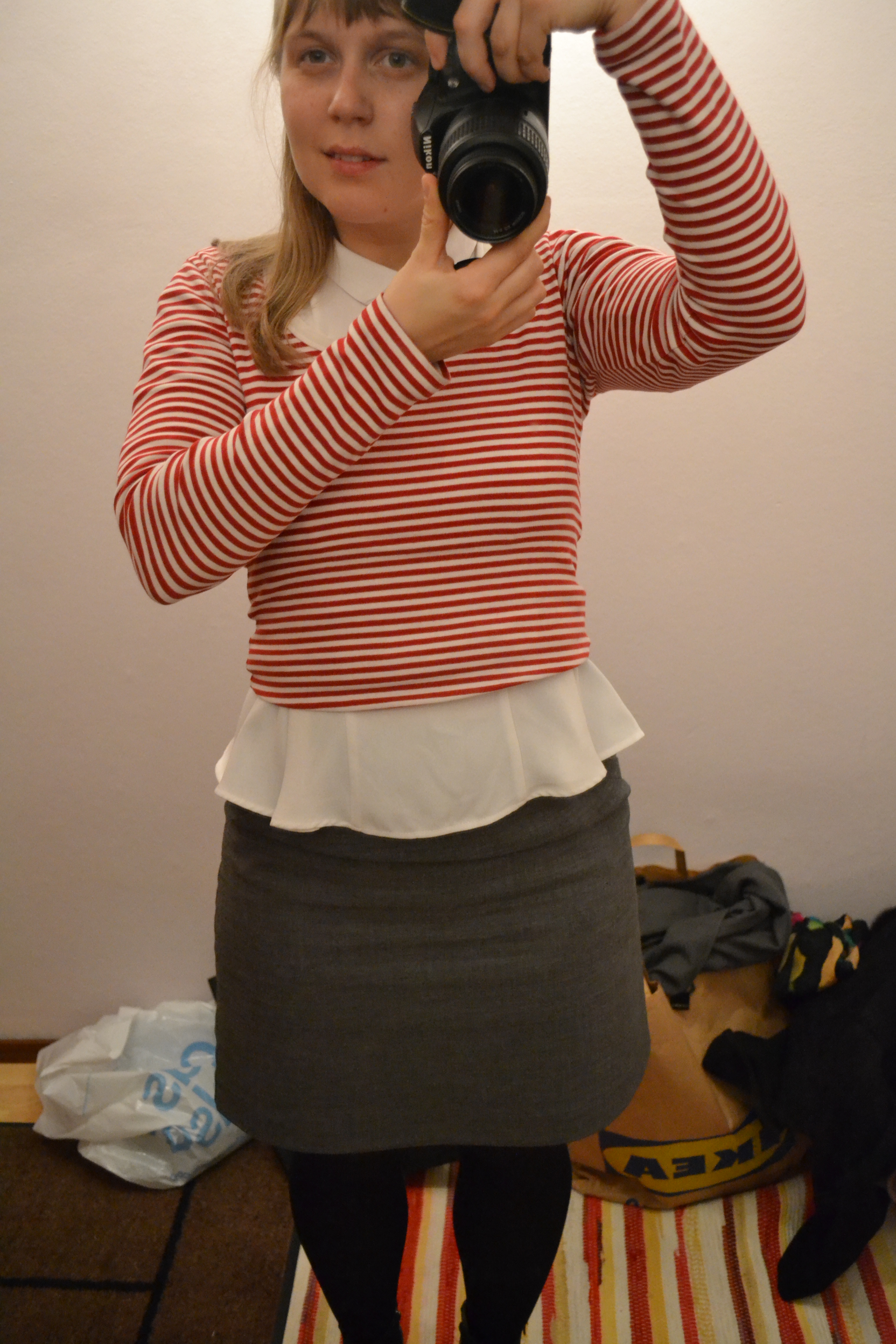 Late outfit post Posted on 10/12/2013 by Ingeborg I never thought I would want a navel grazing sweater, but there you are. Striped sweater from Laura Ashley, blouse and skirt from H&M. Vintage earrings. Share this: Click to share on X (Opens in new window) X Click to share on Facebook (Opens in new window) Facebook Related