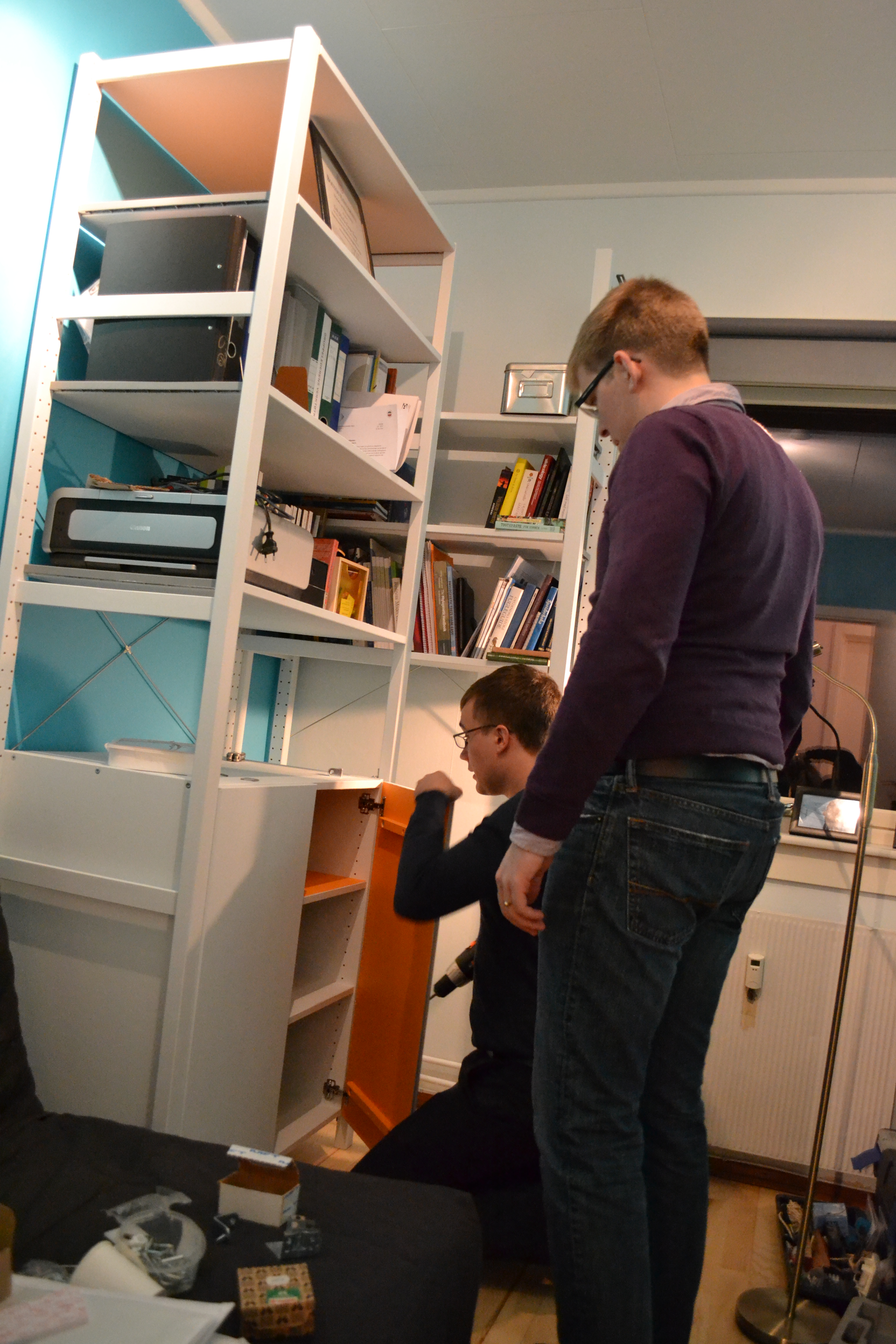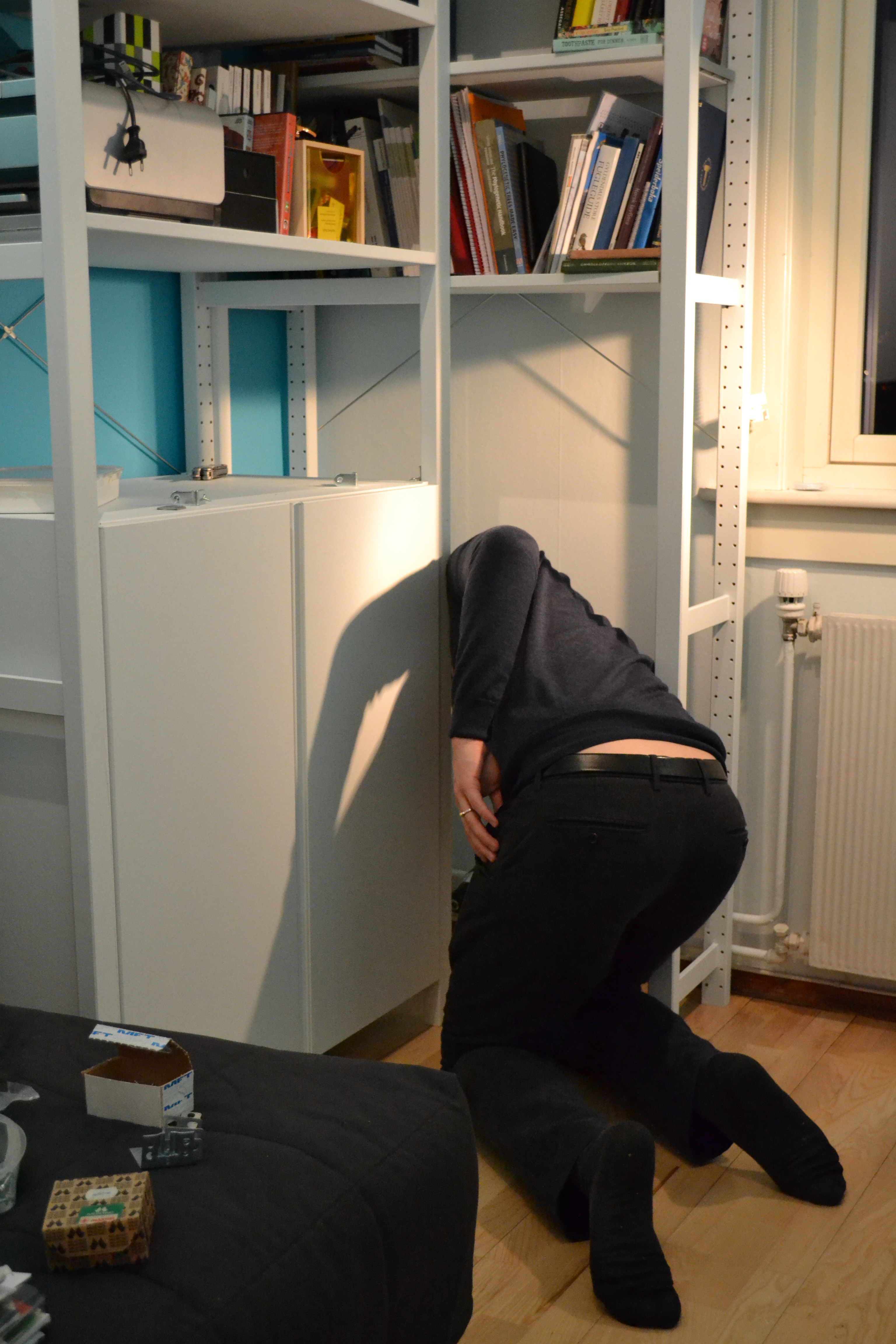 And since Ivar was all fixed on Friday, we managed to empty 8 (eight!) boxes of books on Saturday, so now the apartment looks more homey and the storage room has more space 🙂