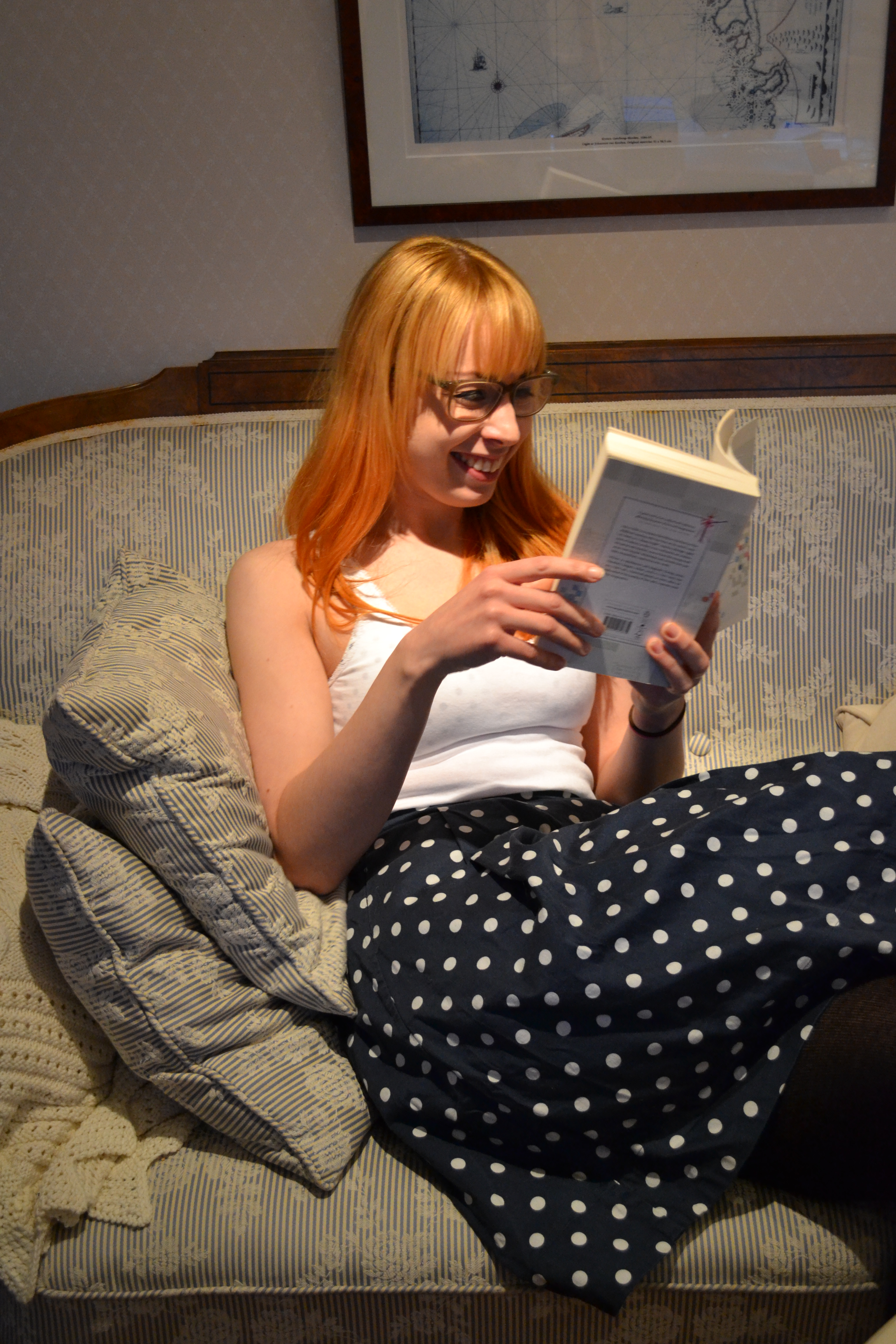 Posing med bøker og annet.