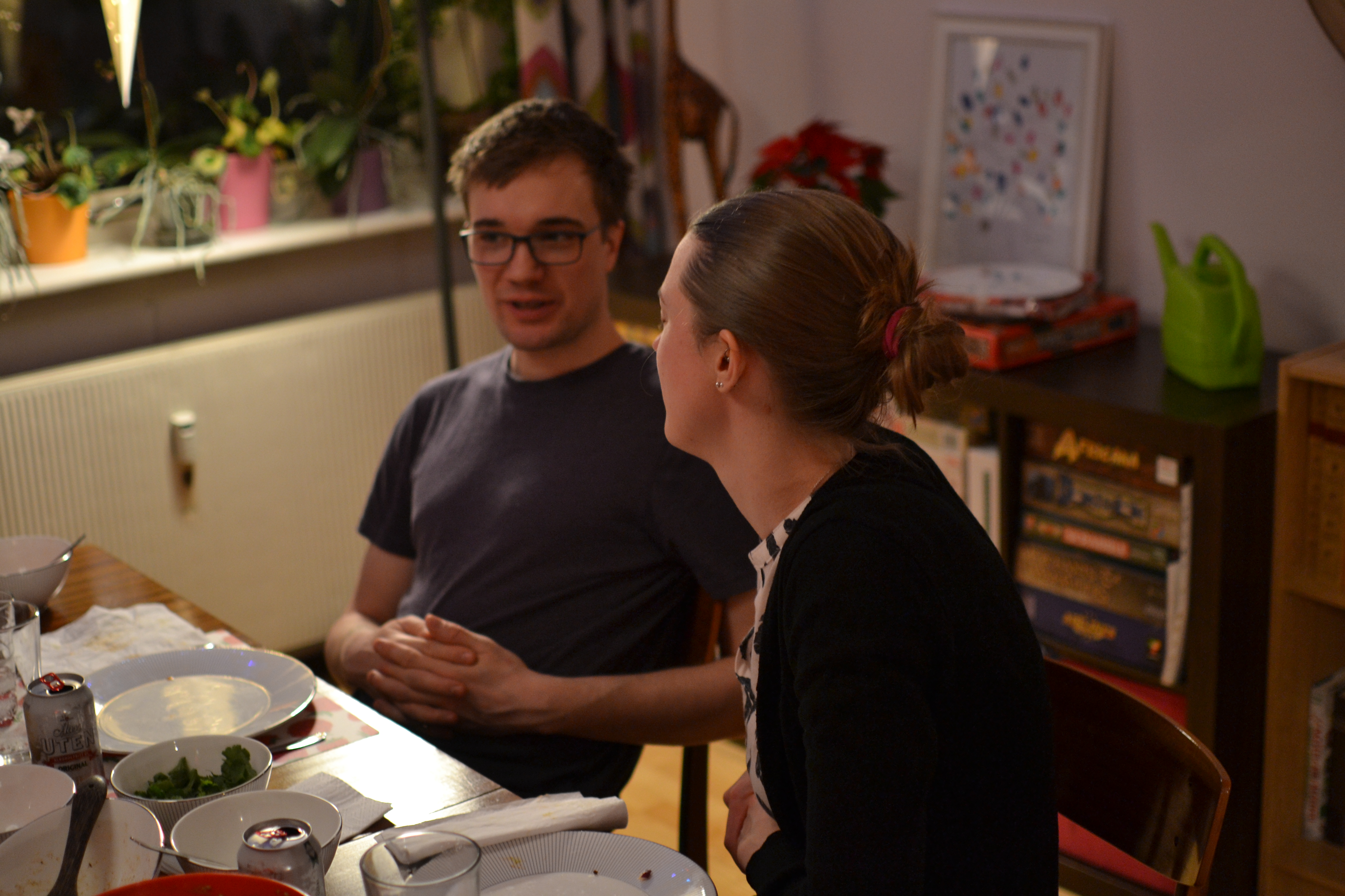 English: this last Saturday night ended up in the best way possible, friends coming over, good food made together, gossip, kanelbolle and boardgames.