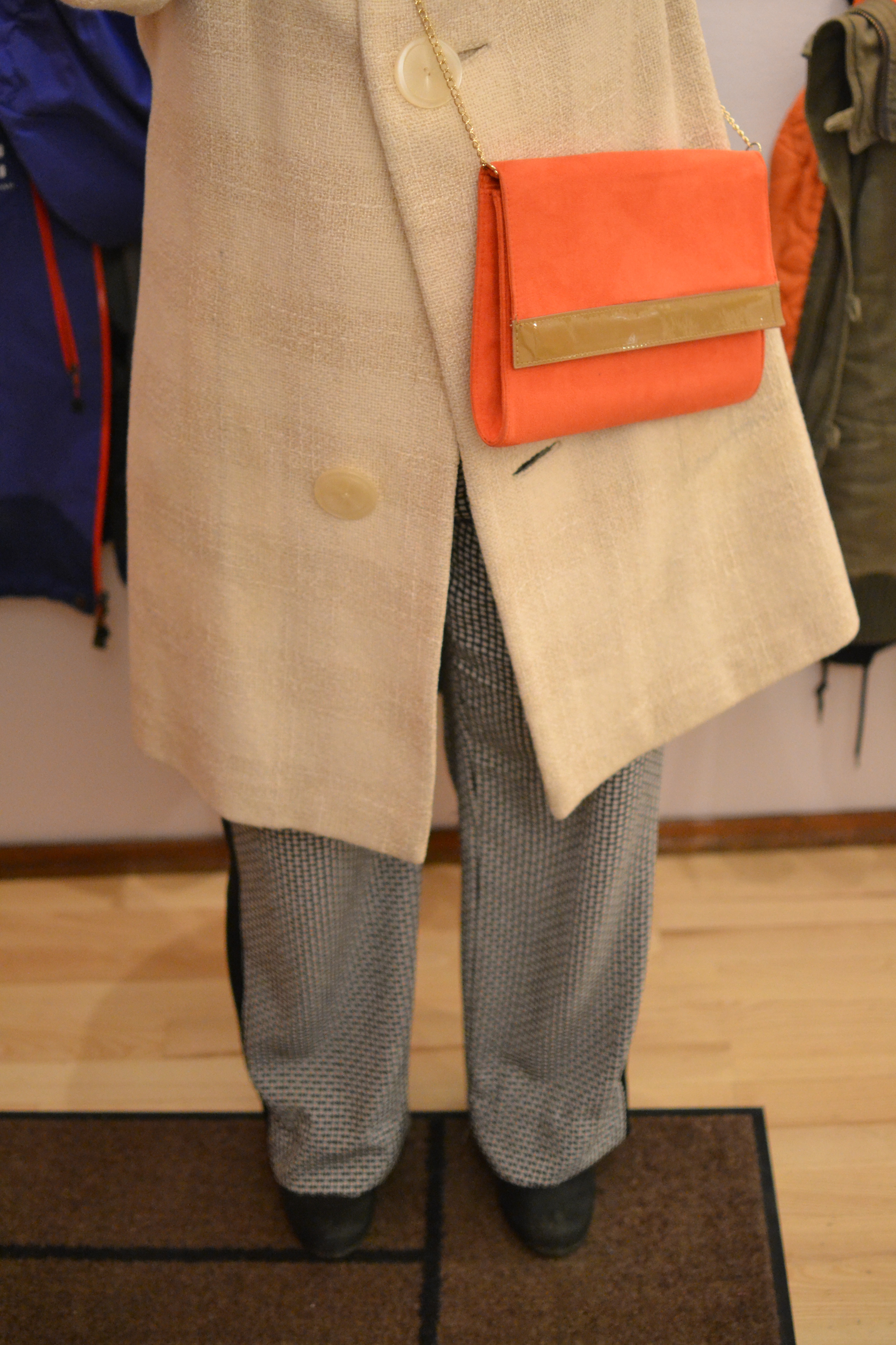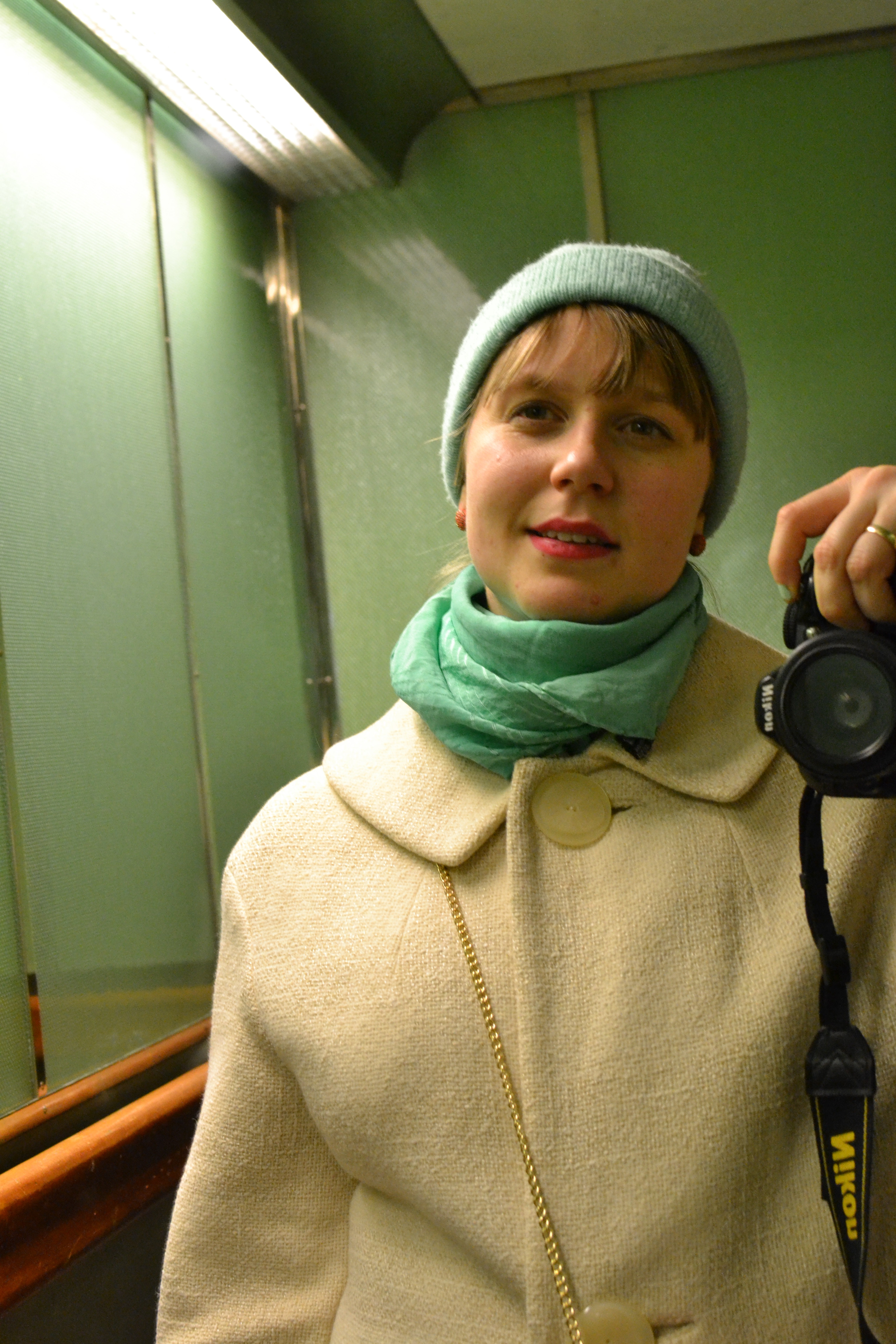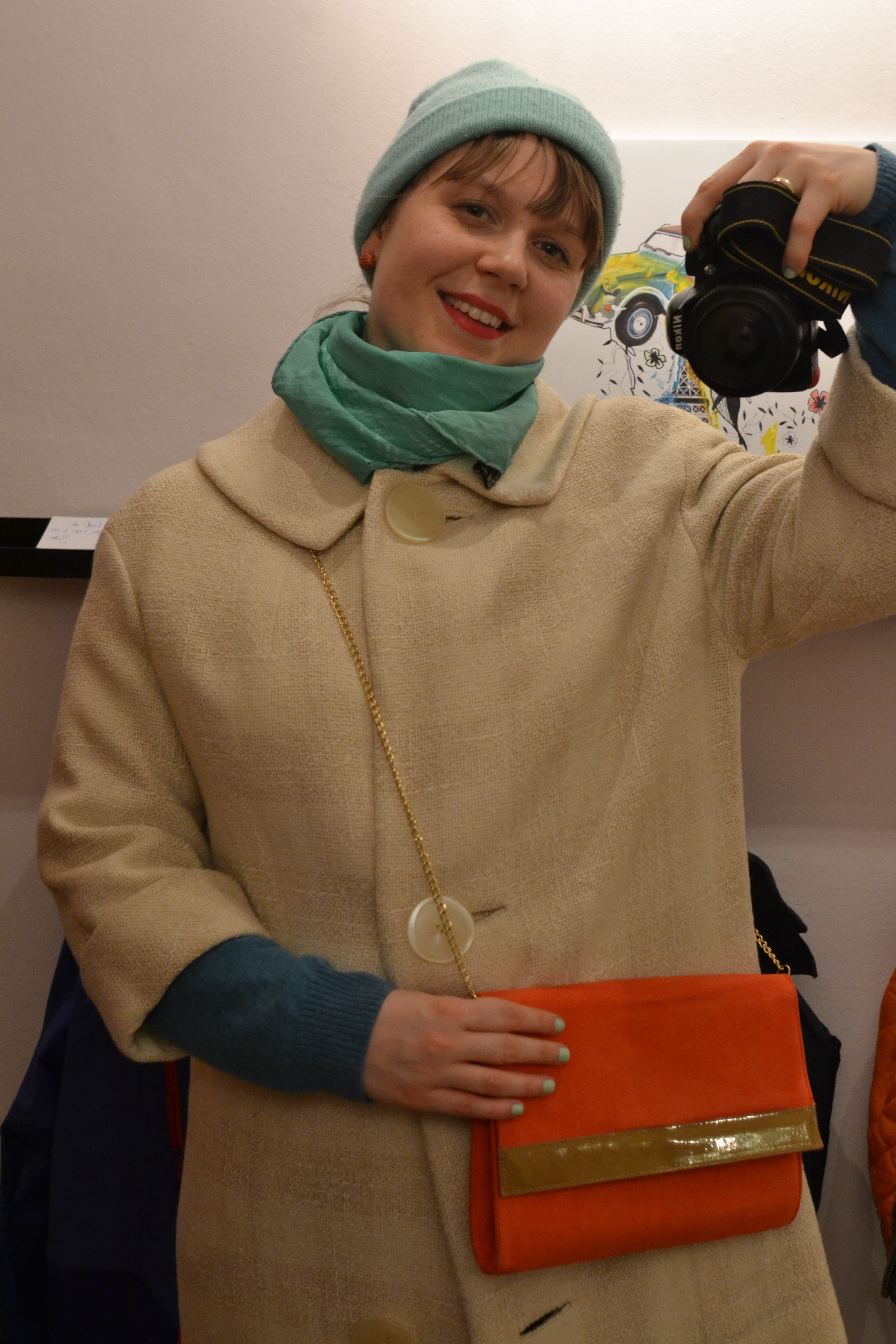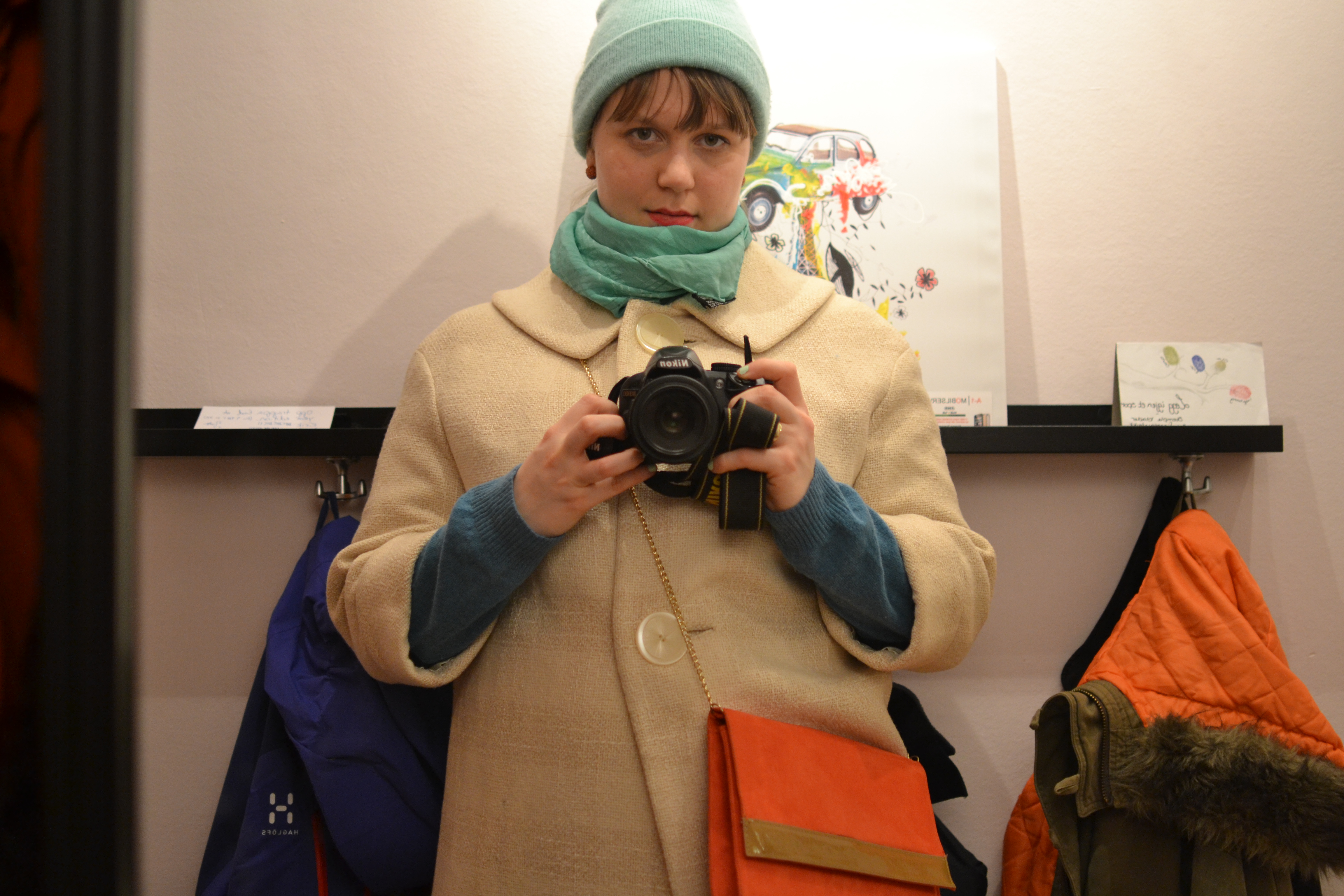 Som dere vet elsker jeg mintgrønn og hvite vinterkåper. Og oransj (øredobbene) og knæsj lebestift