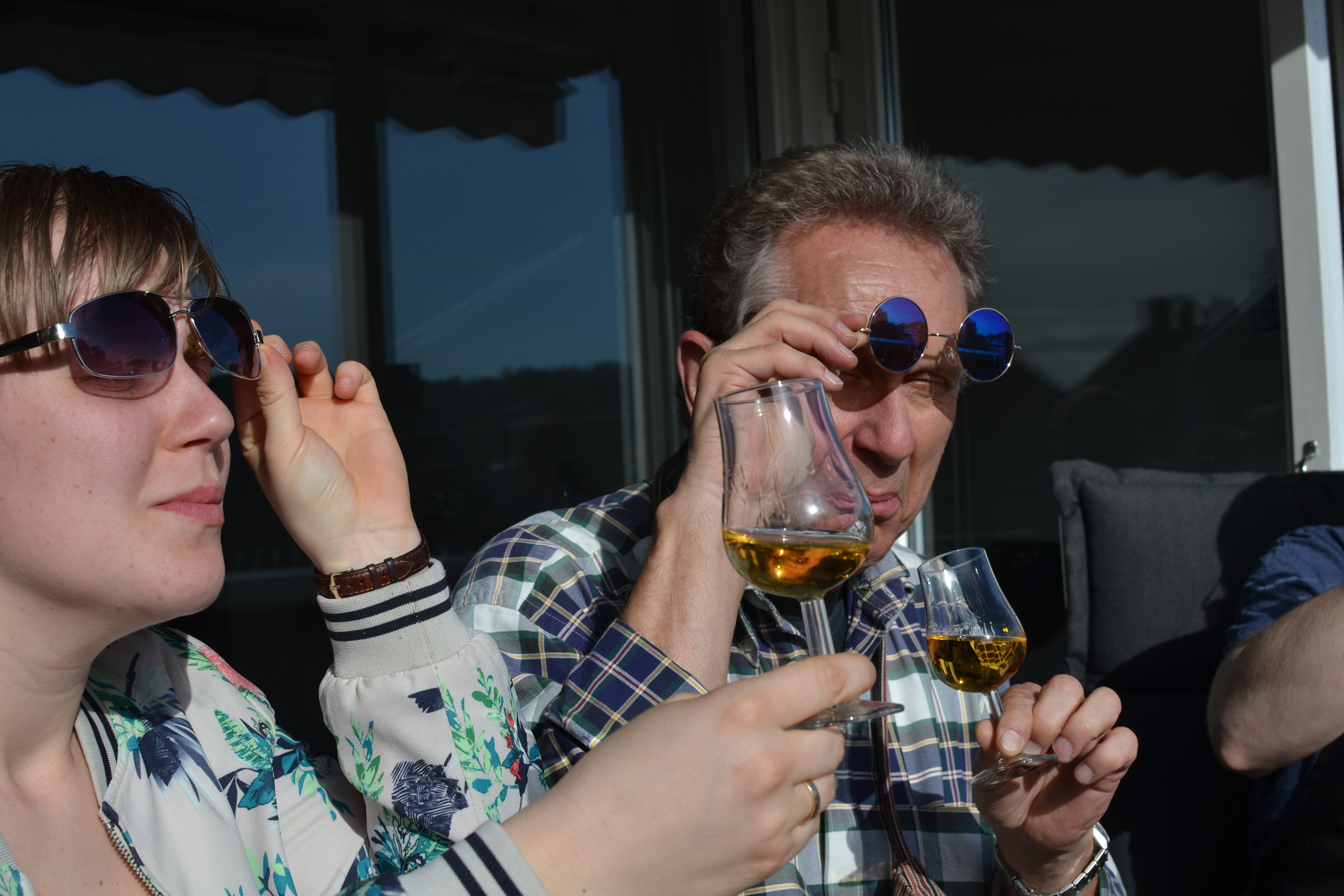 Sånn ser man ut når man sitter ute i sola, men fremdeles vil se på fargen og klarheten til en portvin. Classy.
