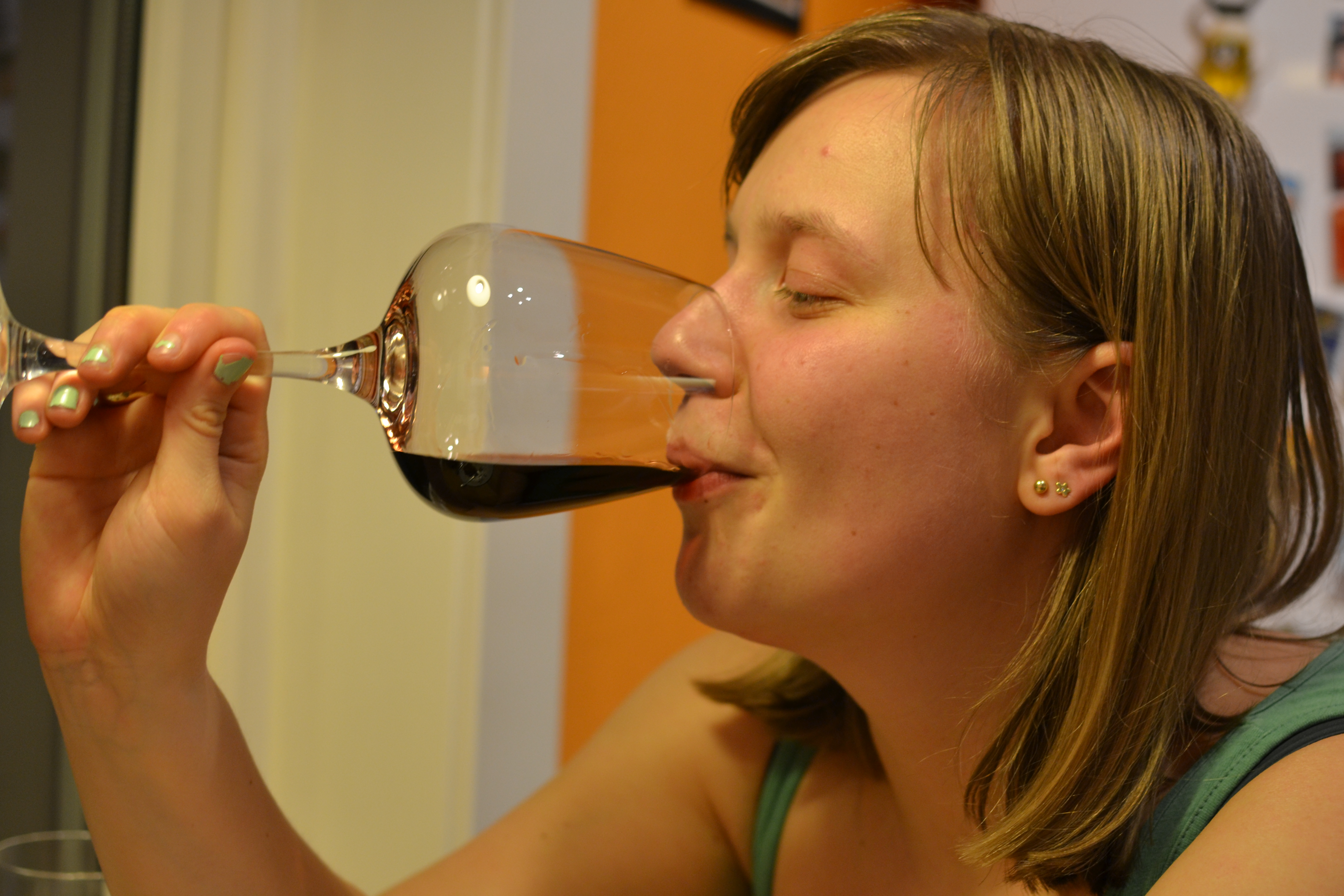 Men tilbake til vinen. Vi åpnet den, sjenket den i glass og smakte. Da smakte den ikke veldig godt. Vi ble litt triste og ringte pappa (som har peiling på vin) for å få veiledning og støtte. Pappa stilte spørsmål om smak, sa at vi måtte dekantere den så det fikk luft og mens vi luftet vinen pratet pappa oss gjennom hvordan vi skulle smake på vinen. Etter litt luft smakte den ikke så rart lenger, egentlig veldig godt.