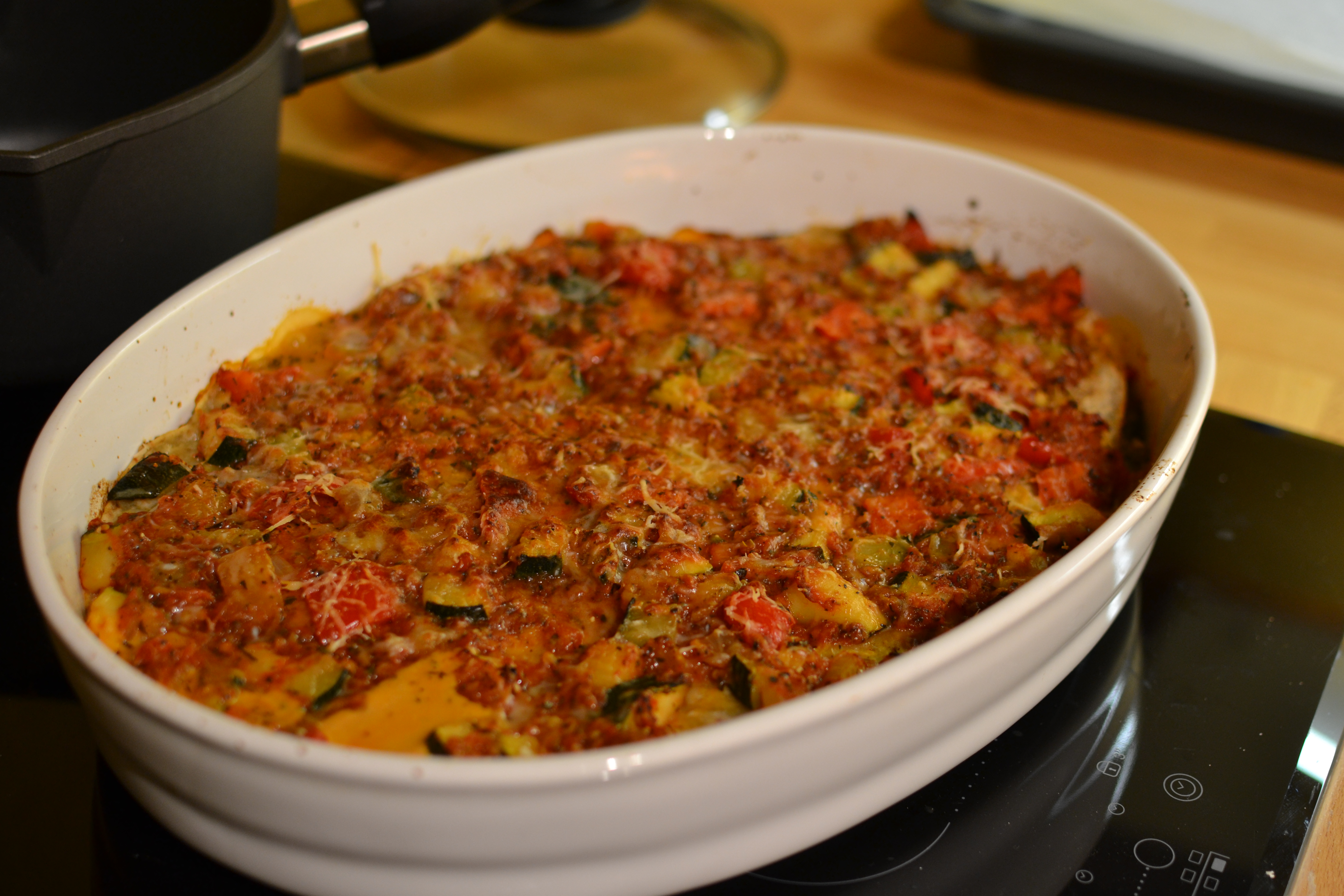 Vi lagde vegetarlasagne etter oppskrift og var litt skeptiske mens vi hold på, men ble desto mer gledelig overrasket da vi smakte på den og det var supergod.