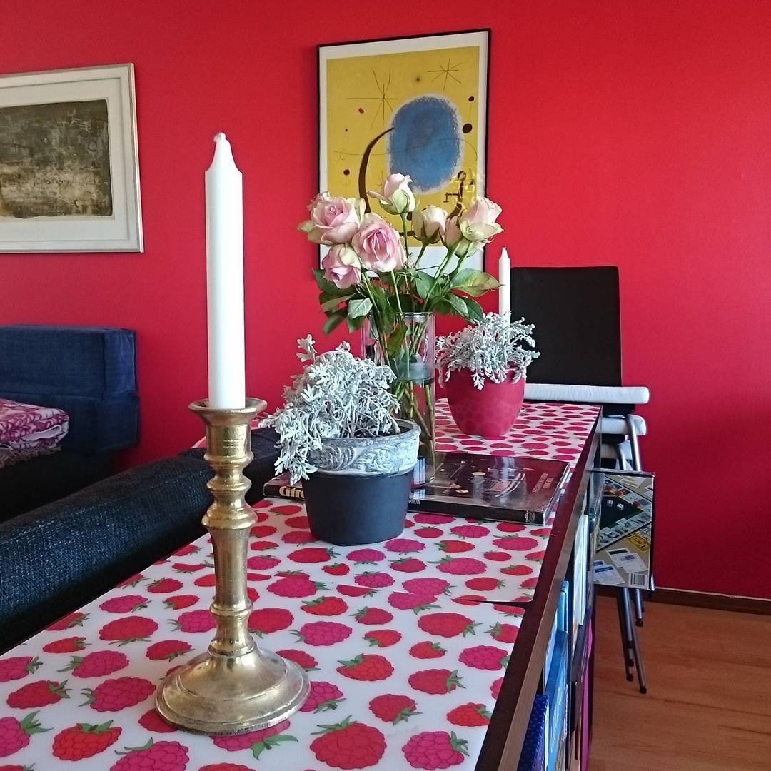 Ellers hadde lilla fløyel også vært nydelig. Vi har jo både rødt og rosa i stua og det fungerer ypperlig sammen.