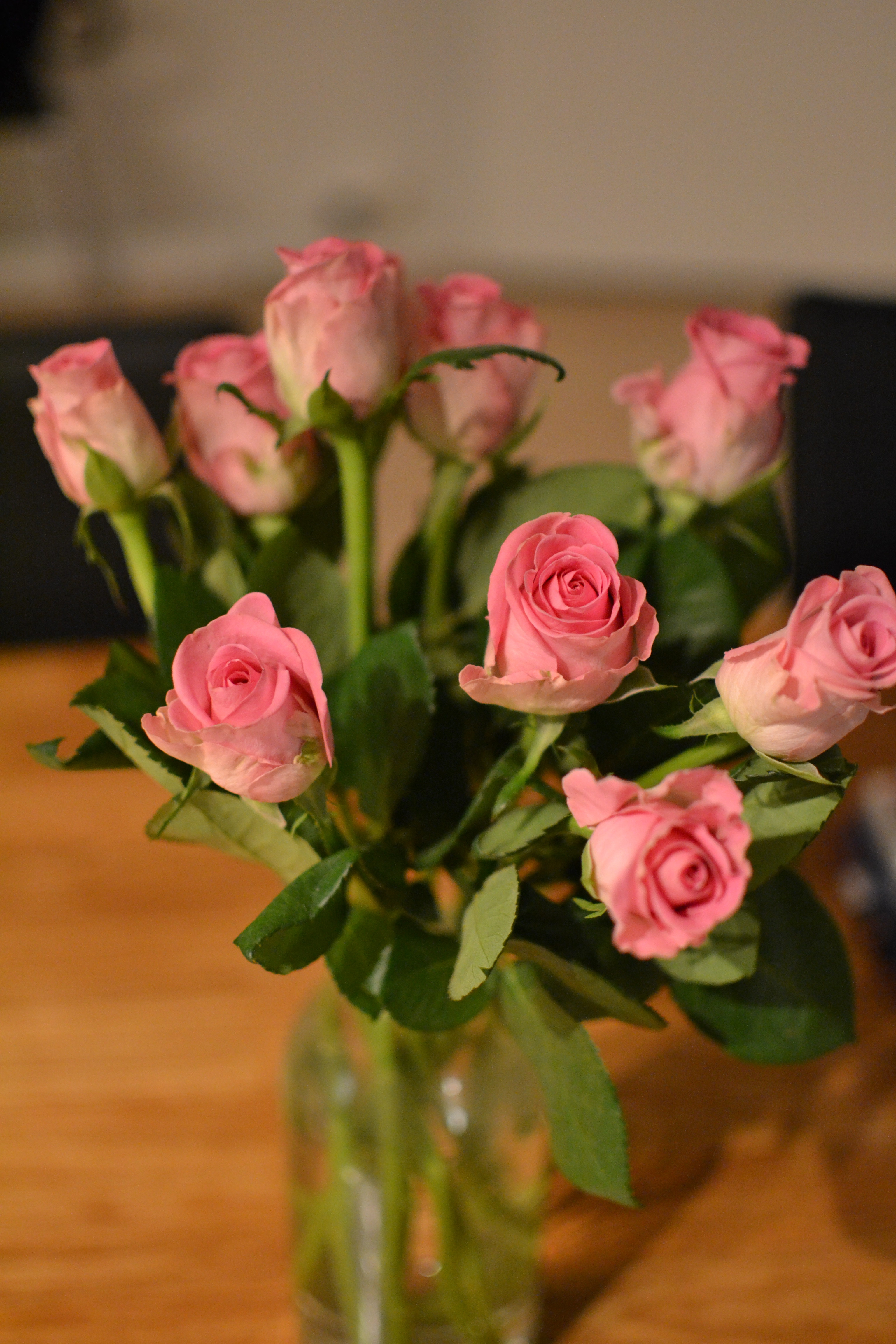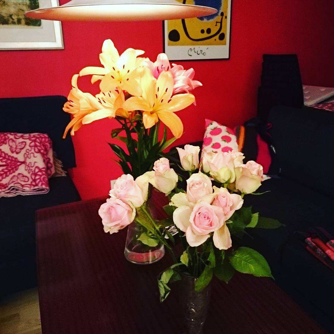 Blomstene vi fikk av Eriks mormor og farmor på vernissasjen, de har stått i to uker på stua nå