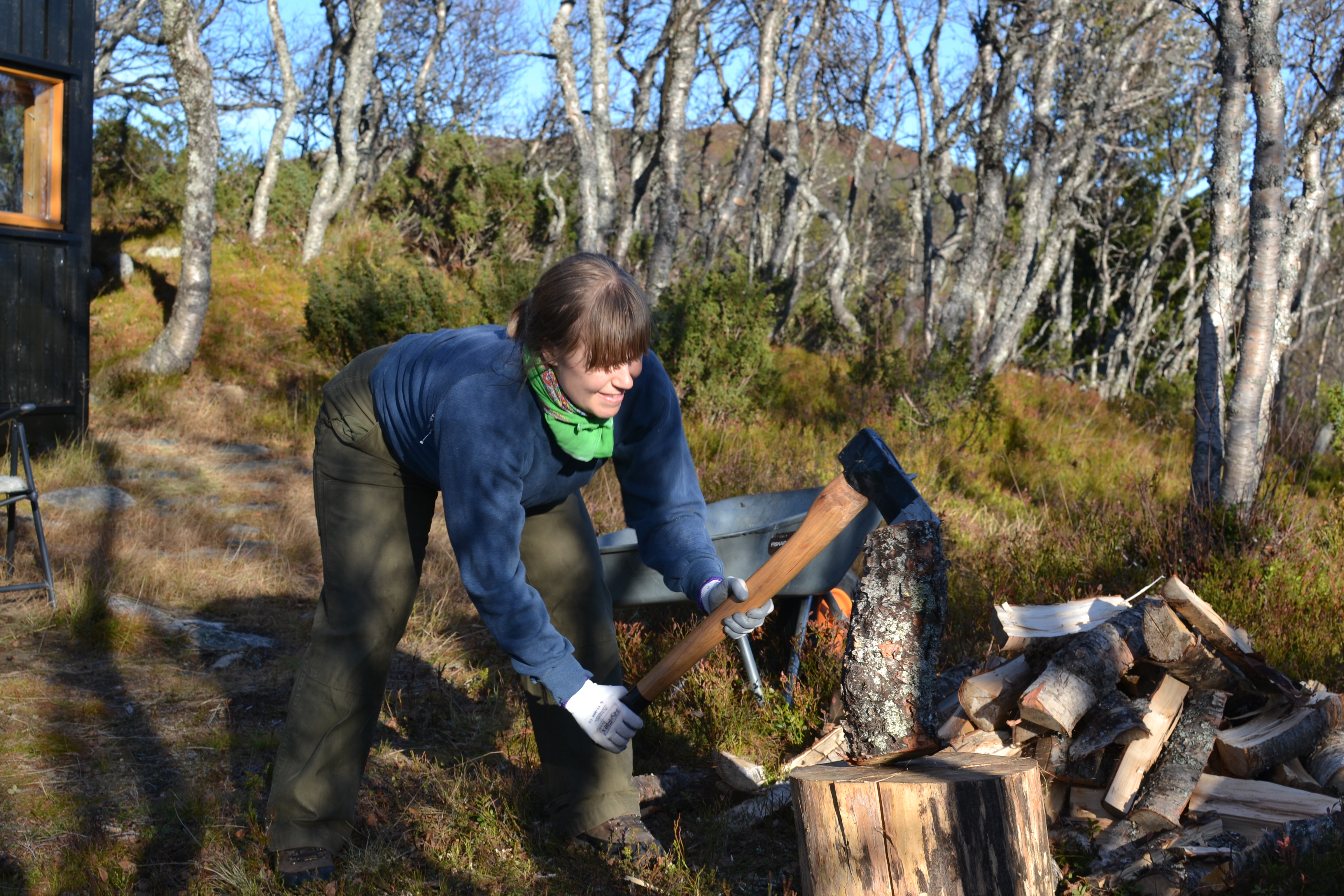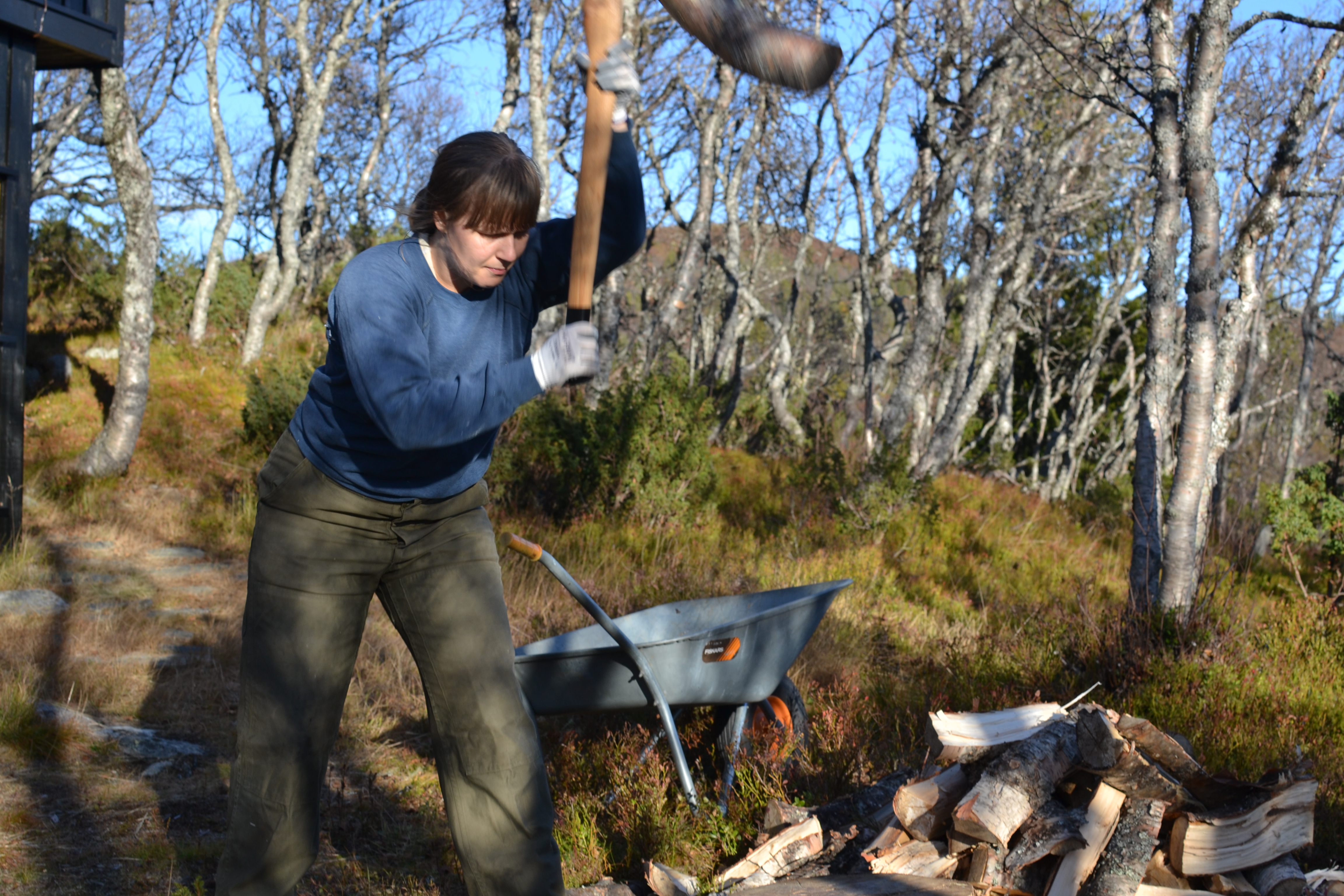 Hva er vel bedre enn tørr ved, ny kløyveøks og stektende sol i hytteveggen?