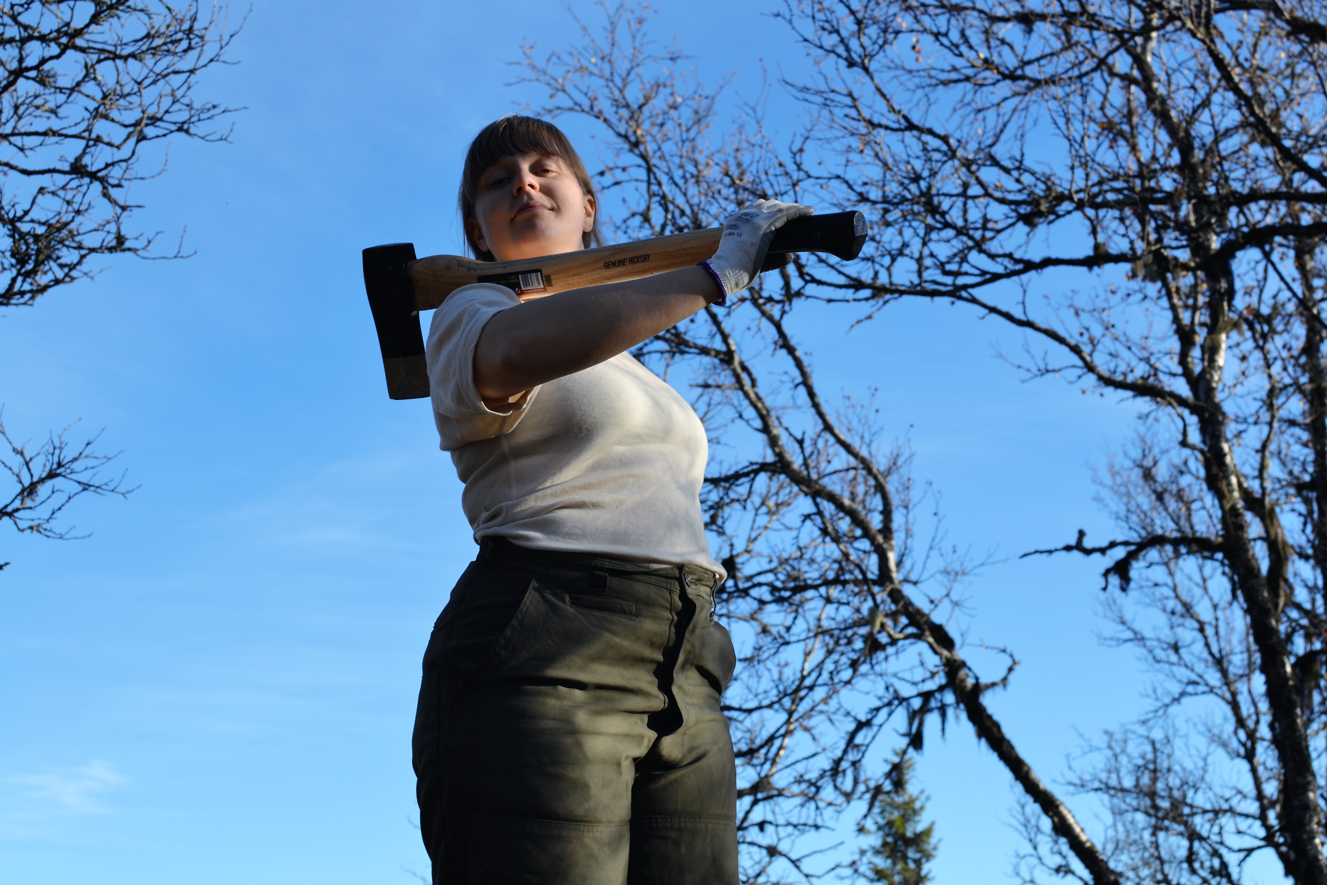 Staselig quinde med øks