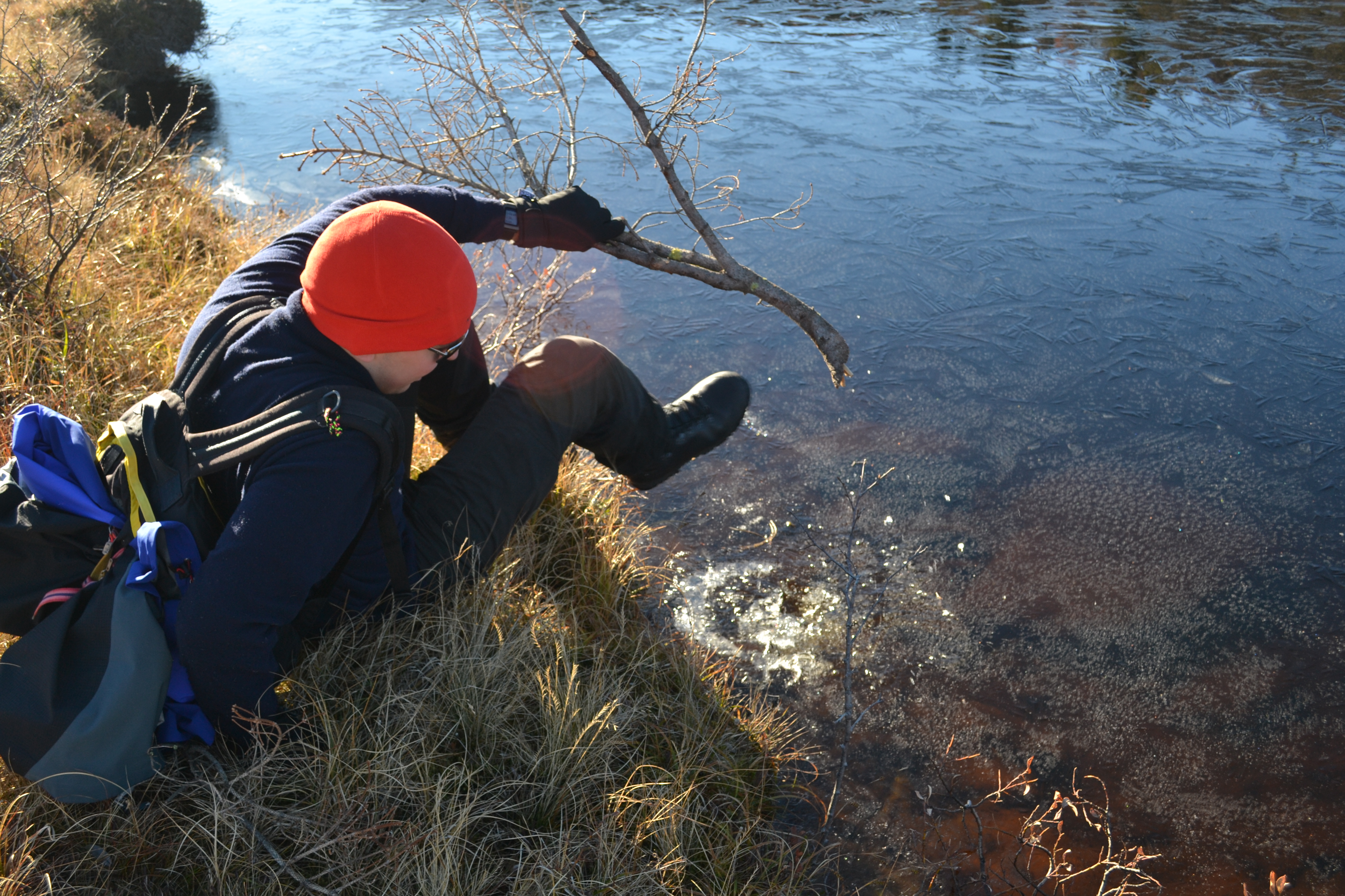 Vannet rett nedenfor hytta måtte inspiseres. Isen hadde lagt seg, men det er noen uker til man kan gå på skøyter…
