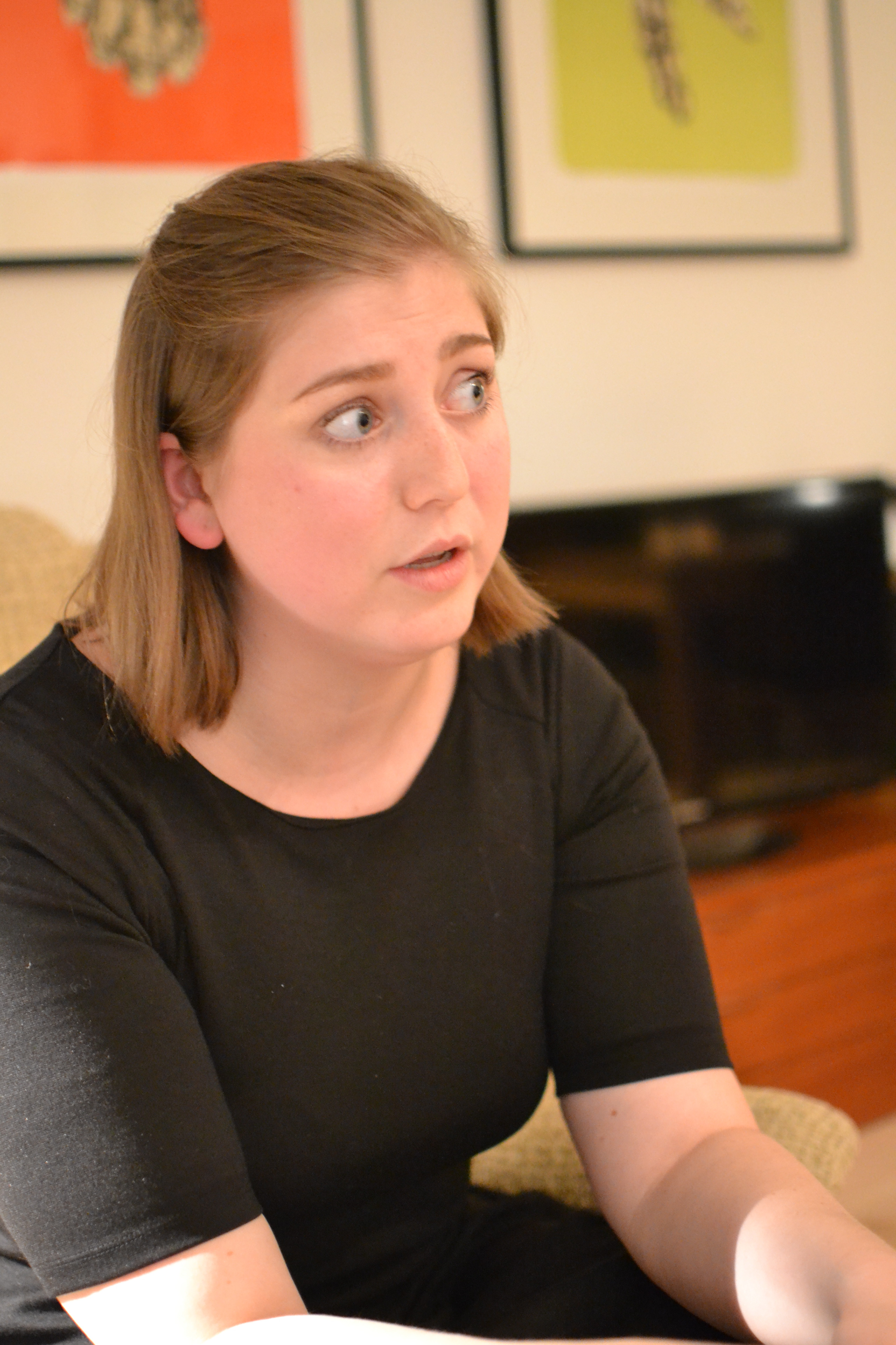 Hun dama her altså, så utrolig lett å tro hun er en del av publikum, heller enn kunstverkene.