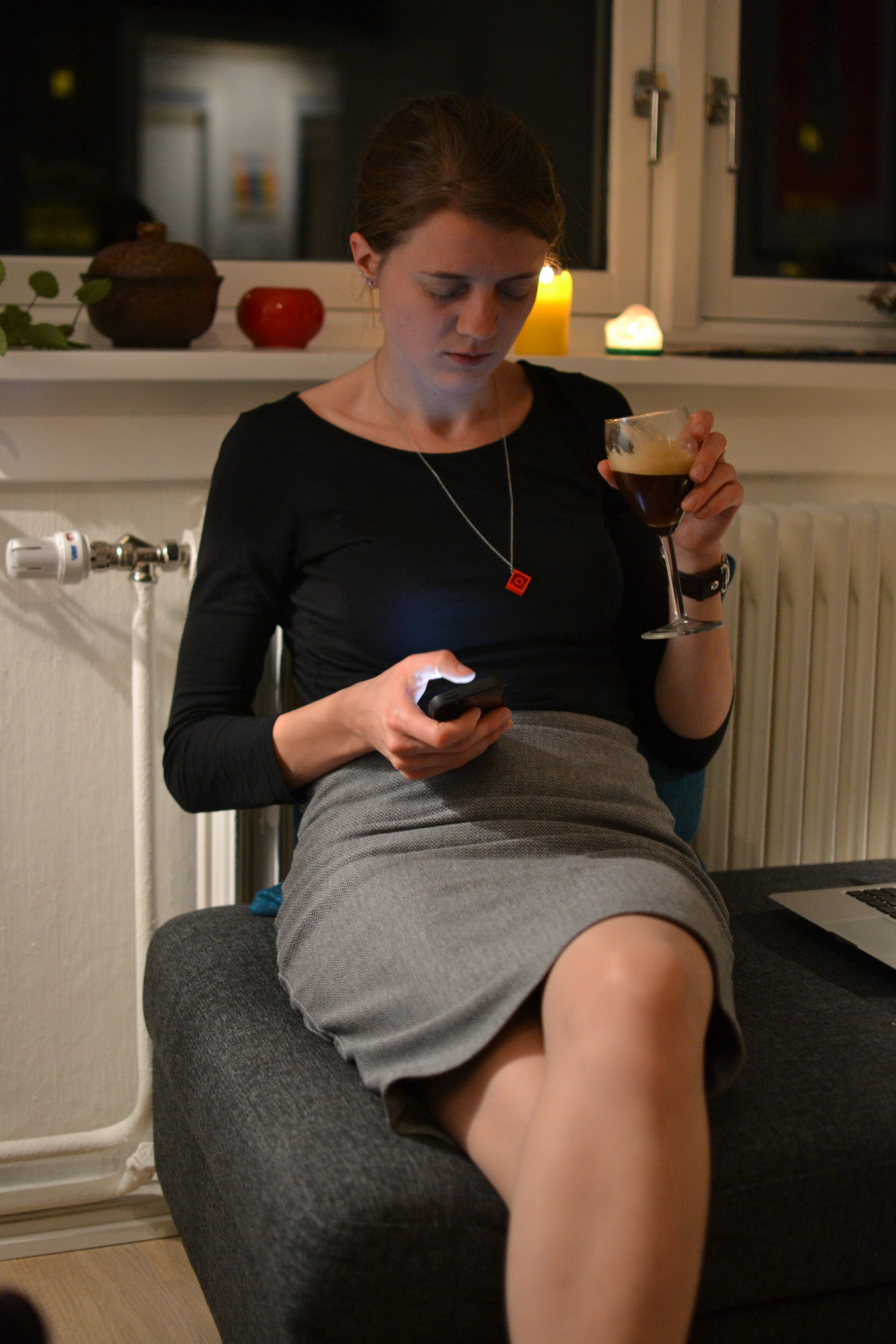 På torsdag knipset han meg også mens jeg jobbet, så her får dere se hvordan det ser ut når jeg jobber hjemme. Bare meg og PCen på stua med et stort glass vann og uendelig med utsikt.