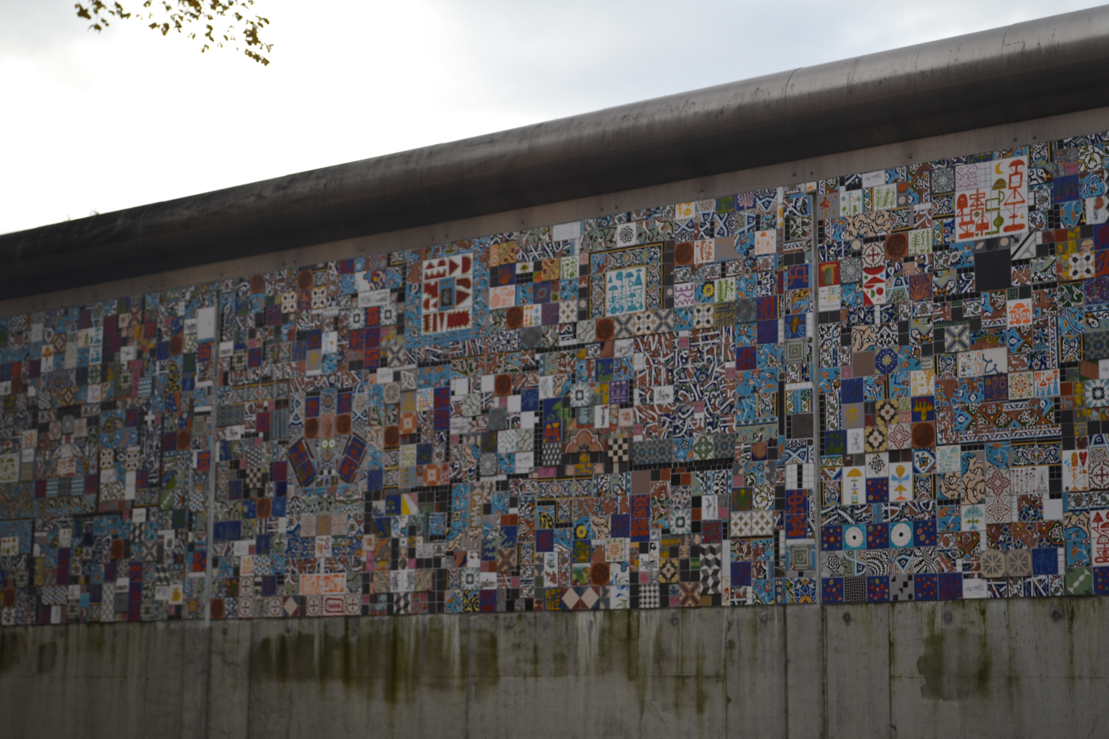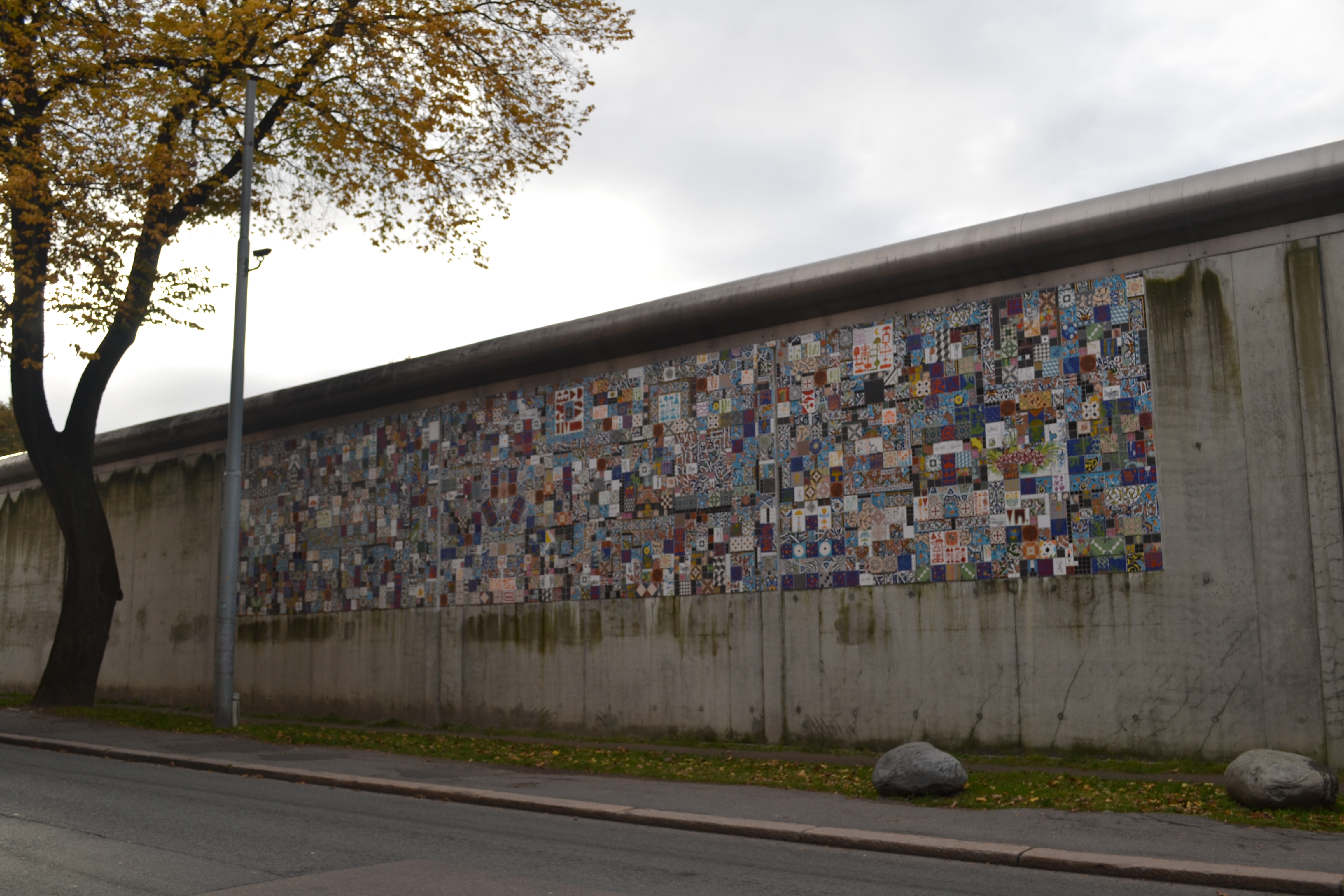 Om man ikke vil male kan man ha fargerike fliser, for eksempel. Disse er på muren rundt Oslo fengsel, rett overfor moskeen i Åkerbergveien.