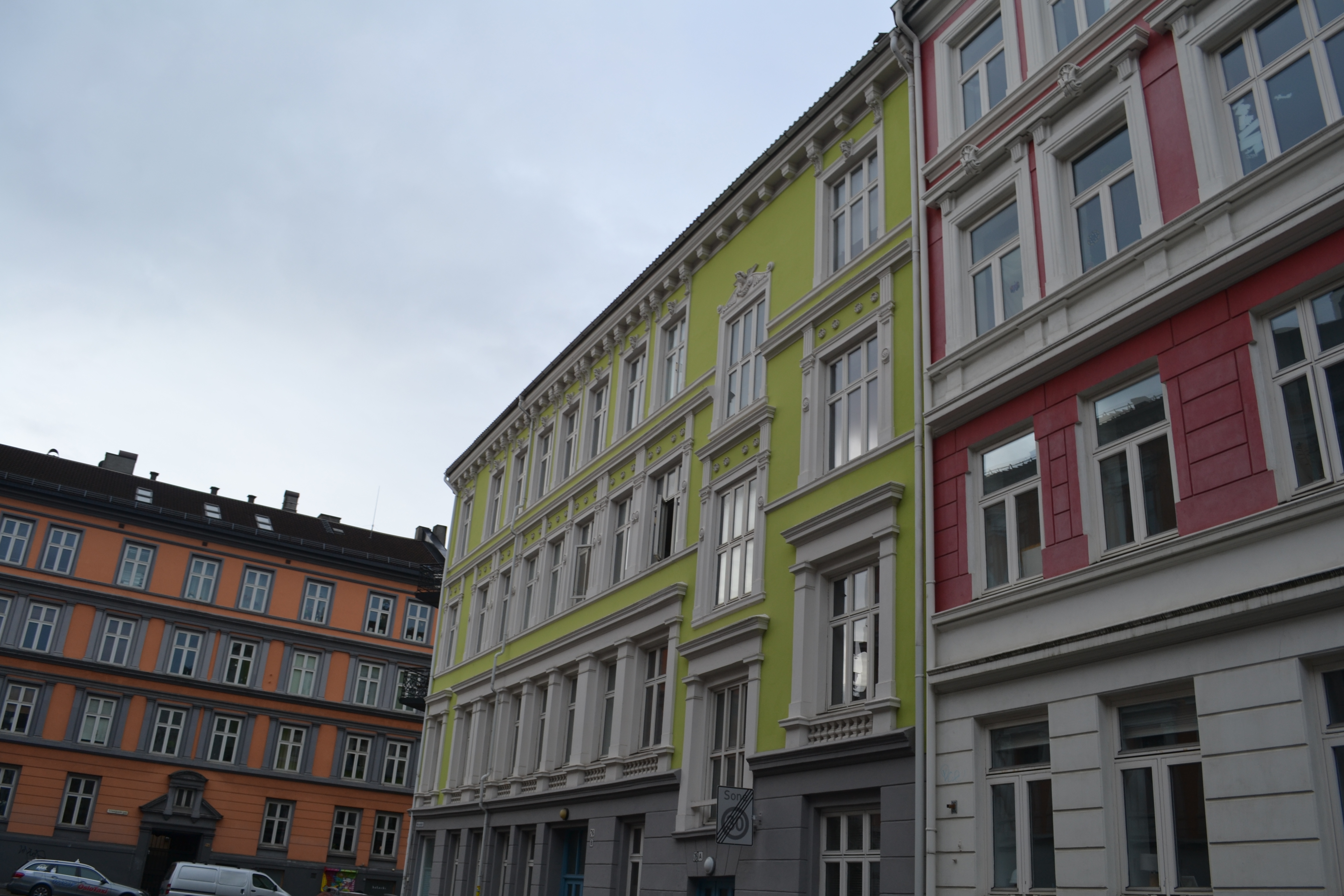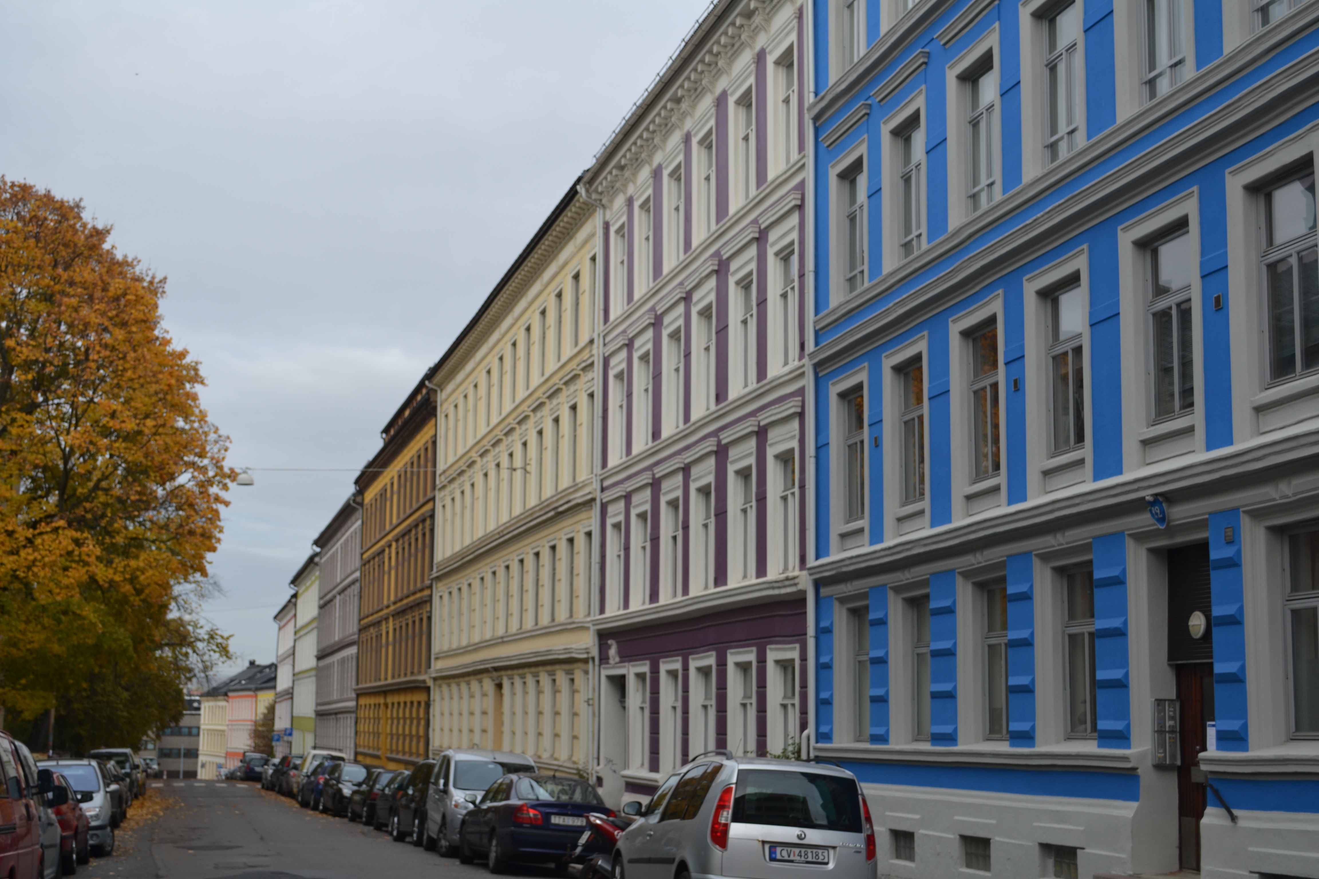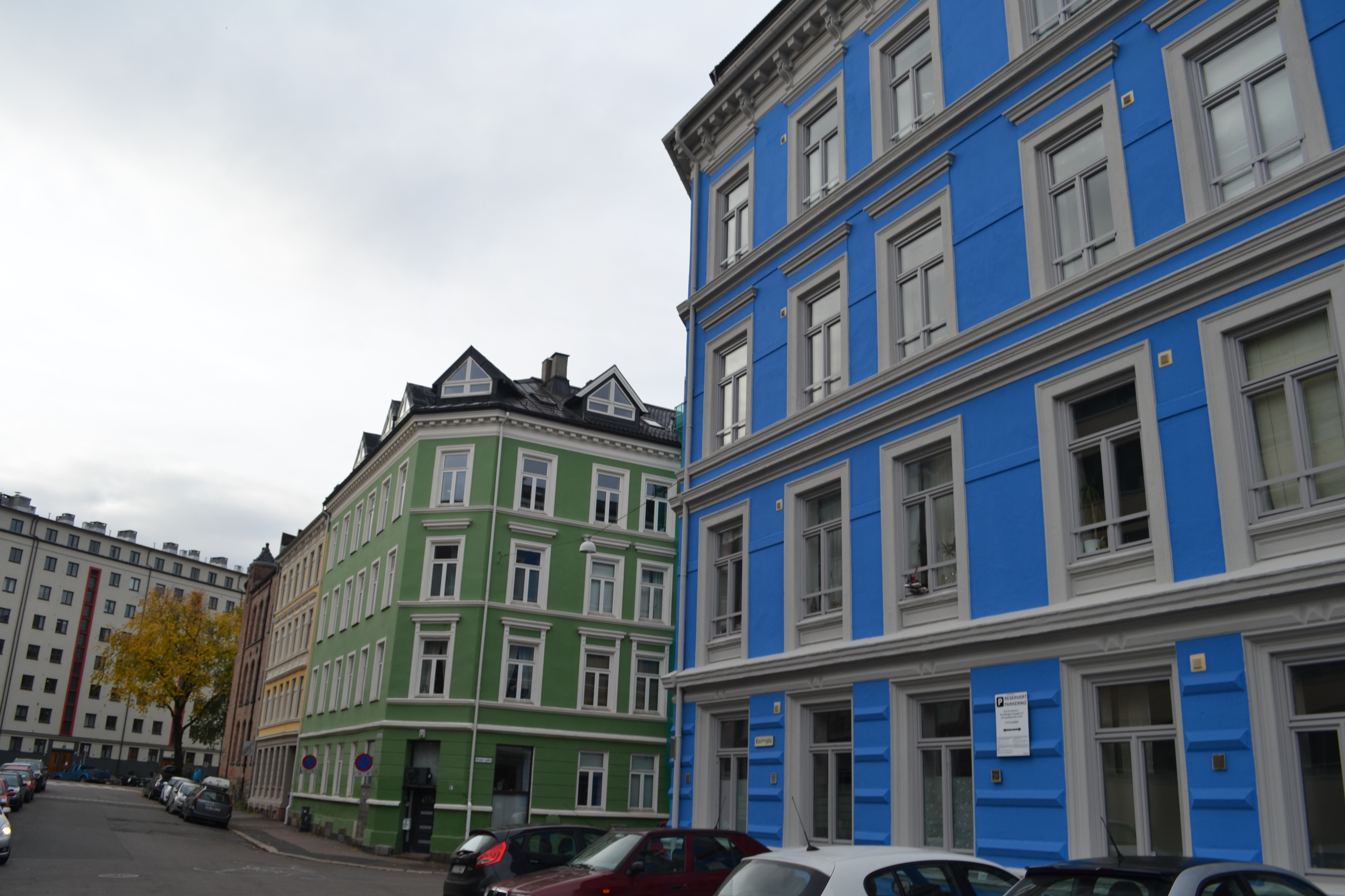 English: I walked through Tøyen, Grønland and Gamlebyen last weekend and found all these fantastic, colourful houses. I think more houses should have bright colours.