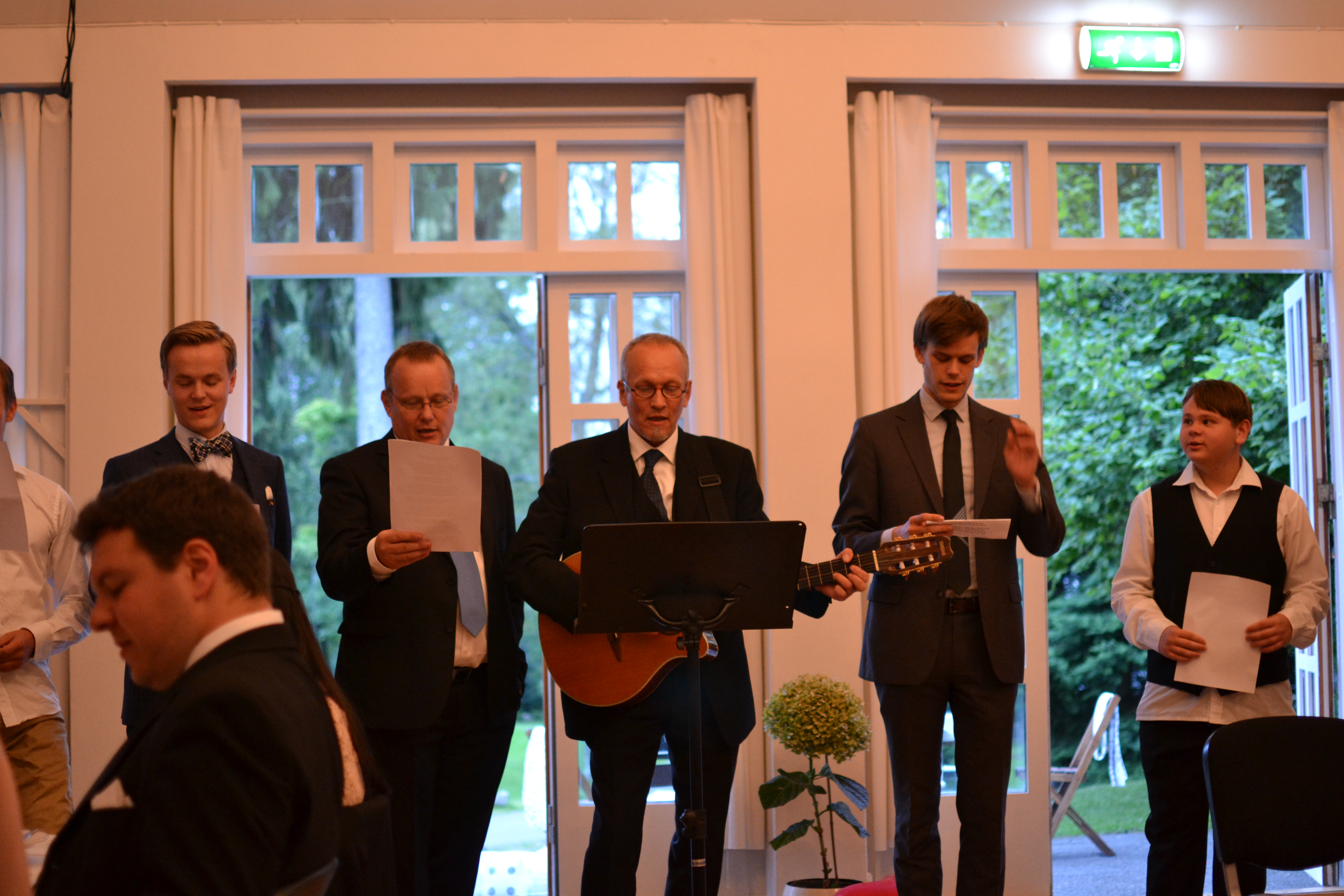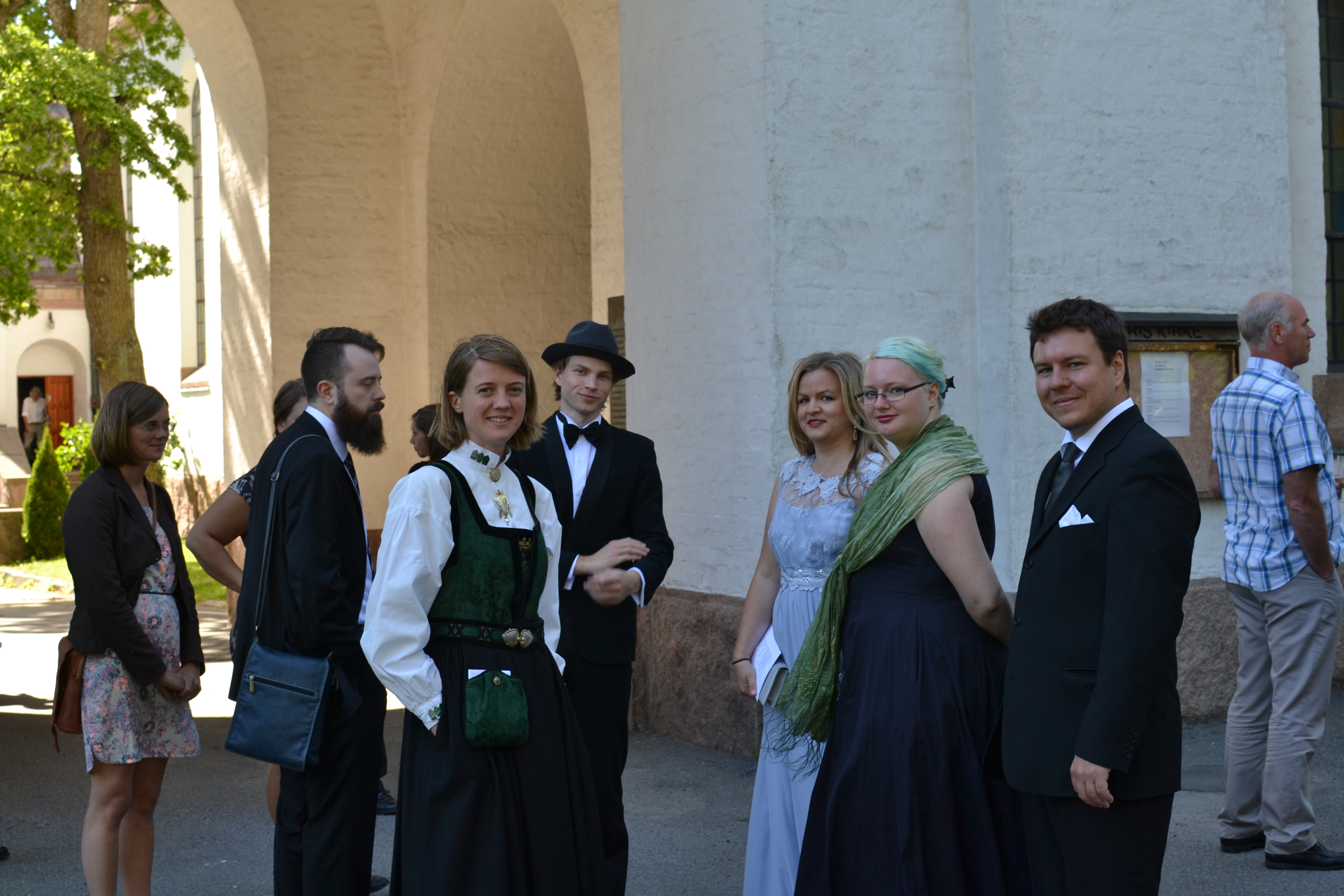 Gruppebilde! Det gikk i blått, sort og grått, som dere ser. Jeg er lettkledd som vanlig.