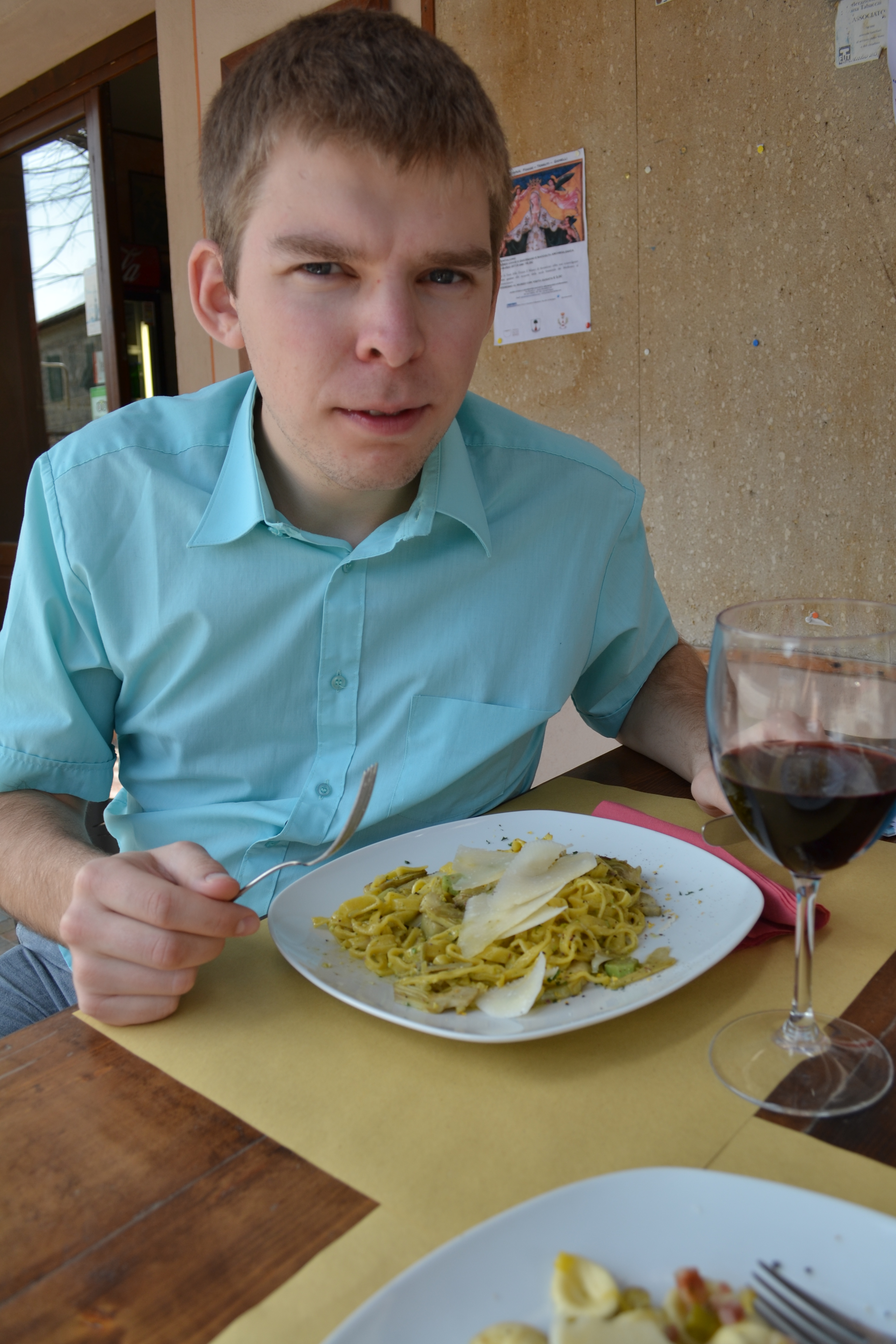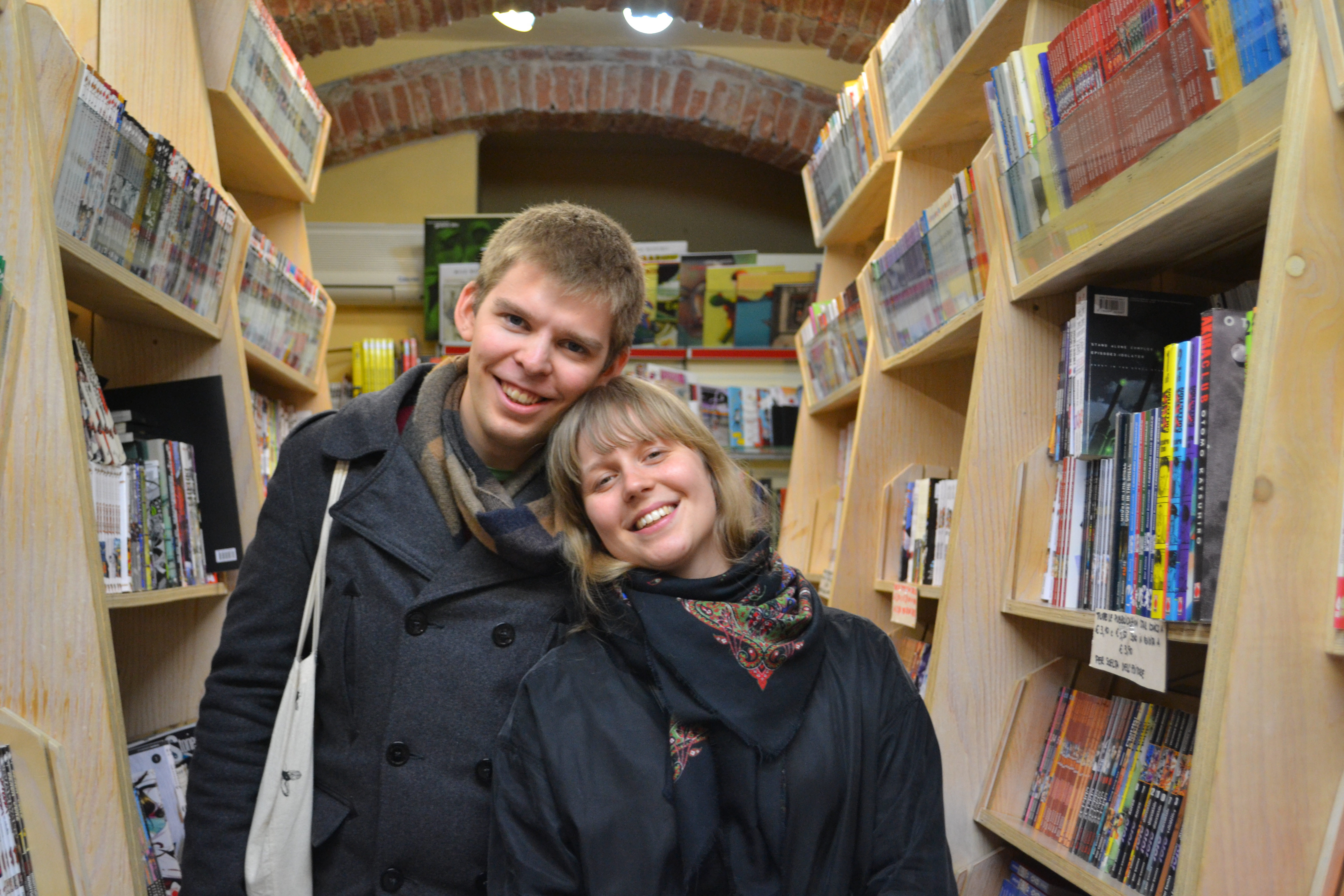 We just had to go to Pisa. Erik put his foot down and said that we had to try to get into the tower (because I didn’t want to queue for ages for all the museums in Florence) because we had to see the inside of just one thing. And lucky for us both, there was no queue. No queue! Because we arrived just 1,5 hours before they closed, so everyone had left. And it had been raining that day. But we were very happy. Before we went to see the tower we had lunch, met my cool friend Silvia who owns a comic book shop in the old town of Pisa.
