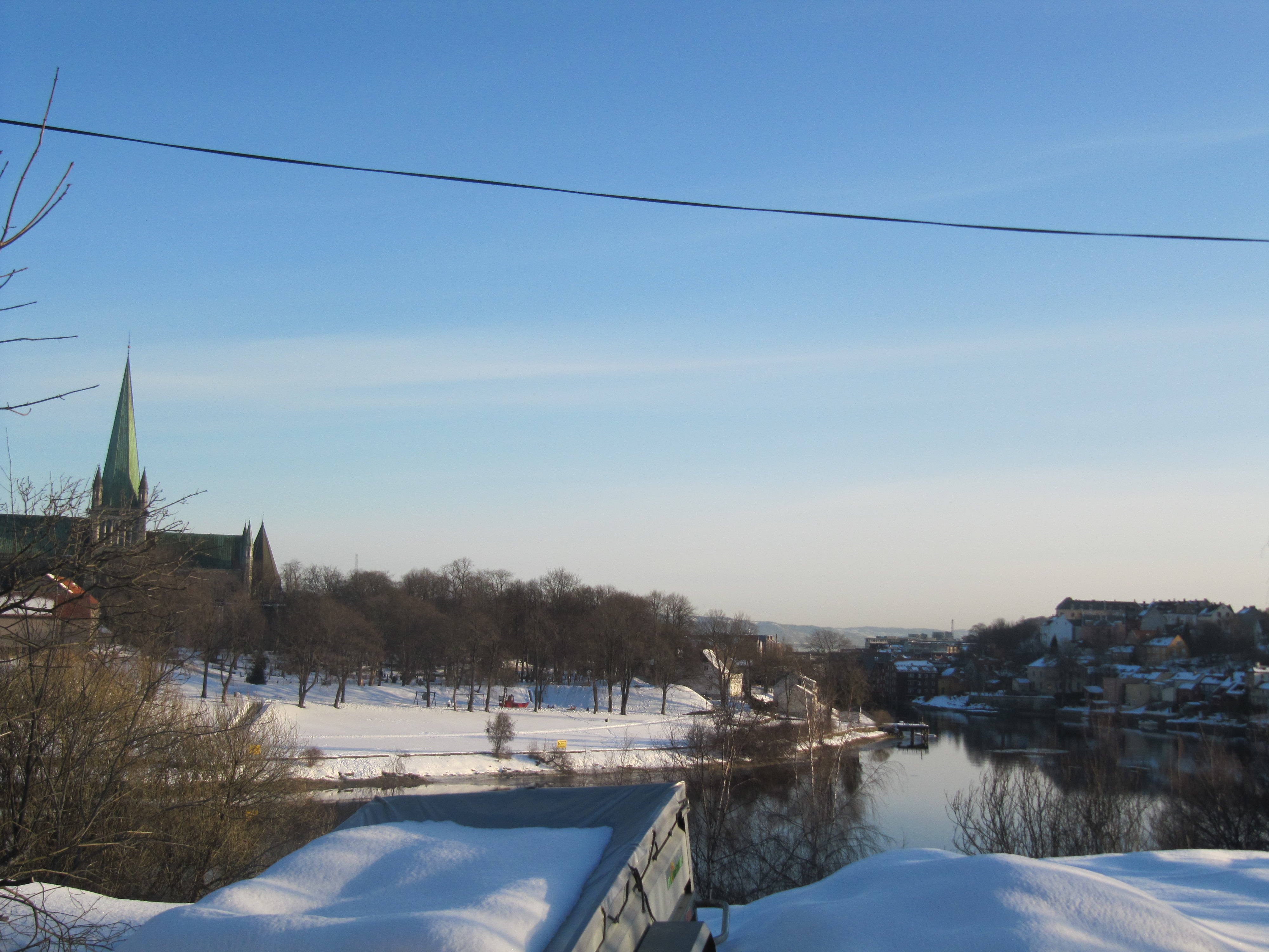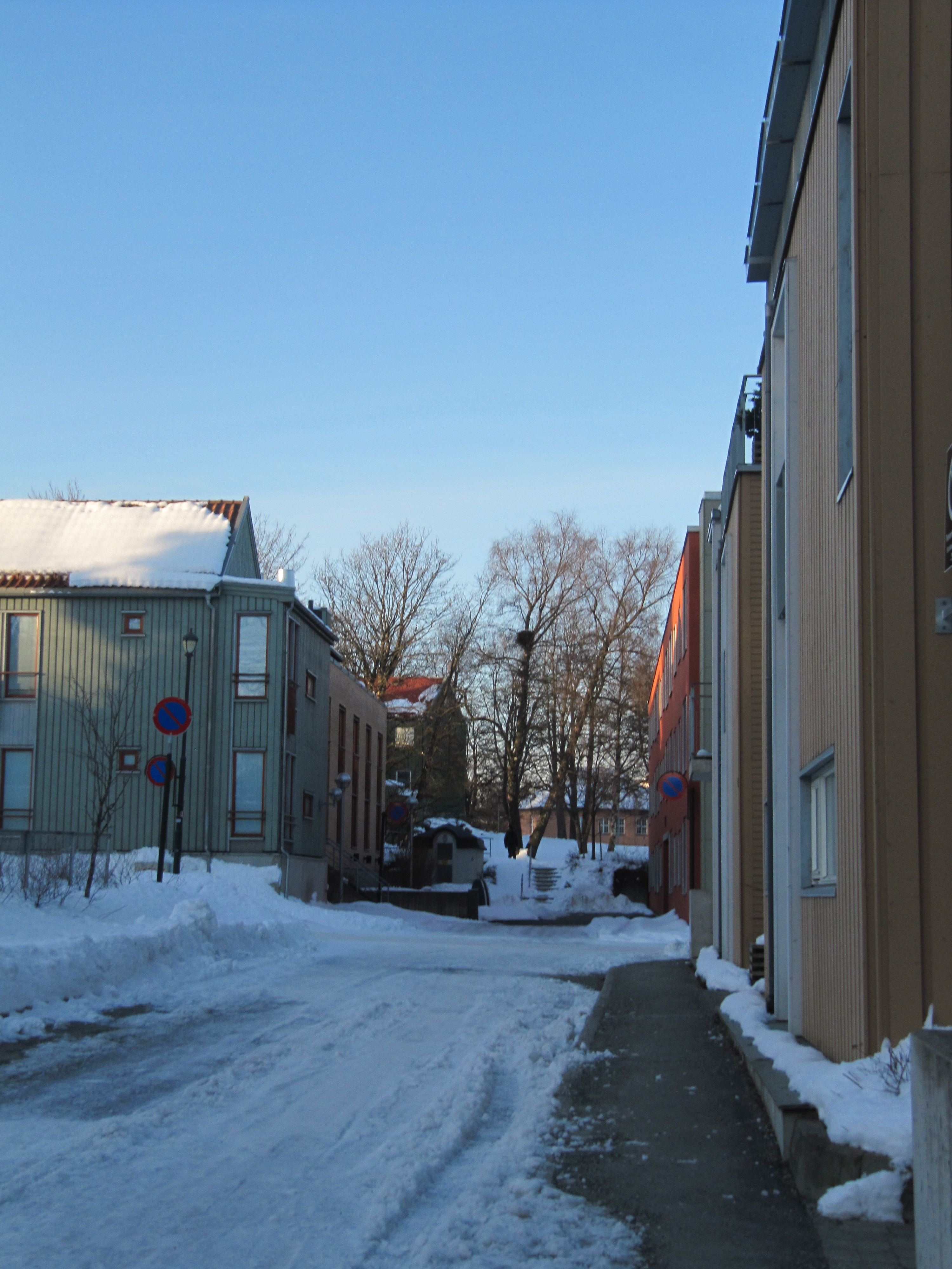 Igår var jeg flink jente og dro på kontoret for å ekstrahere DNA (dvs ta ut DNA) av de siste prøvene jeg trengte for å starte med fragmentanalyse av microsatelittene jeg skal bruke (dvs finne ut hvilke biter av DNA som er mest variable). Jeg er en slik som liker å gå absolutt raskeste vei fra A til B og har en snarvei bak Prinsen kino, midt mellom bygg på HiST og Døvemuseet og ut mot Adolf Øyen vgs og bort til museet. Men idag da jeg rundet kinoen idag møtte et lite ishav meg: