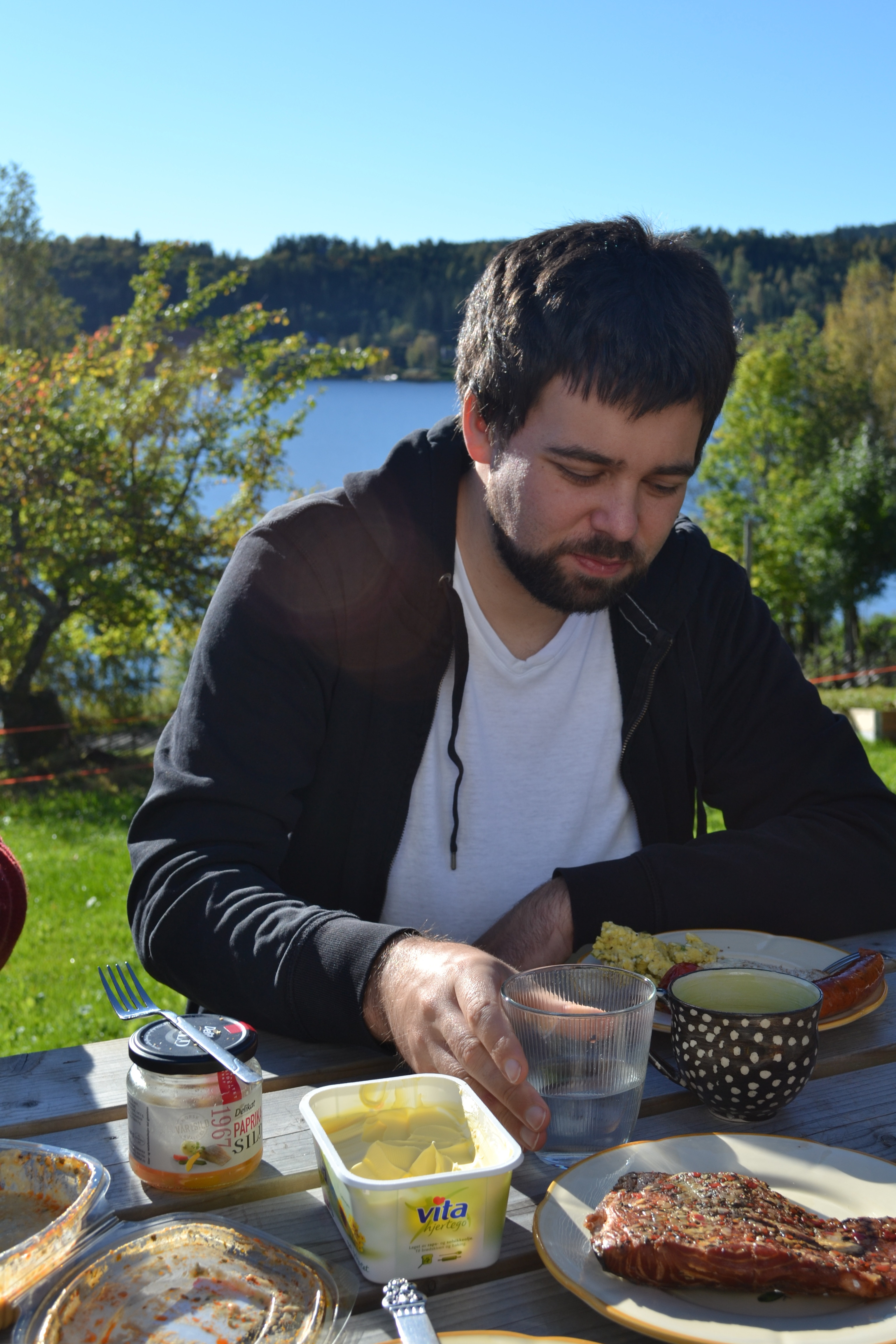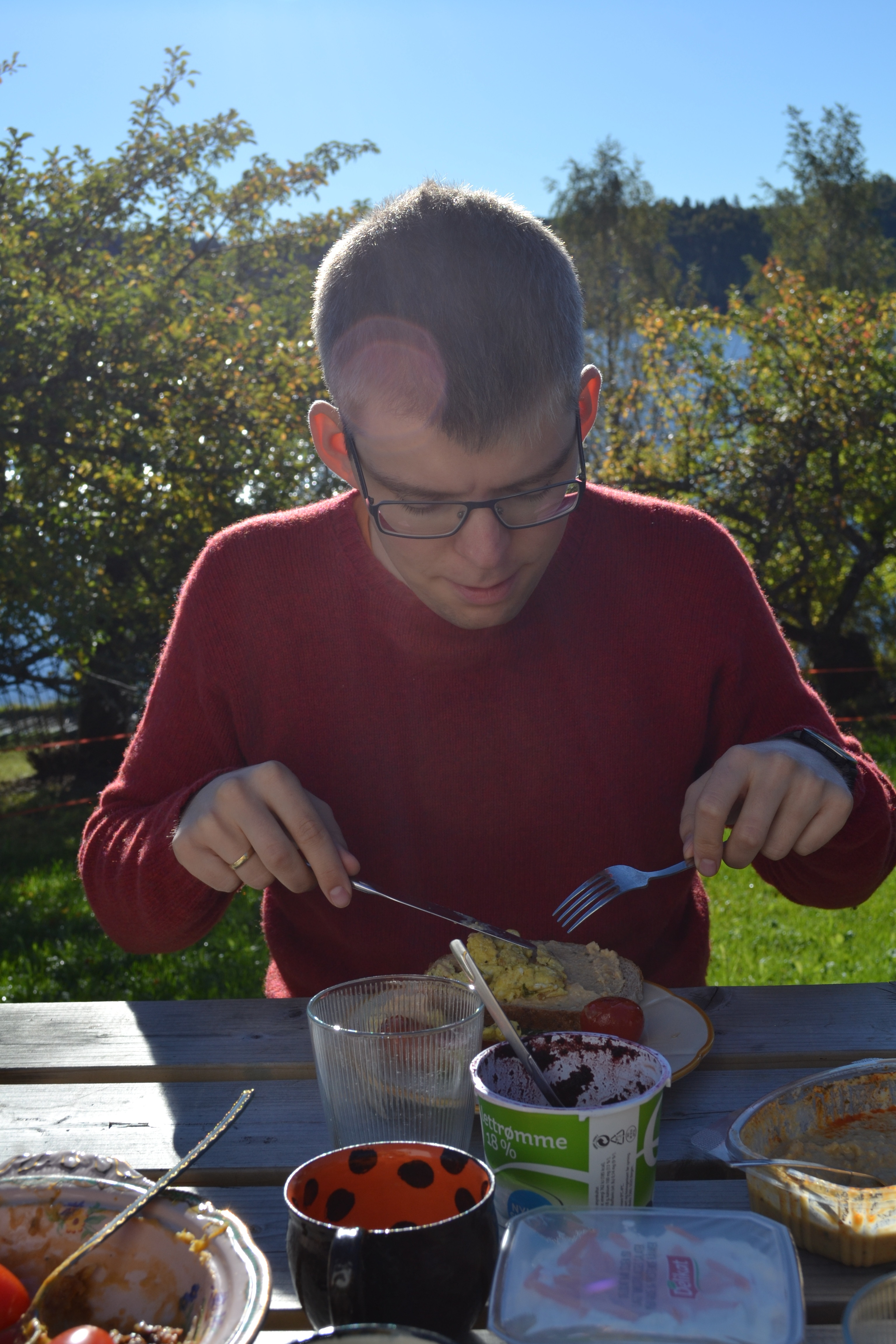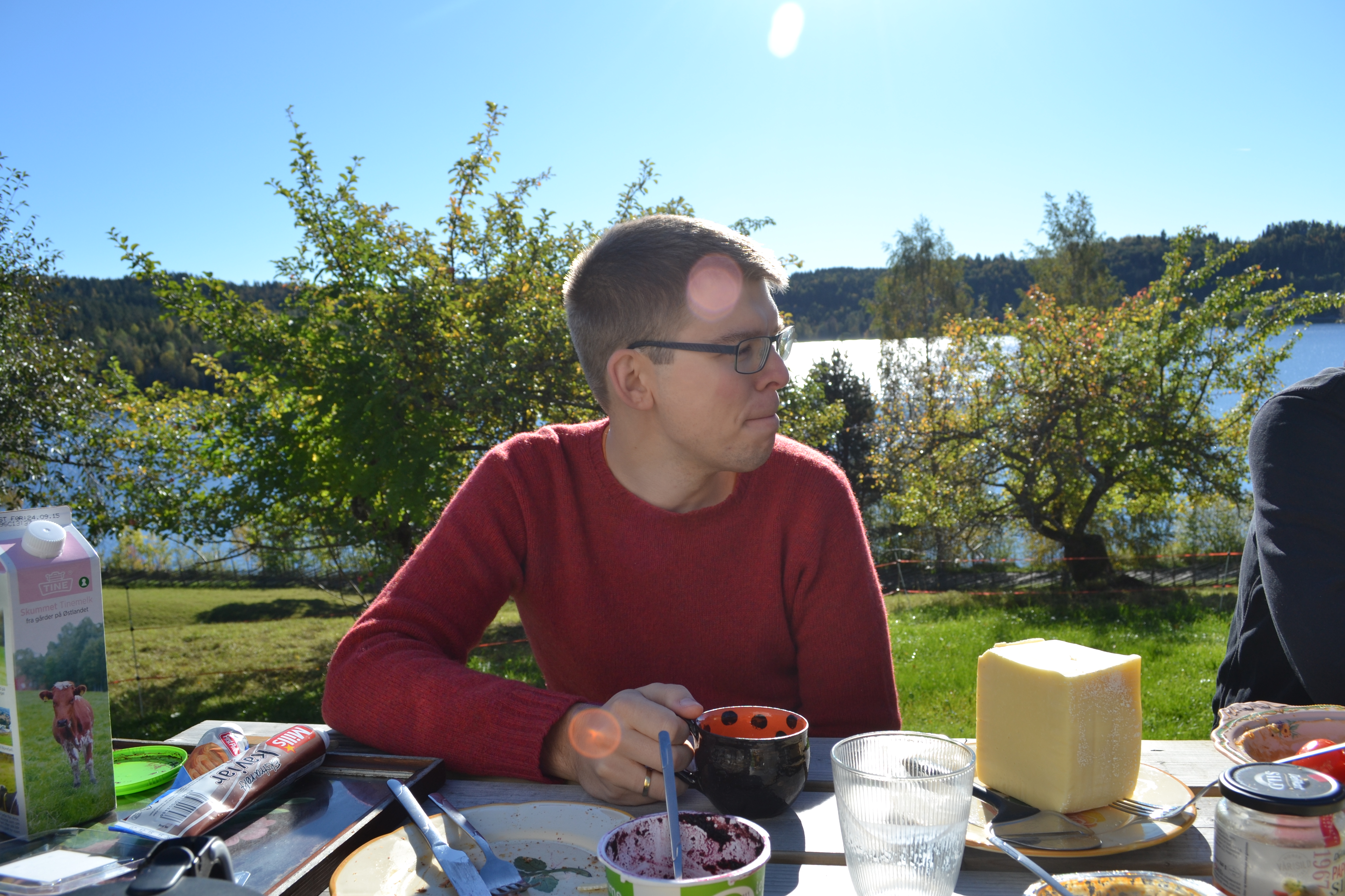I helga var vi på Ryghsetra for å feire Helges bursdag og vi kombinerte besøket med tur på søndag. Men først vil jeg vise bilder fra den nydelige frokosten vi hadde ute i sola søndag morgen.