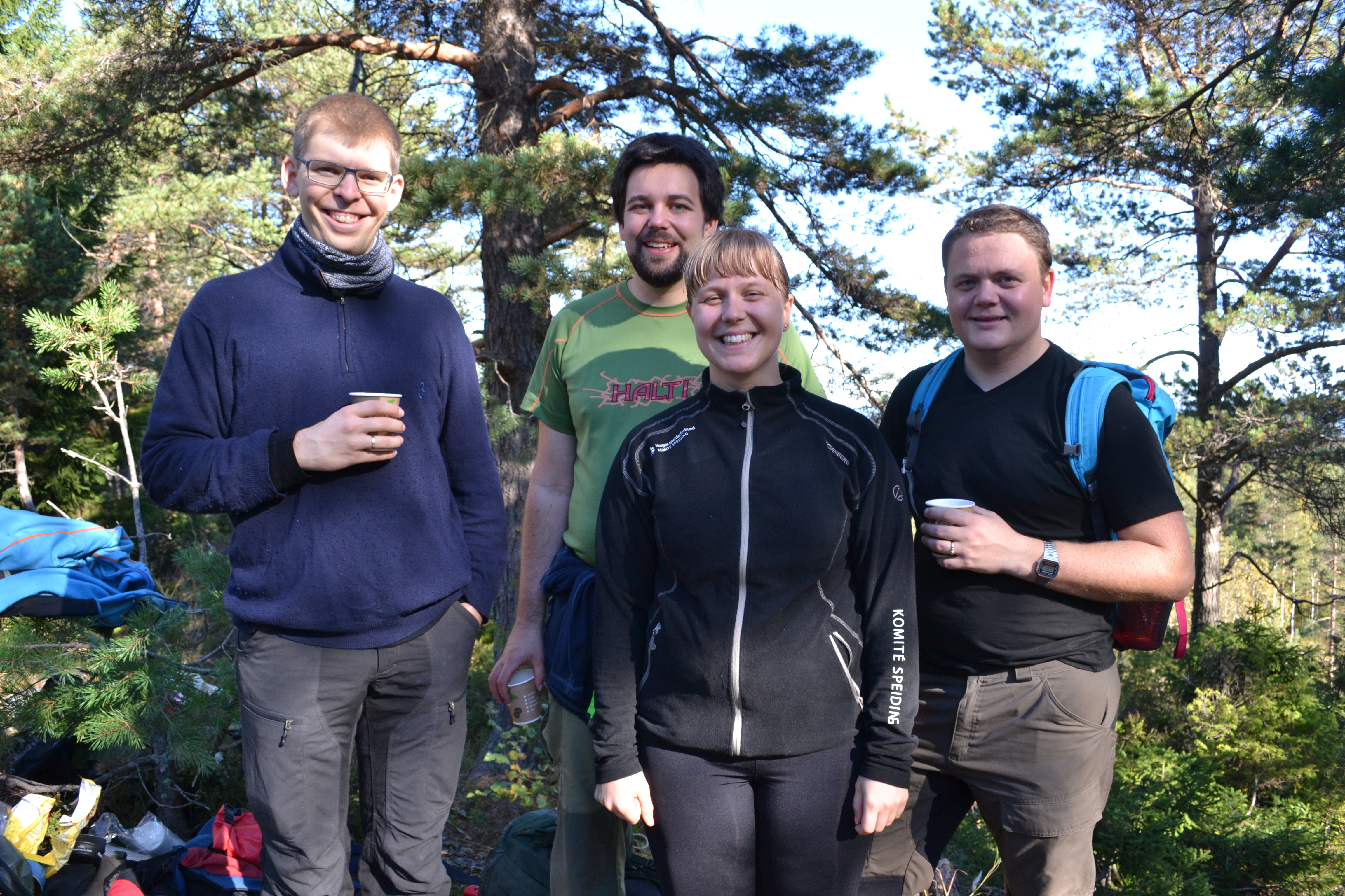 English: we went hiking last Sunday just outside Drammen. It was a sunny, beautiful day and we met some scouts on the way.
