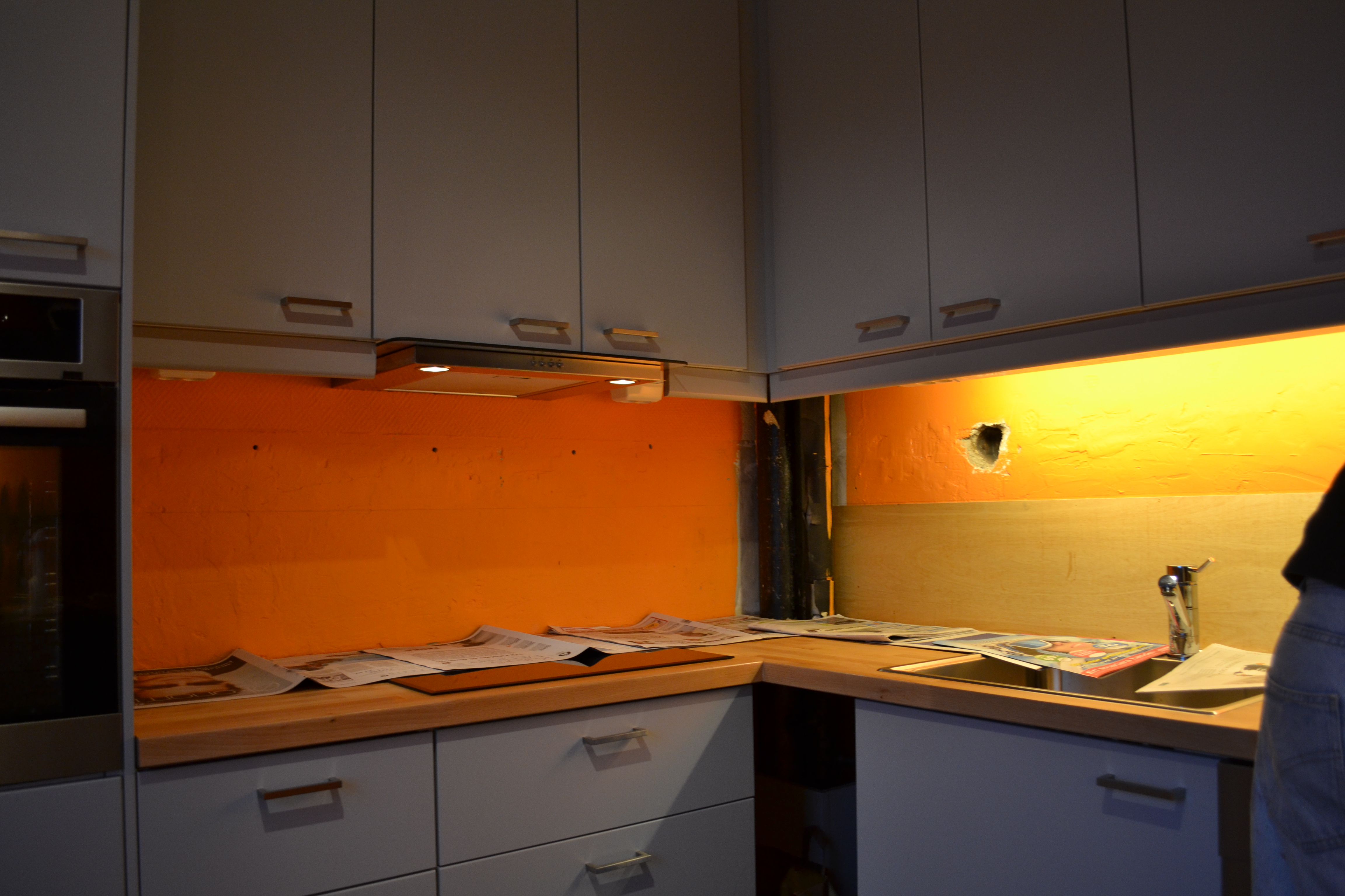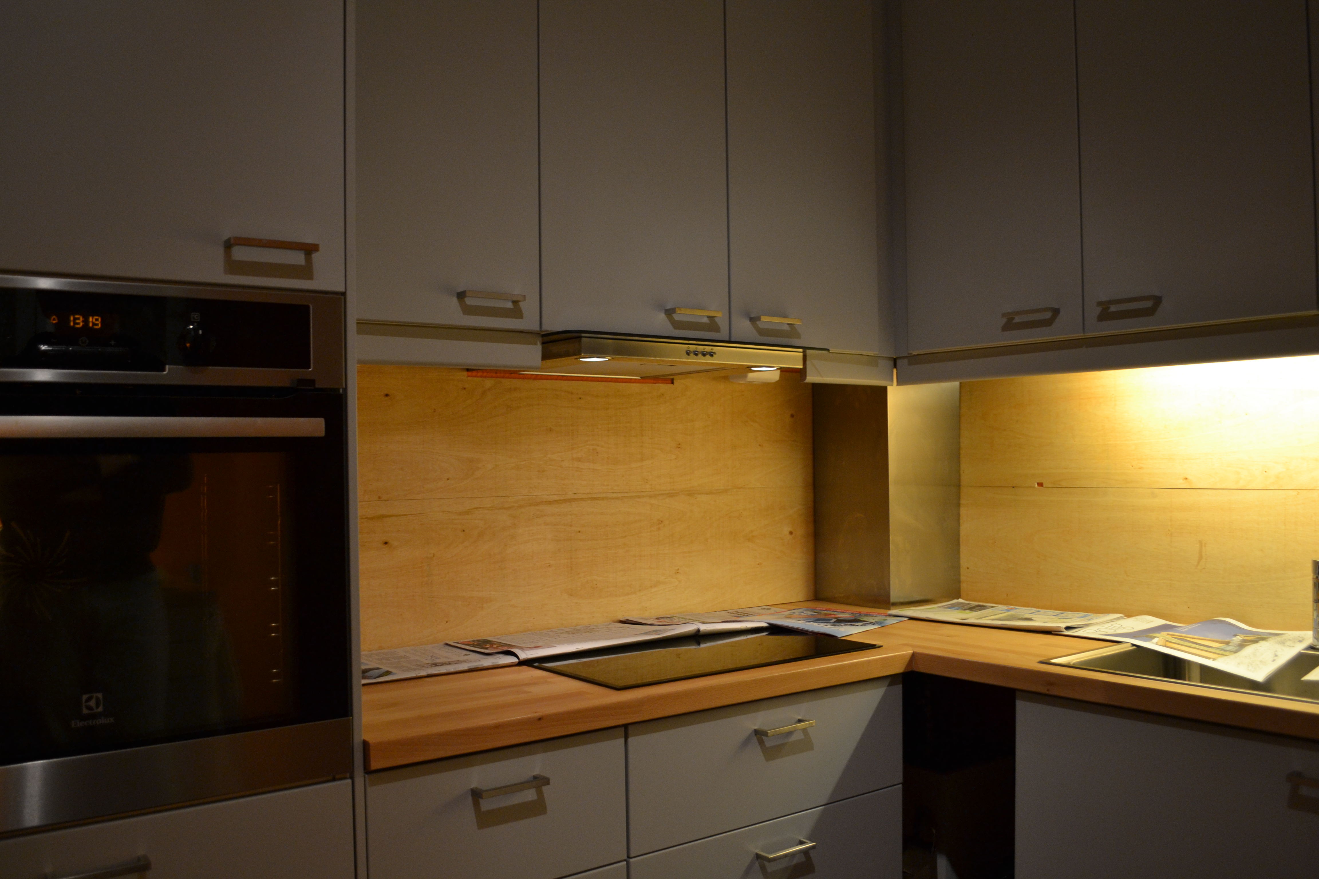 Kjøkkenet har ikke endret seg så mye siden vi flyttet inn, annet enn at kjøleskapsmagnetsamlingen vokste betraktelig i sommer da vi var på interrail. En magnet fra hvert land og gaver fra Eriks familie når de er ute og reiser 🙂