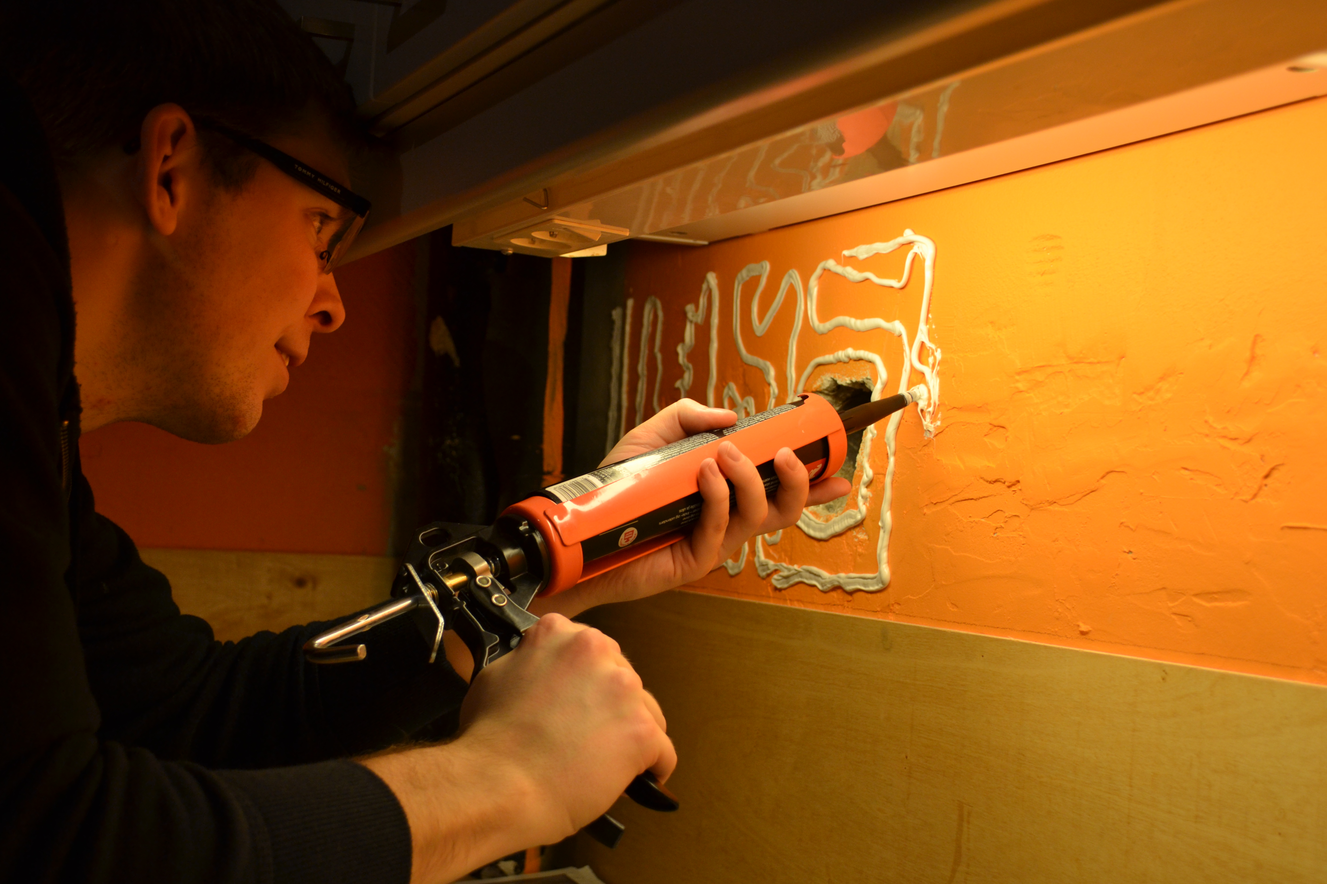 Gangen har også fått nye kunst, Erik har flyttet på gangen og fått selskap av “Bølgen”, et av de nye innkjøpene. Fin og klattete og kunstete er den, og matcher veldig fint med den rosa veggen.