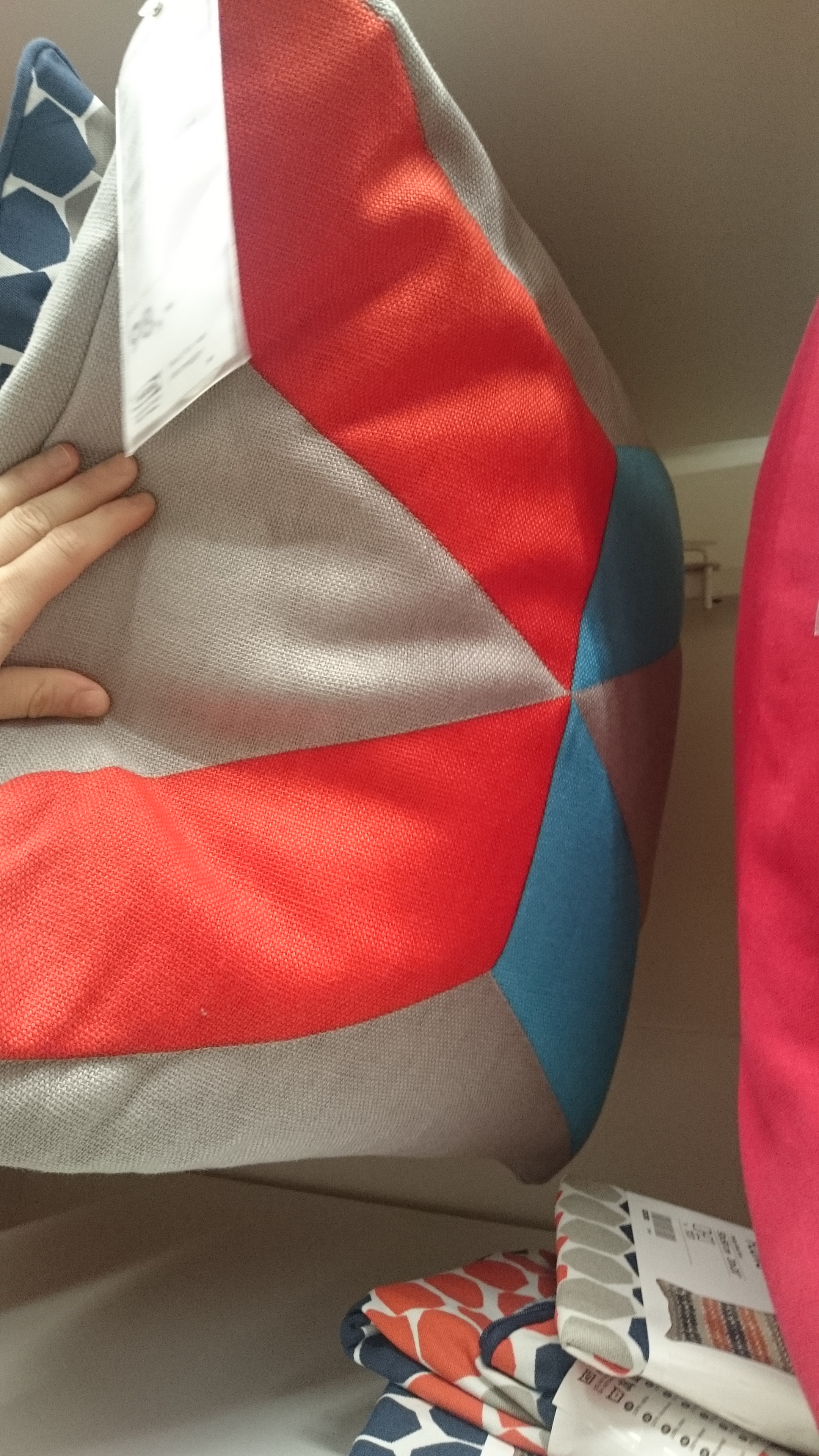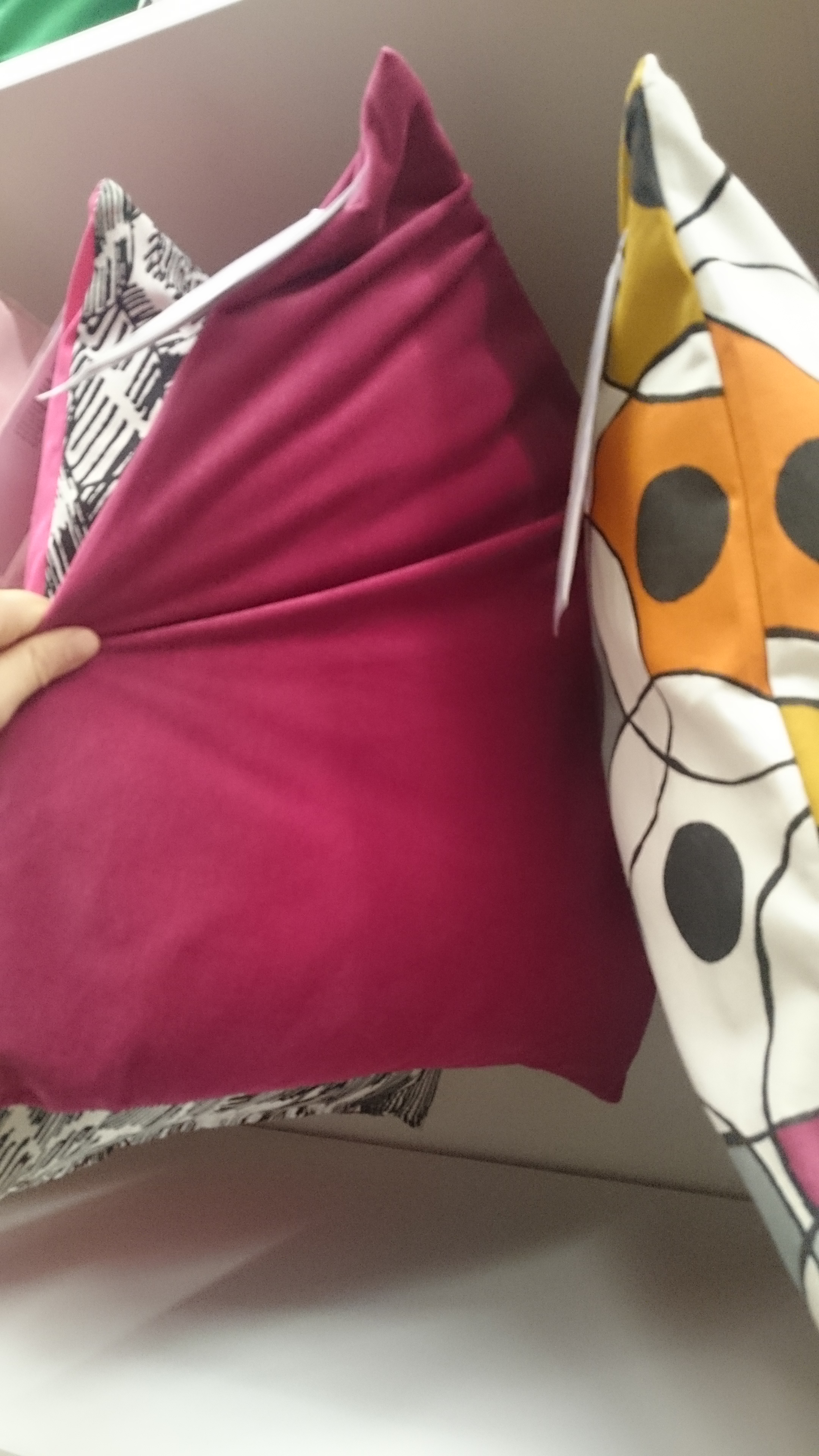 Det er litt trangt i stua nå, med den ekstra sofaen, men jeg håper vi får solgt den snart. Bringebærputene gjør seg veldig godt i den nye sofaen, men vi må kjøpe noen flere nå, det er litt glissent. Det er bare ikke så morsomt å kjøpe puter…