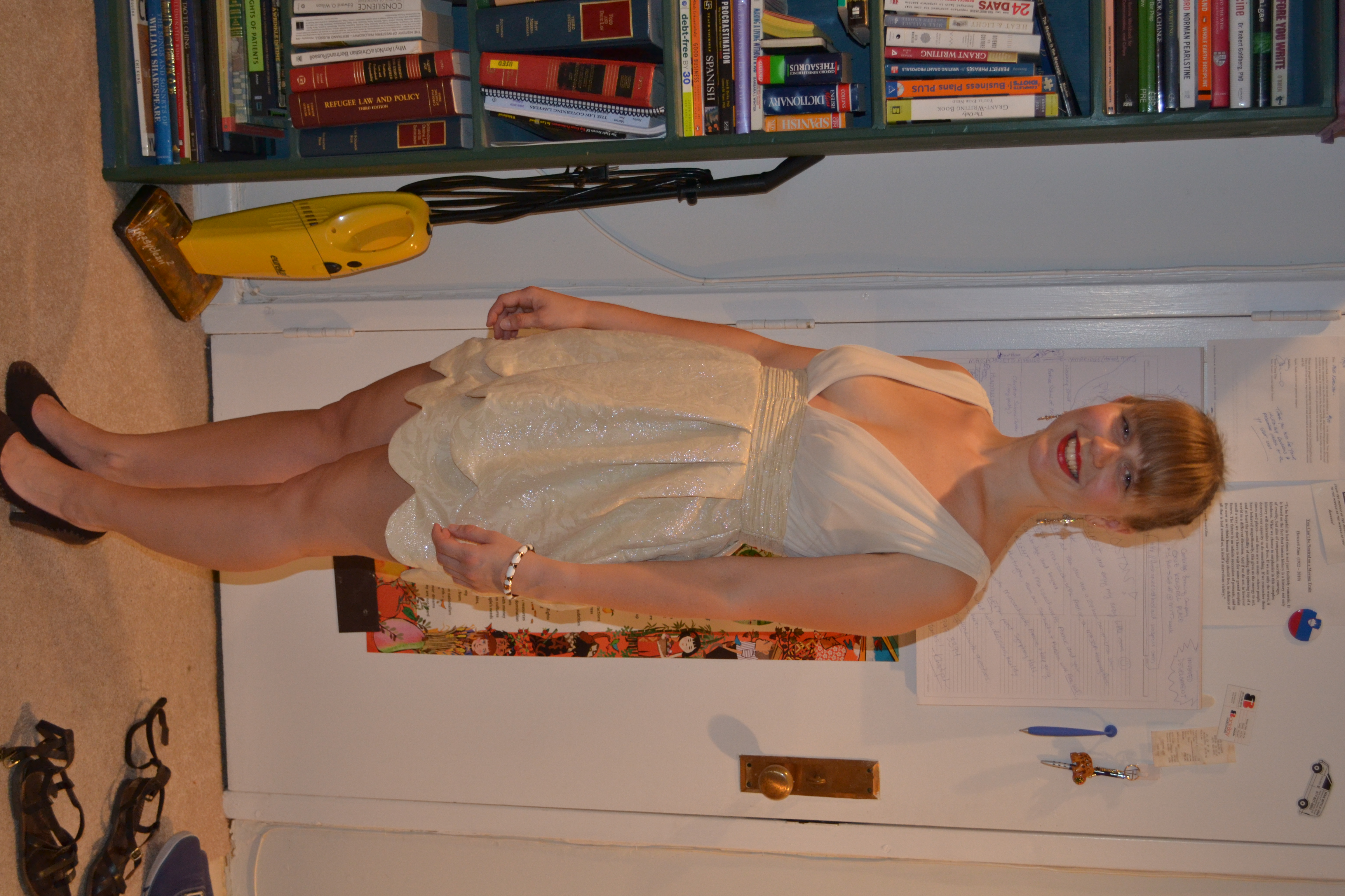 I really like her jacket. Especially the yellow details and the short arms. But how do you shorten arms and make them look good? And I want a skirt like that 🙂