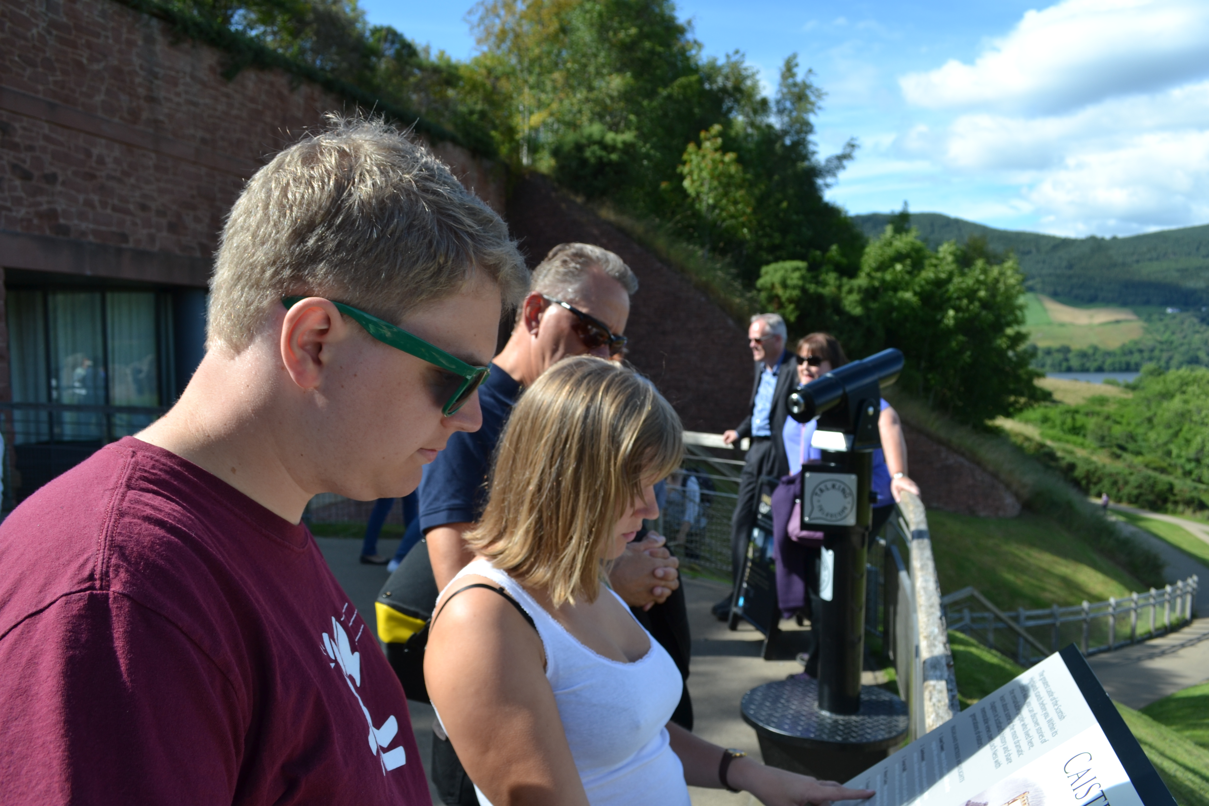 Jeg har helt elendig kondis og ser derfor litt gretten og sliten ut her på toppen av brua ved Kjøpmannsskjær. Heldigvis er Erik glad i meg uansett. Jeg gruer meg til alle oppoverbakkene i Skottland, men trøster meg med at Bror sikkert er i like dårlig form som jeg…
