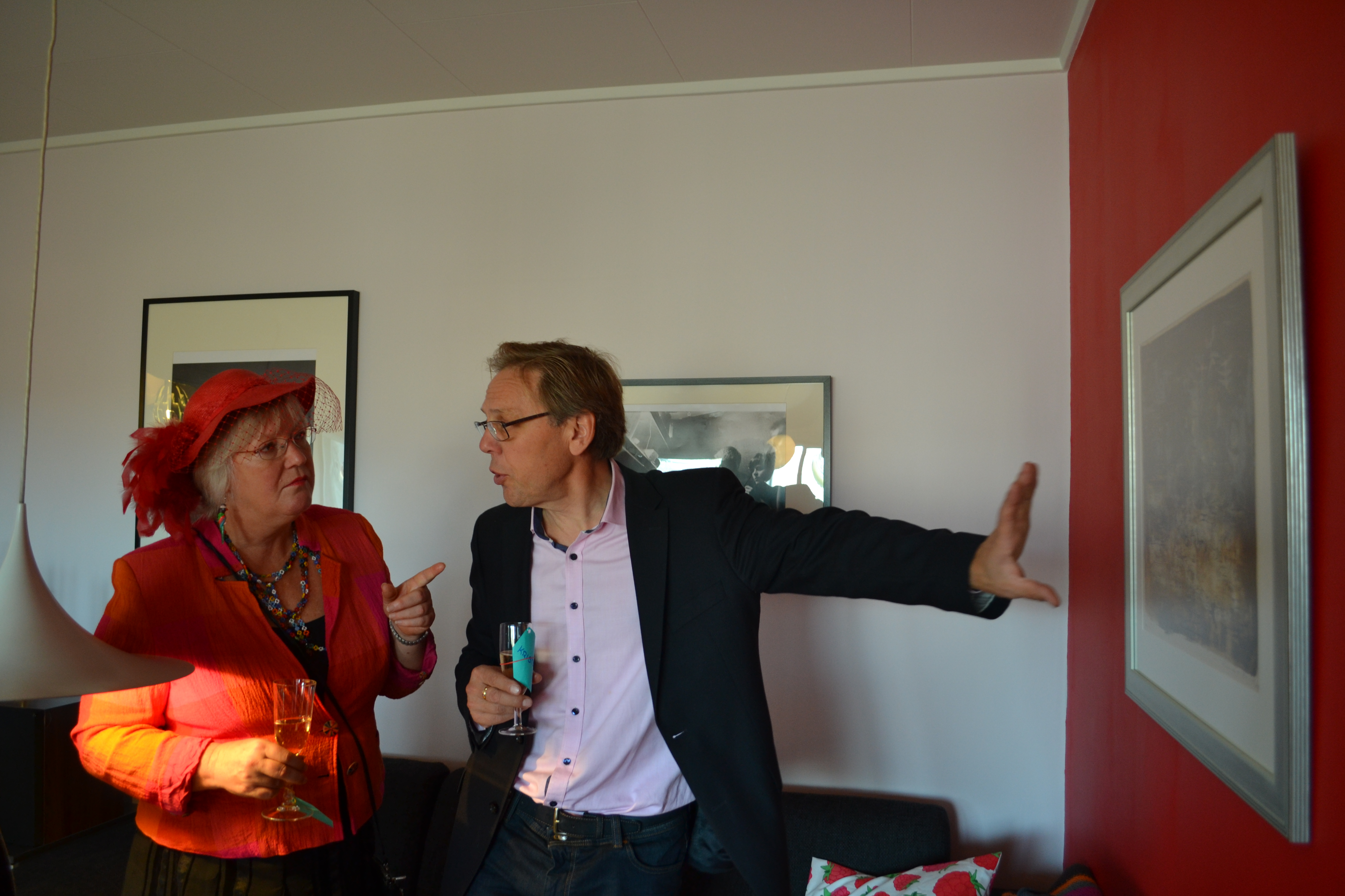 Vi hadde vernissasje med bryllupsgavekunst og alle kledde seg i sine fineste hatter.