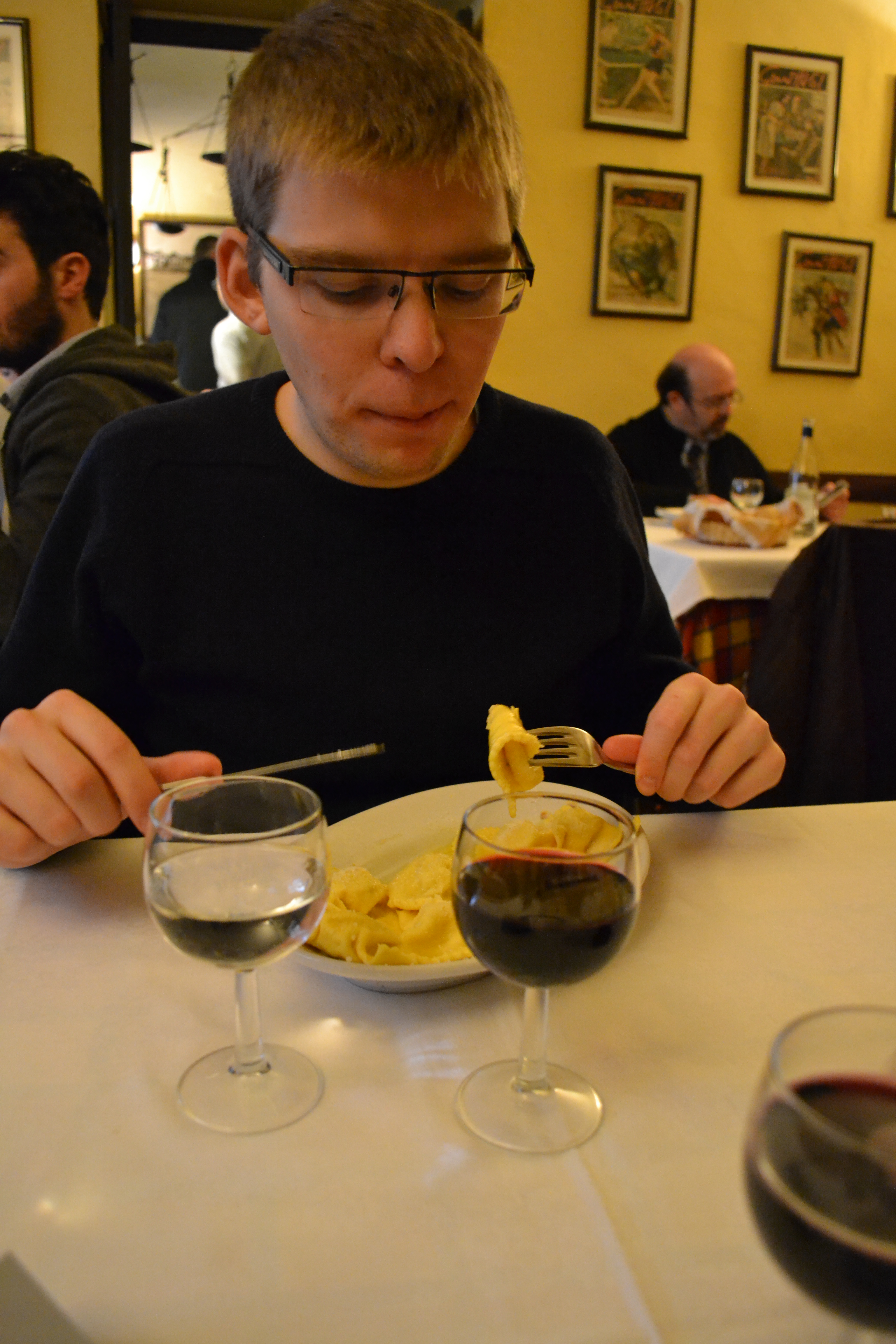 Ravioli. And I loved how you could buy a glass, 0.25, 0.50 or a full bottle of wine at restaurants. So you could buy two or three or more glasses, depending on what you felt like that night.