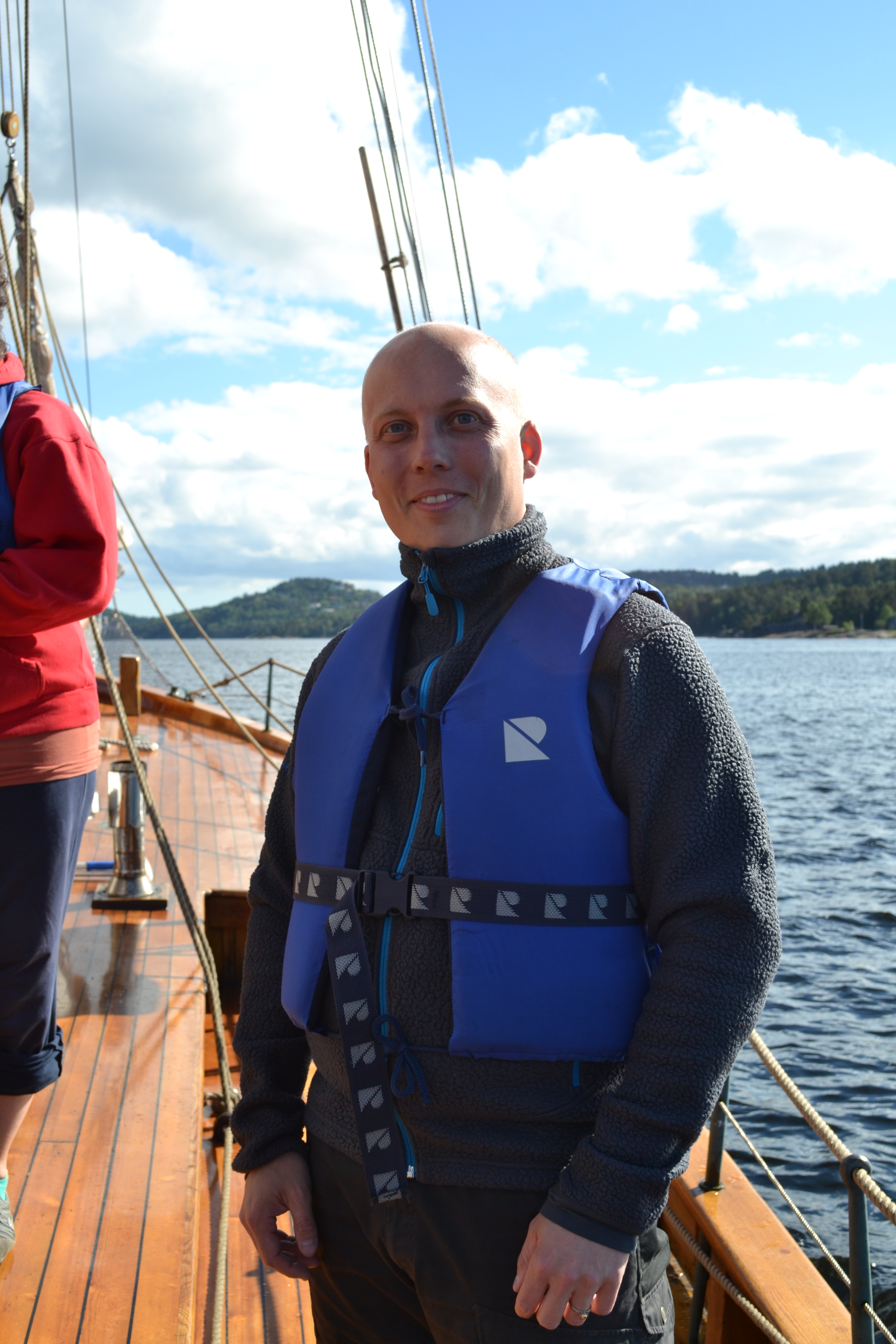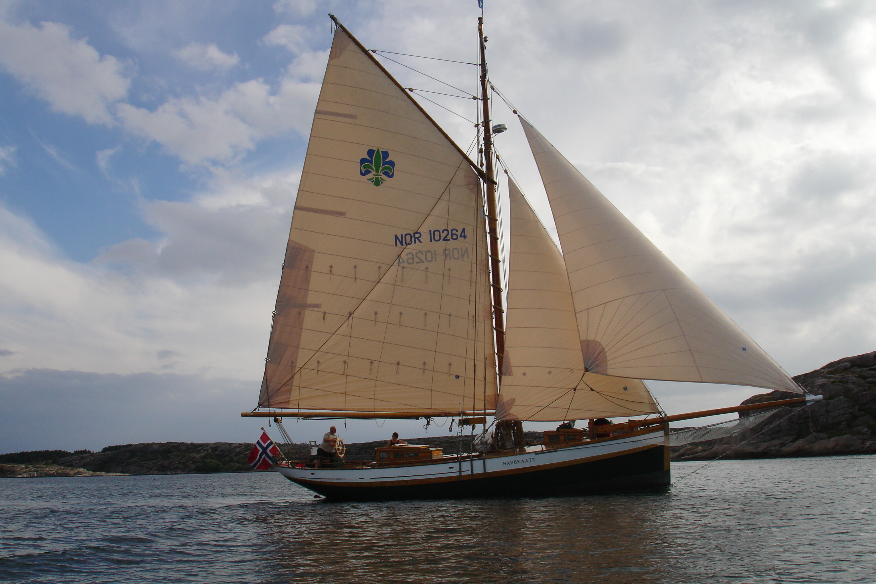 This is Havbratt, owned by the Norwegian Scout and Guide Association. We are having our monthly committee meeting here, sailing around Kristiansand.