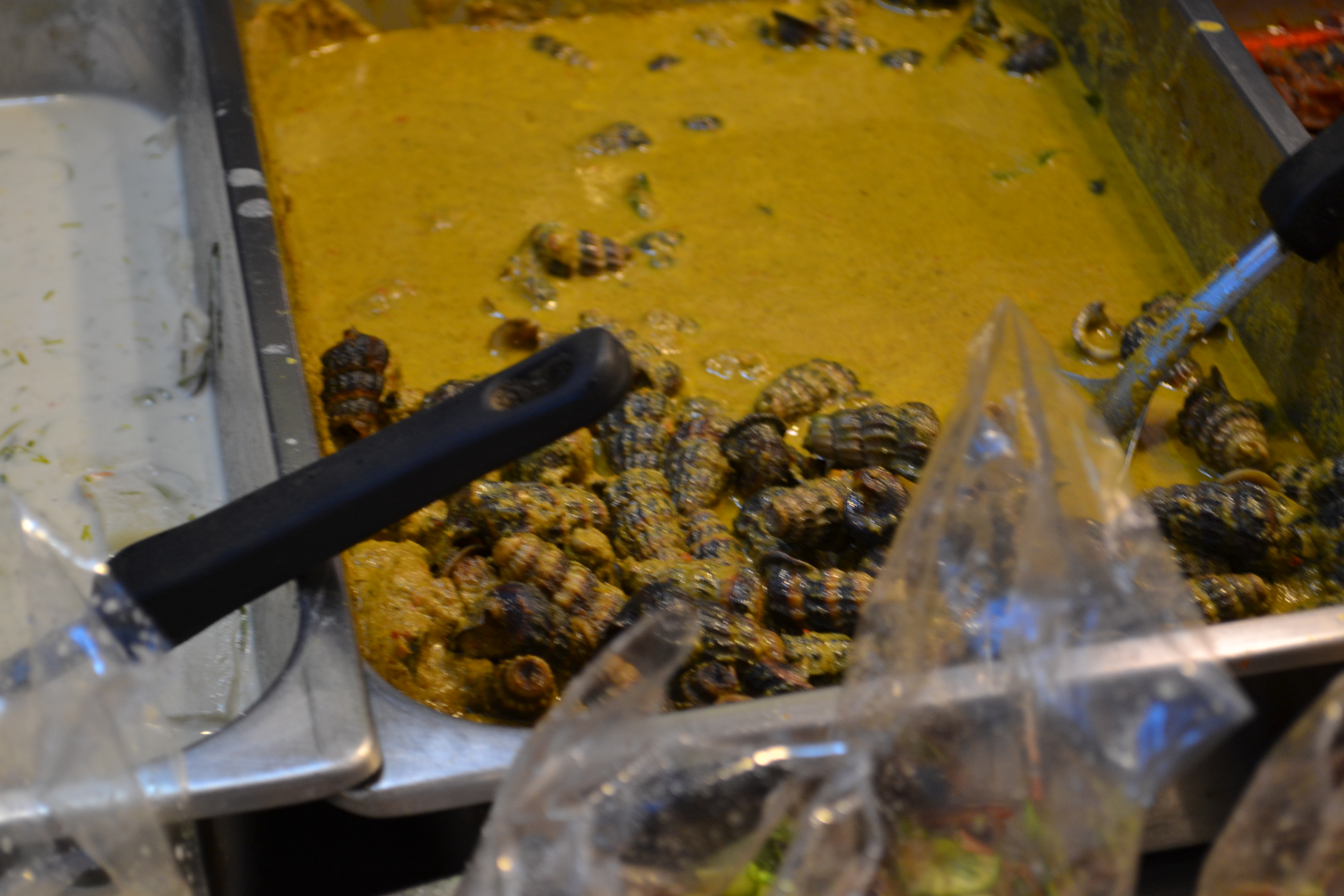 When we came to Krabi the skies opened, but we still needed some food, so we got to the market and hung out with the locals under the roofs.