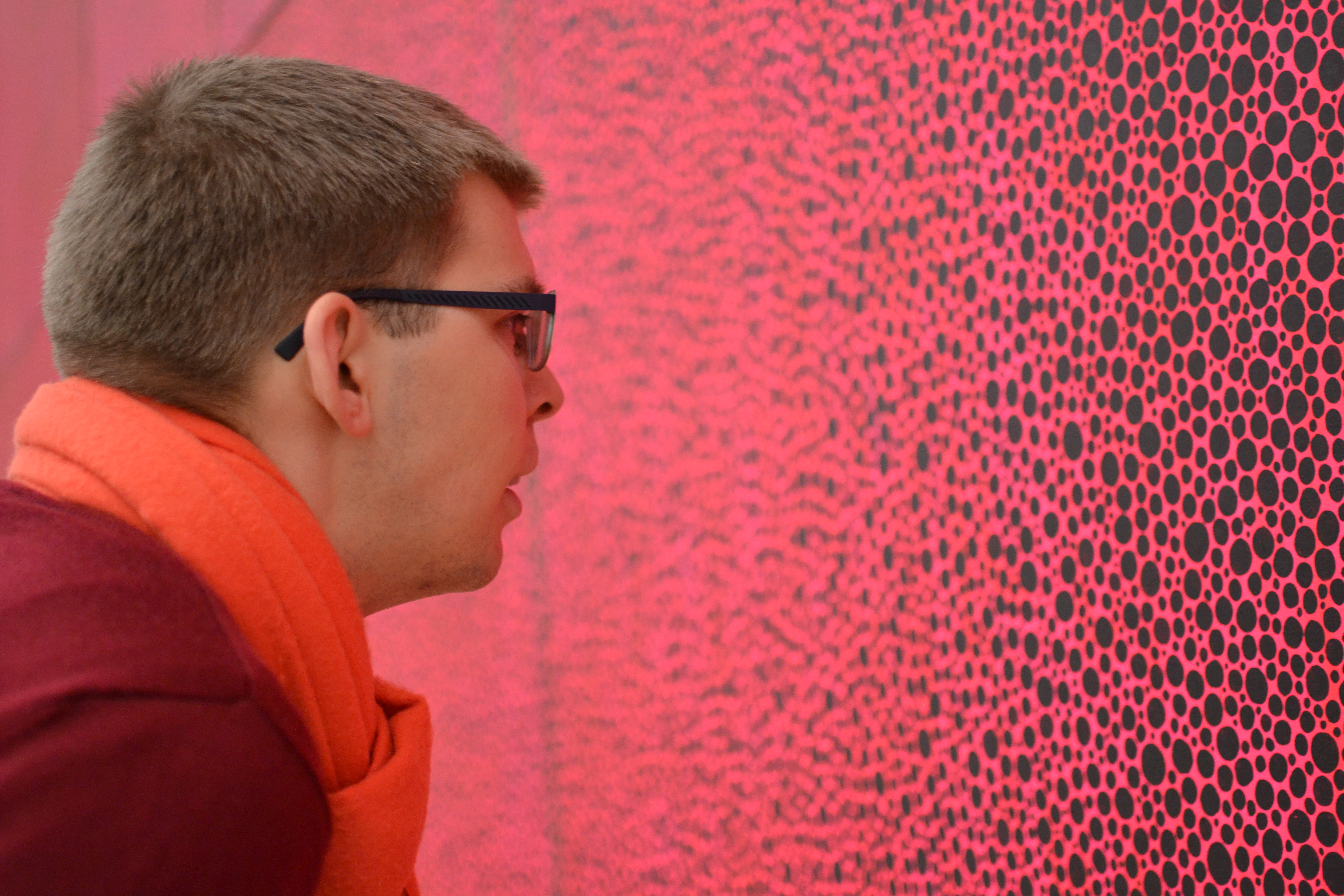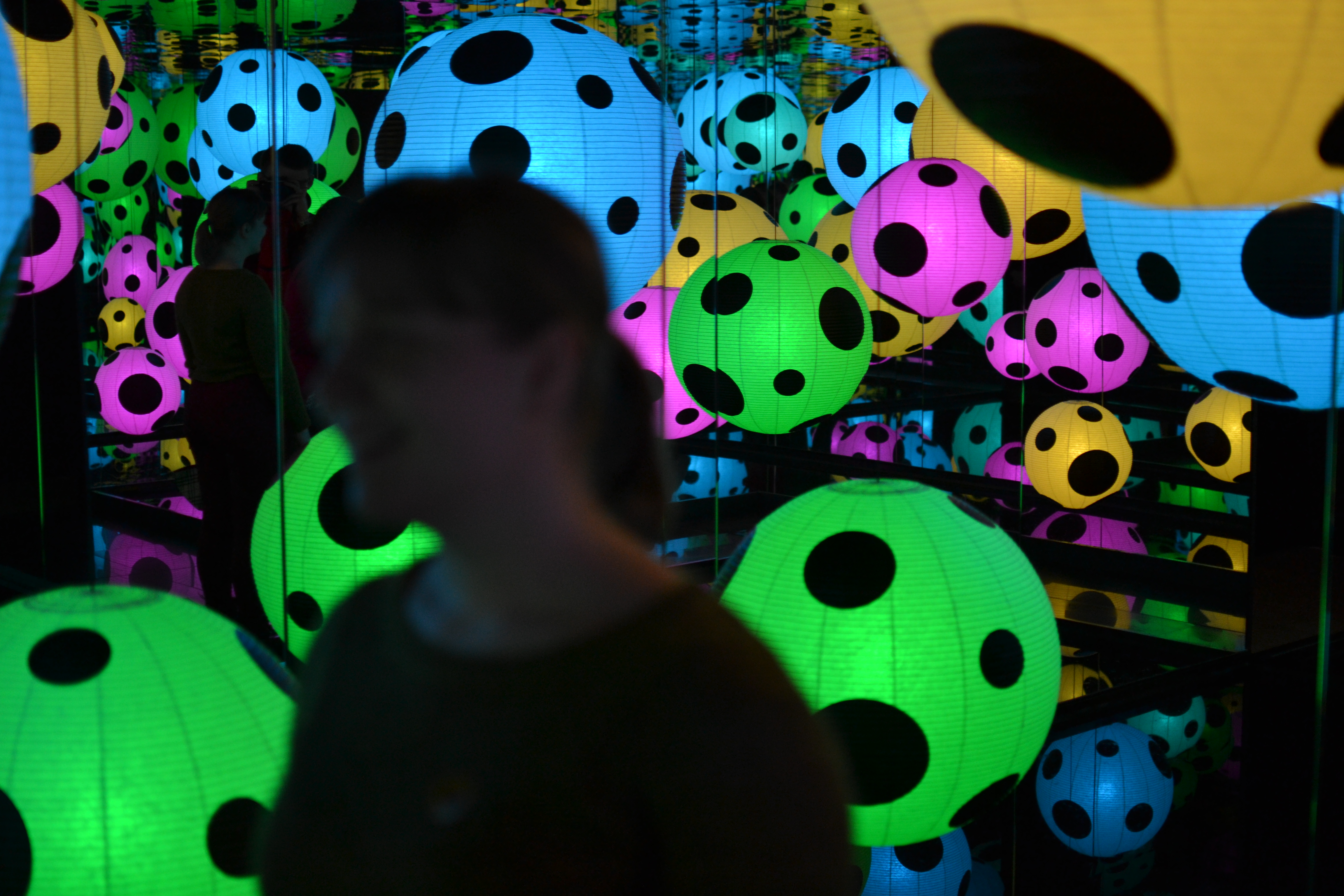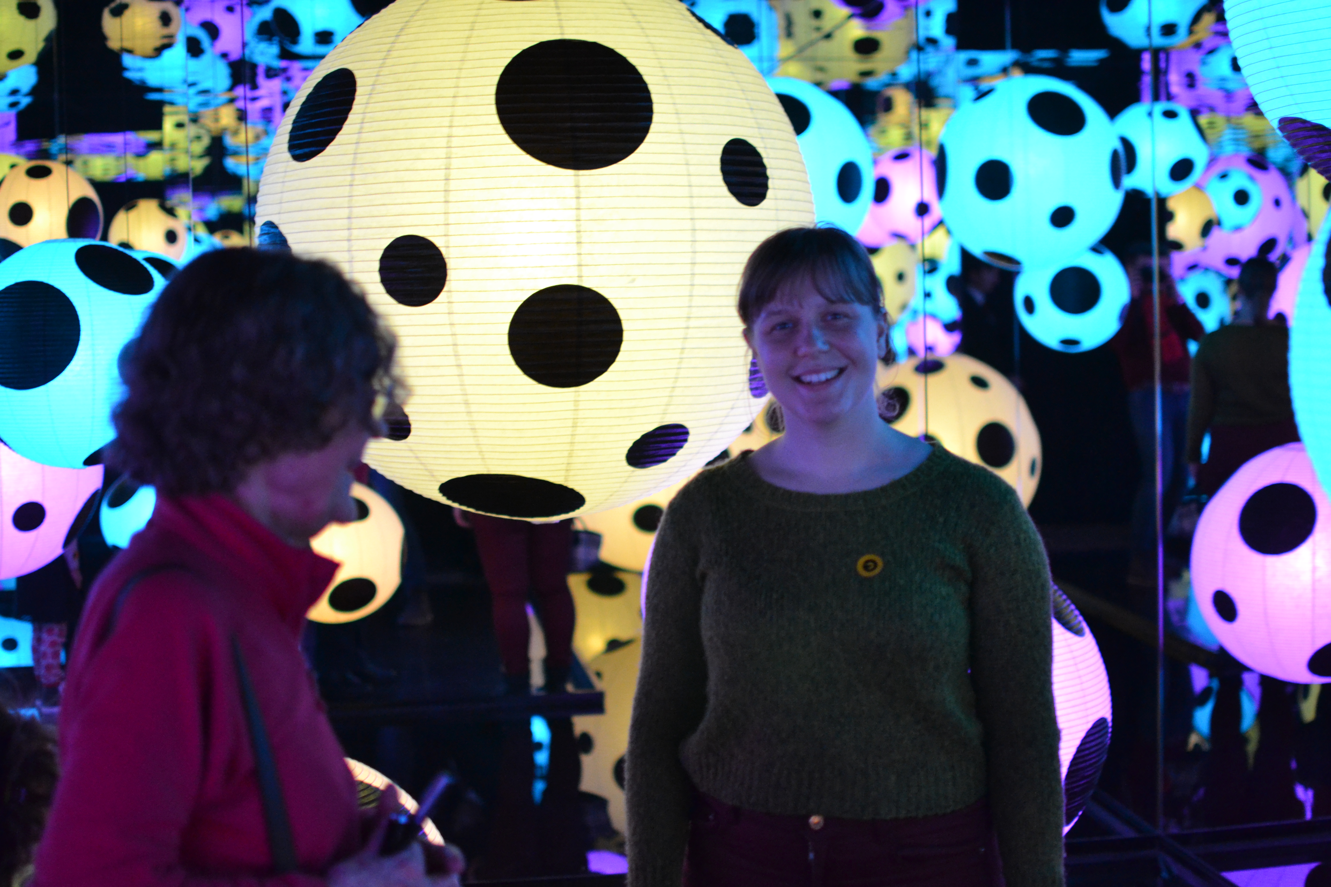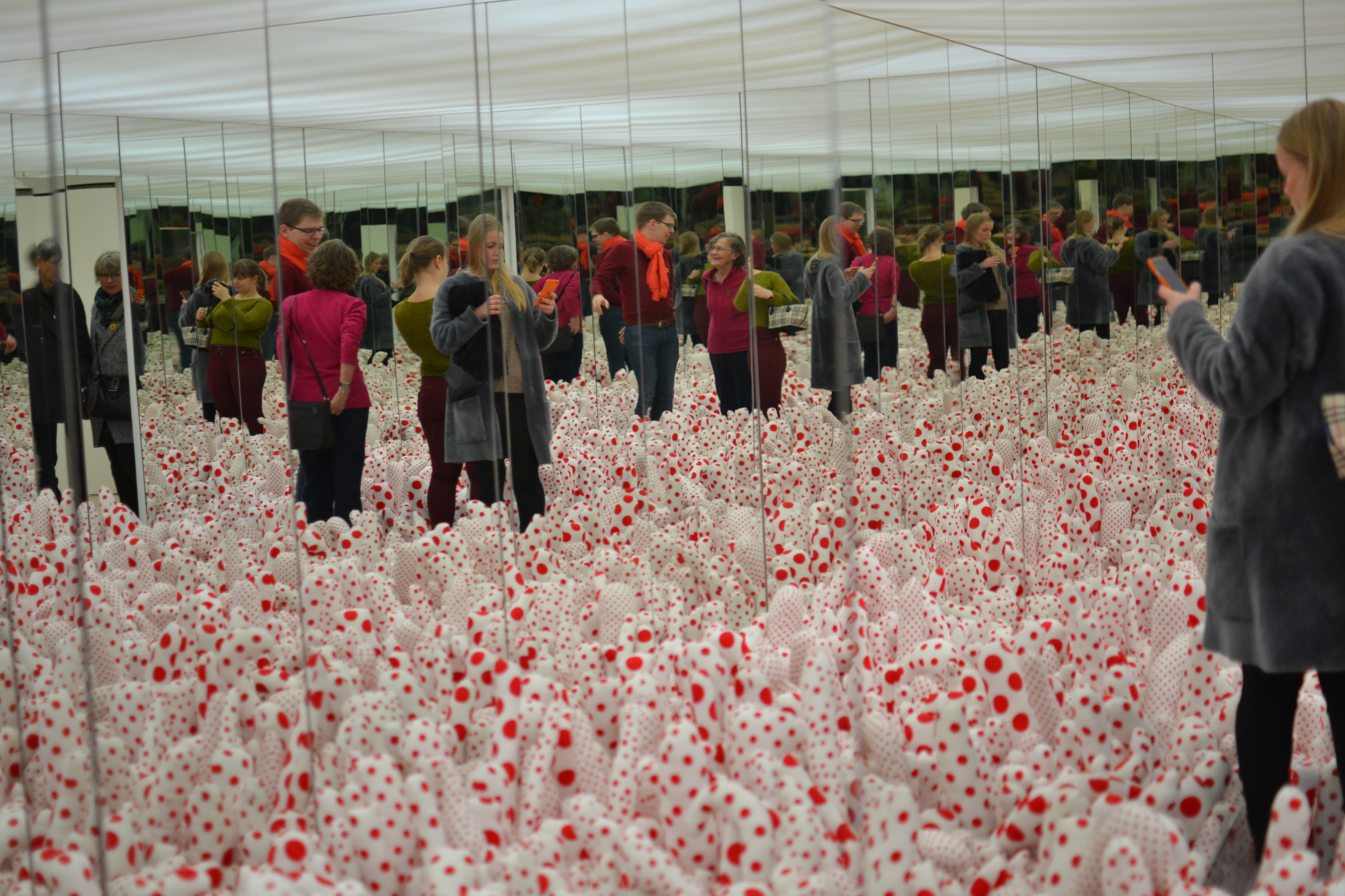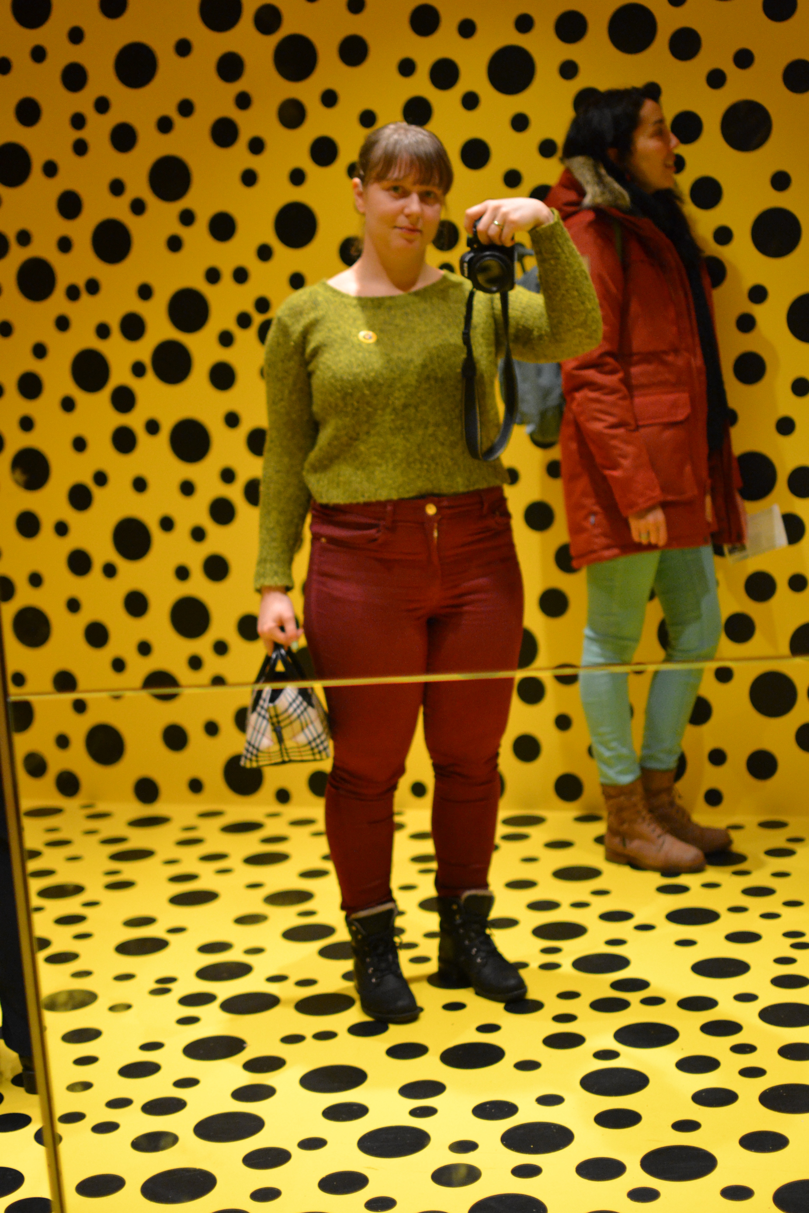 I et av de første rommene vi gikk inn i fant vi speilboksen til Kusama, det var utrolig kult å plutselig kjenne igjen kunst fra en kunstner. Å umiddelbart tenke: “dette må jo være Kusama, hun hadde jo en sånn speilboks på Henie-Onstad i våres”. På Tate modern fikk vi ikke lov til å gå helt inntil boksen, men det var helt klart viktig med et nytt bilde.
