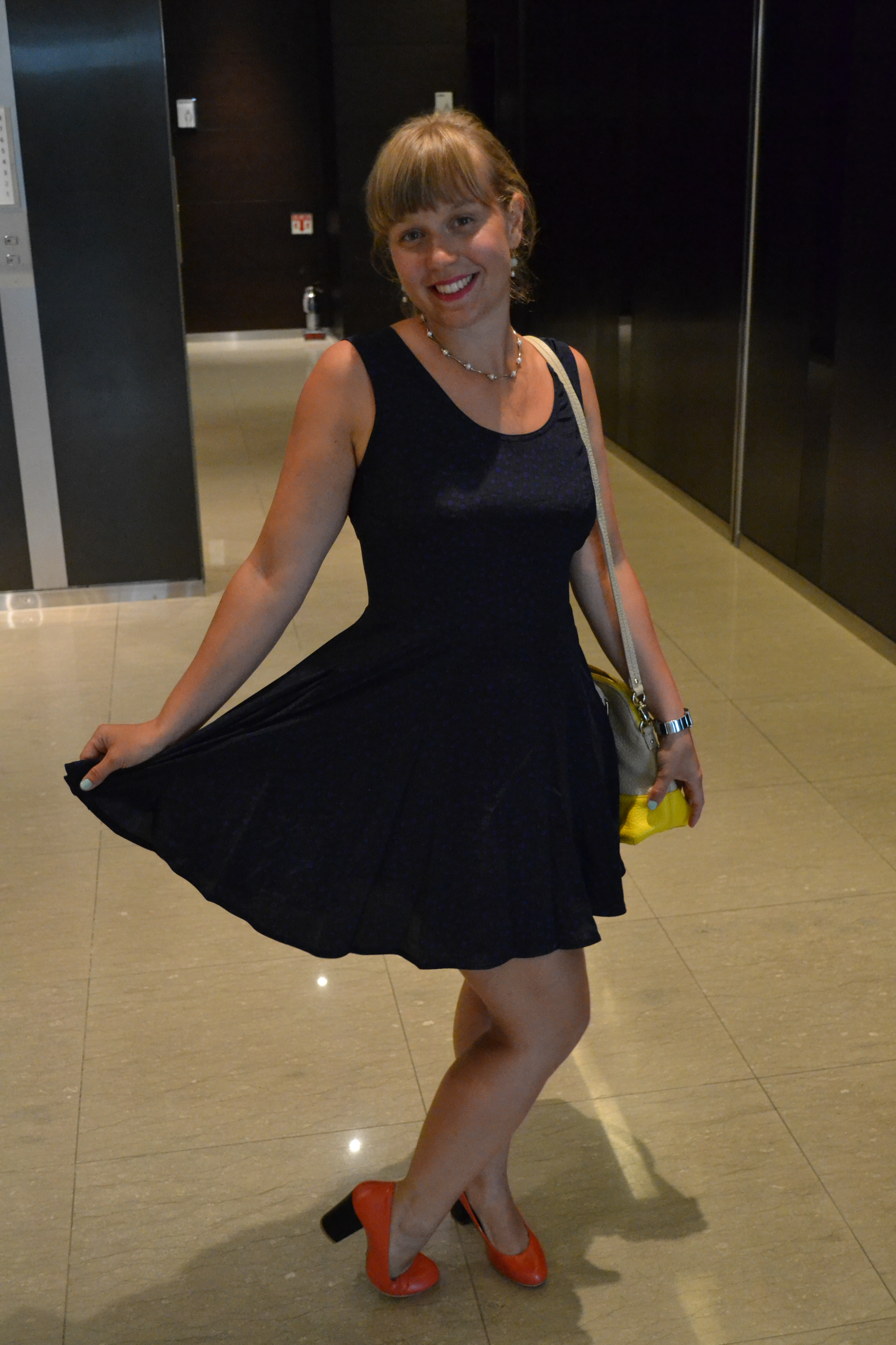I’m also wearing pearls, earrings from the Afghanistan exhibition in Trondheim, my favorite bag from Kate Spade and new Korean made shoes.