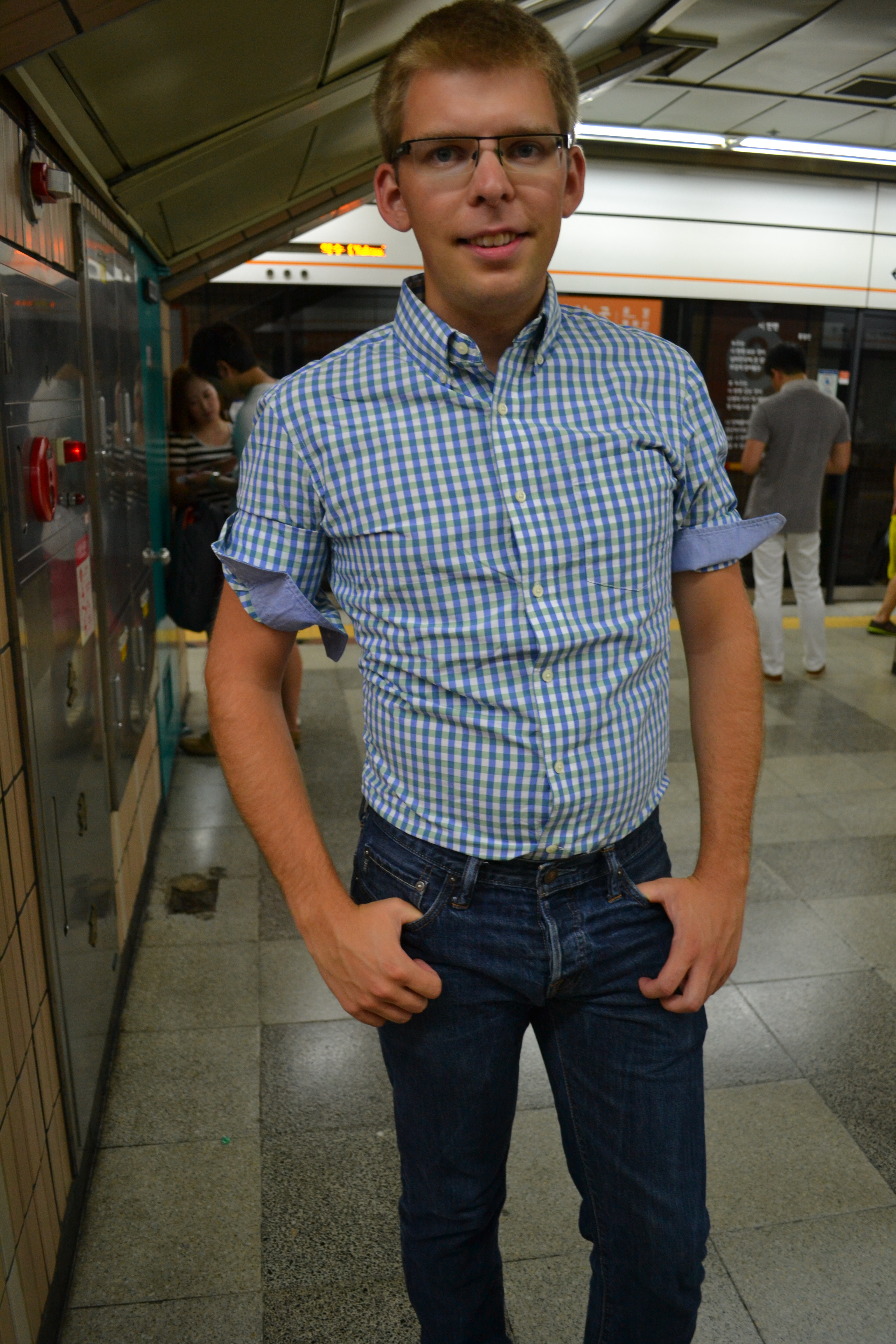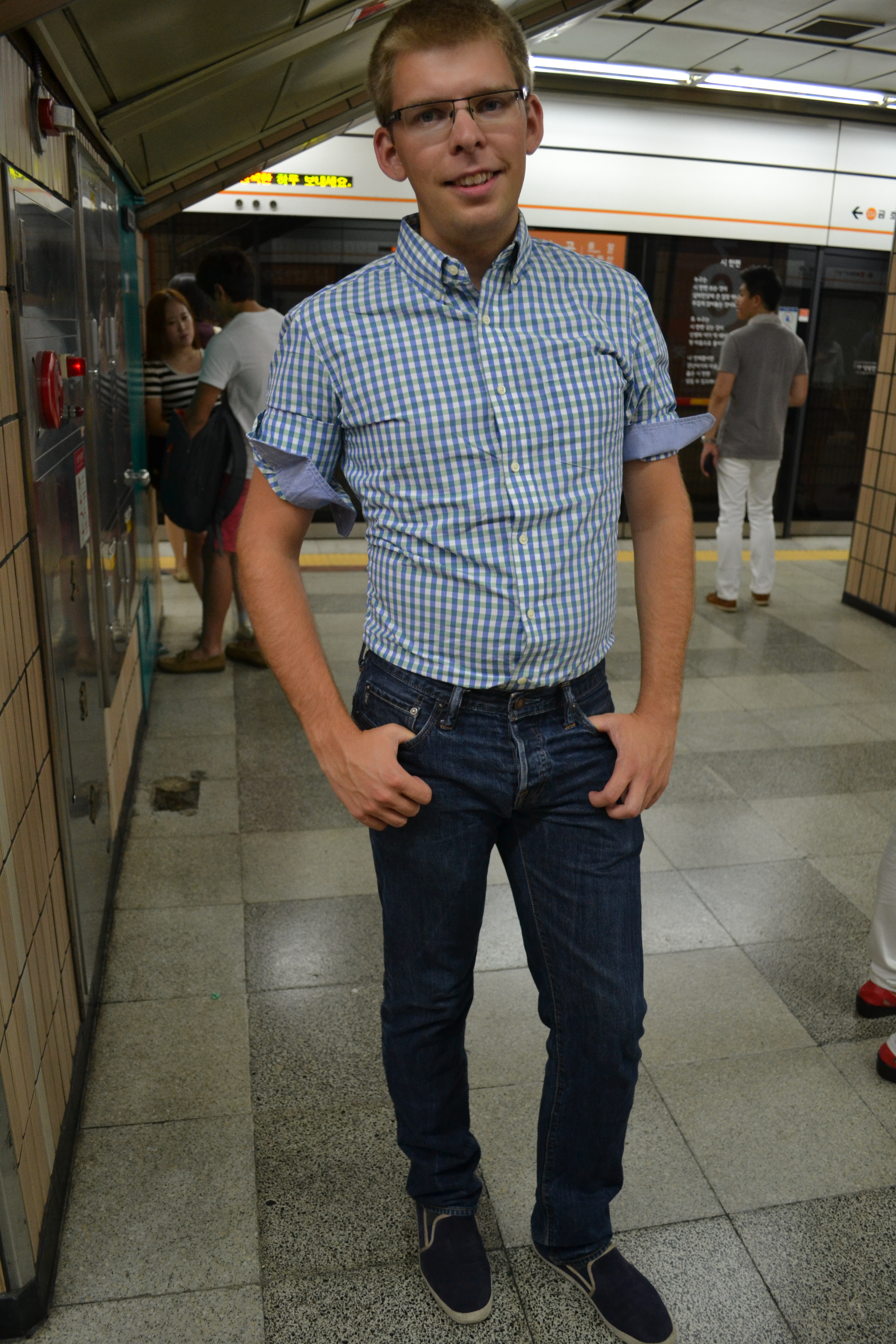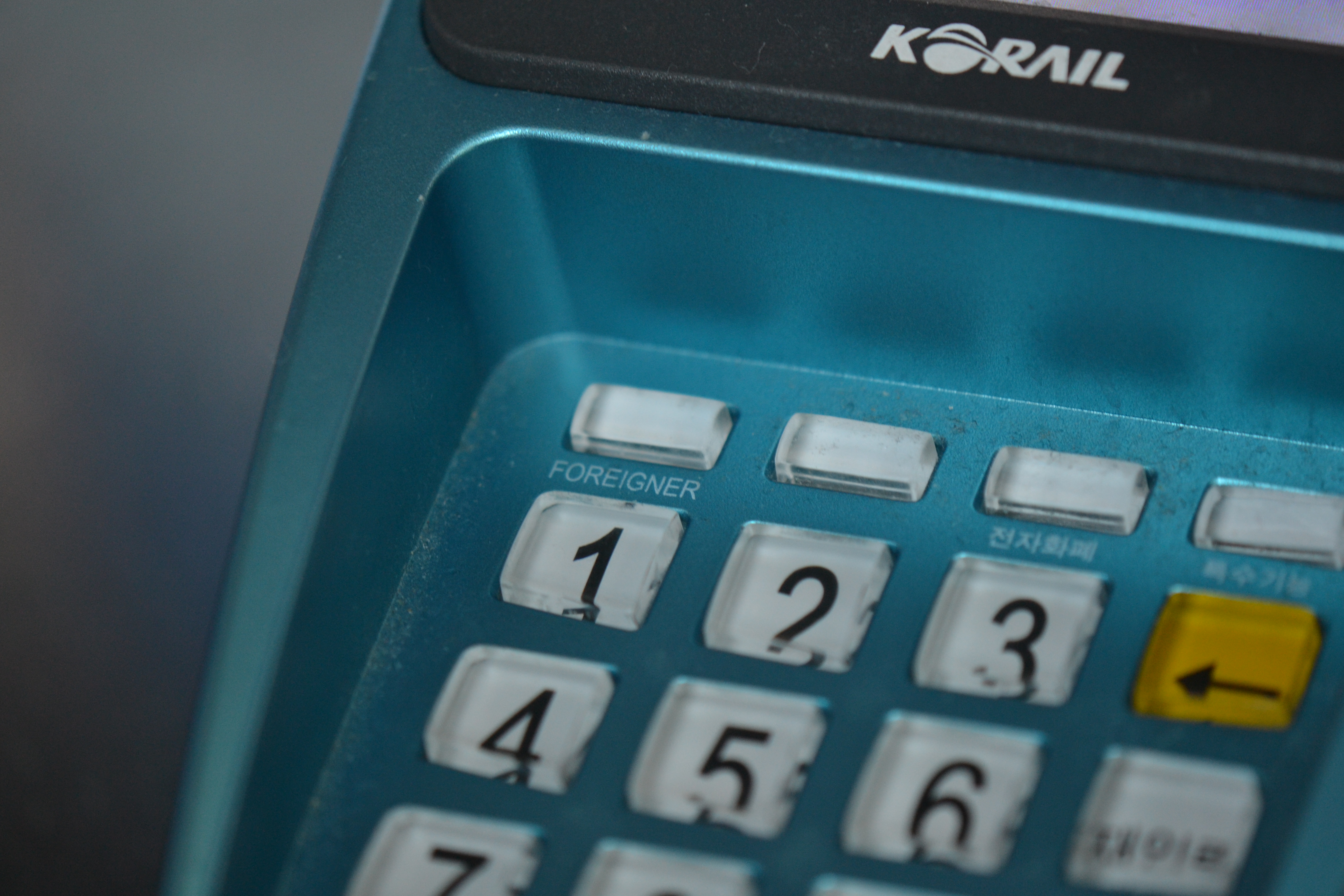 A random shot of a cool Korean, the foreigner button on the machine,