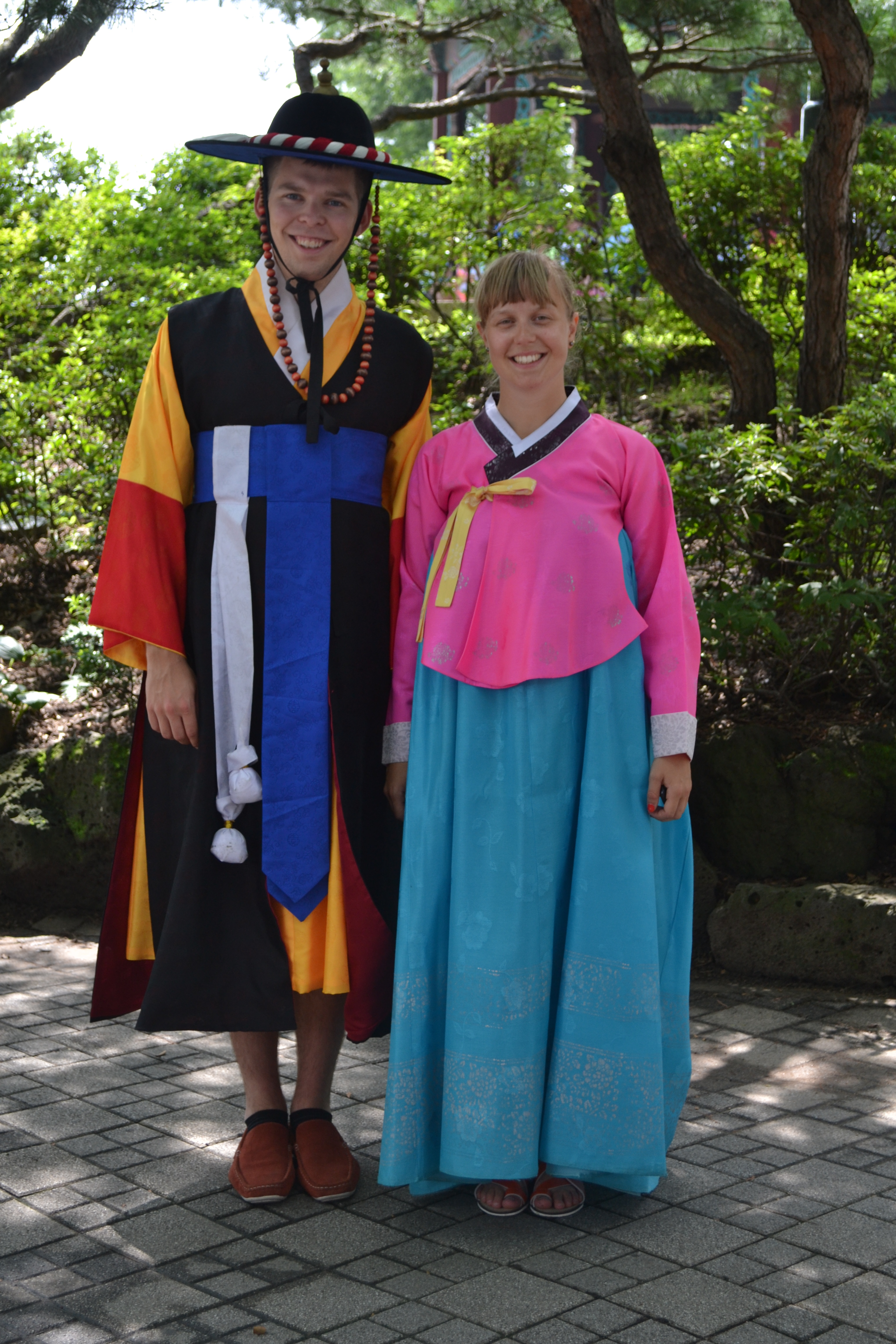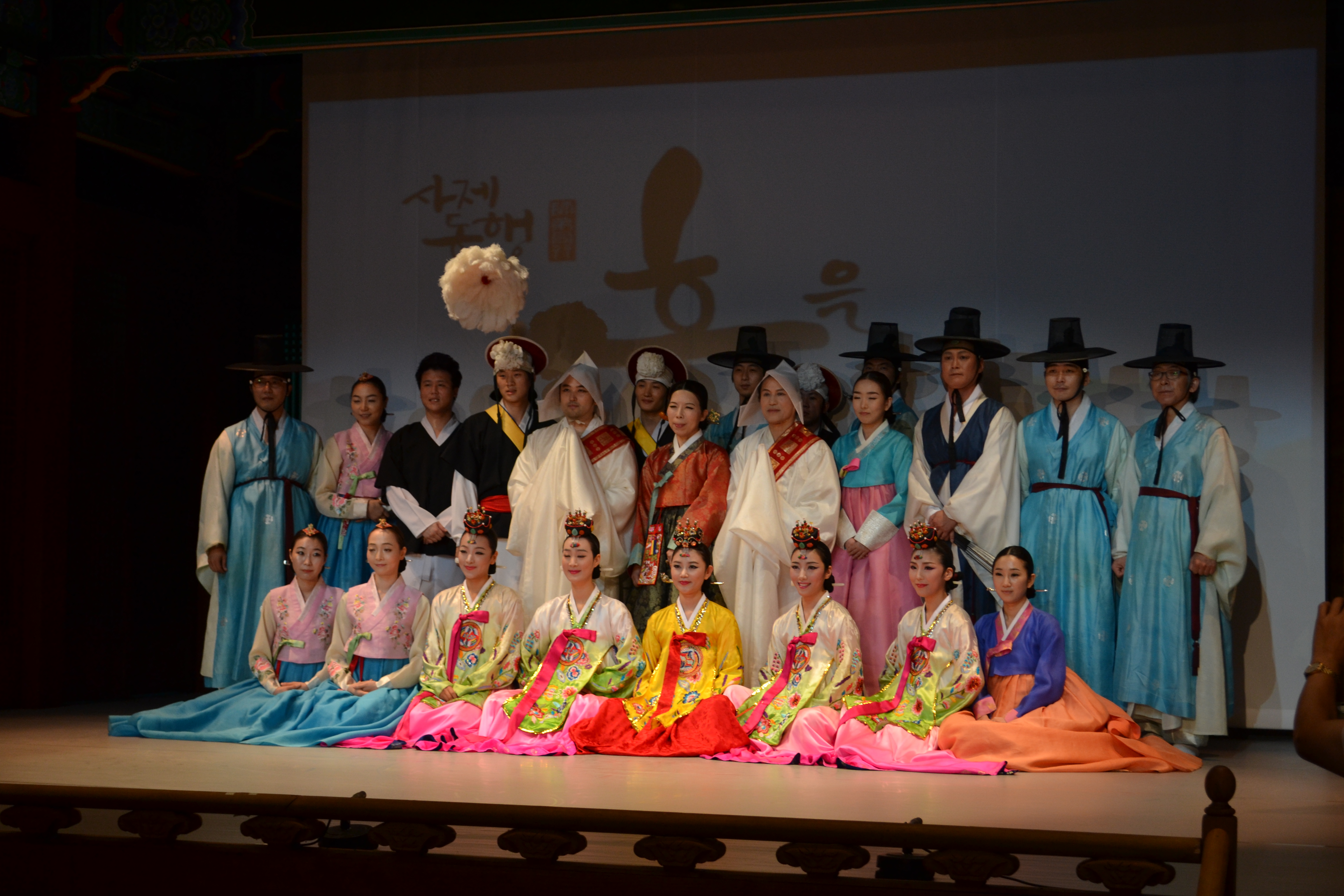 The whole crew in traditional Korean costumes.
