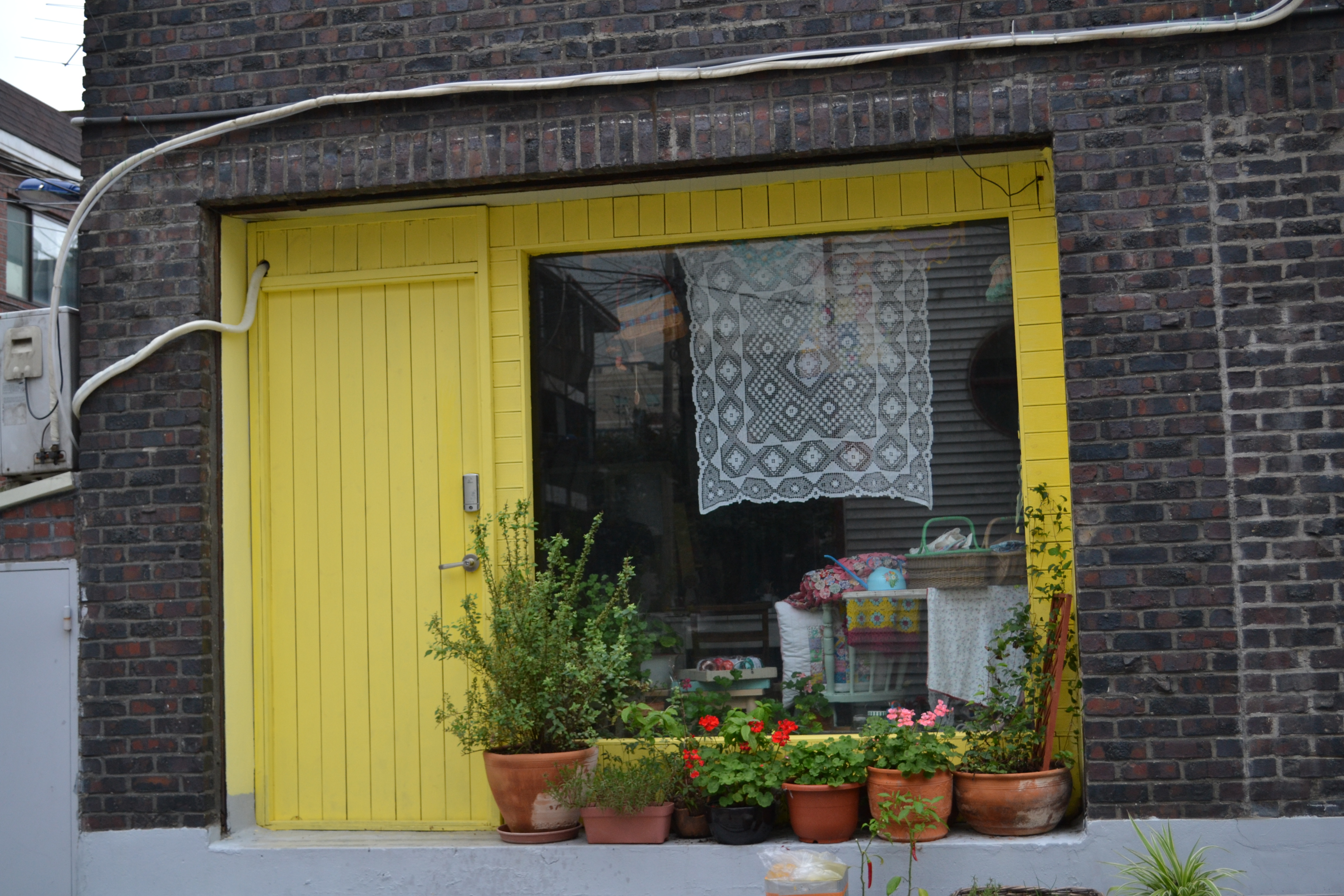 I love how this old house is used as a shop, a merge of old and new.