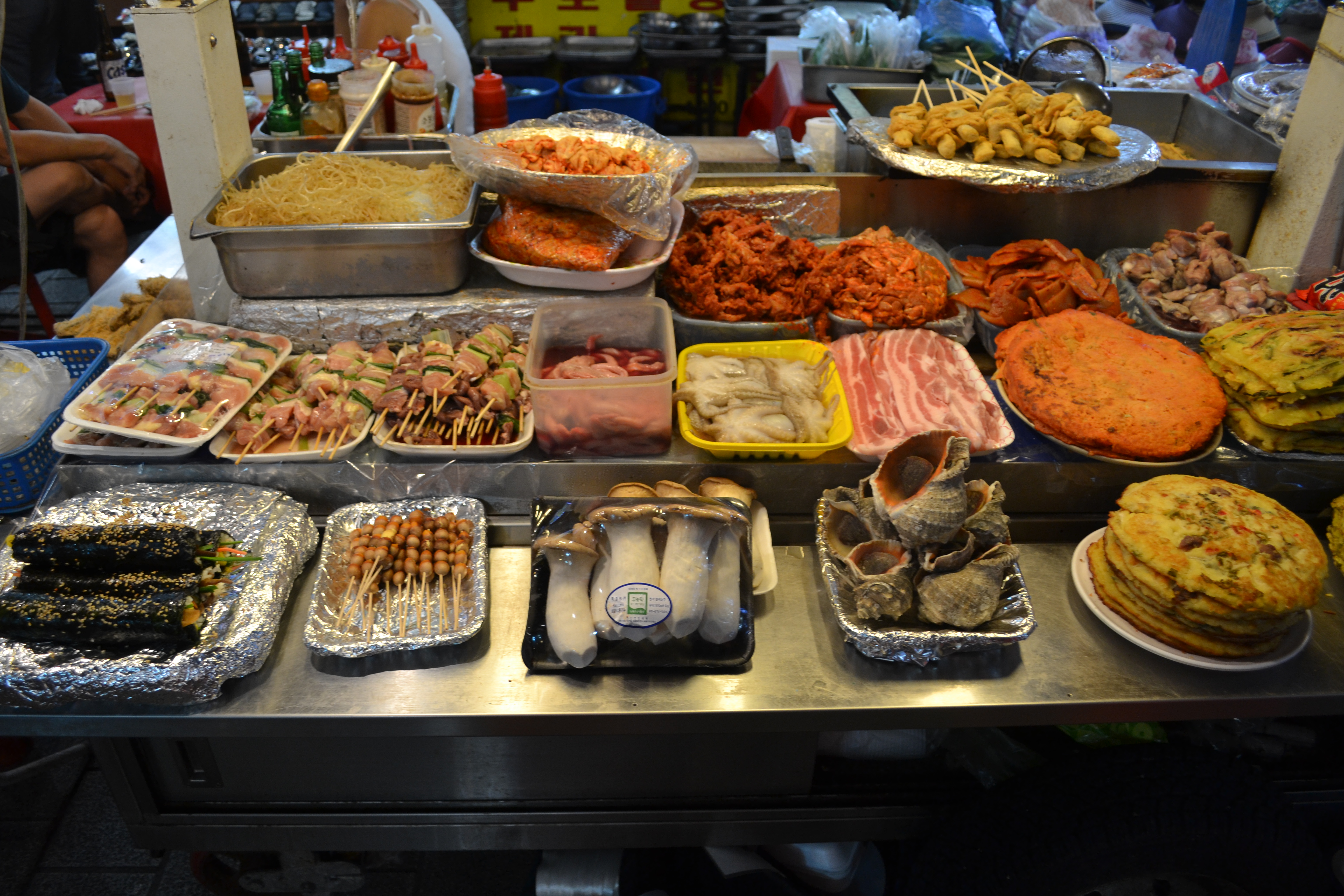Street food. To the right you see those pancakes that we had here in Oslo, but actually never tried in Korea.