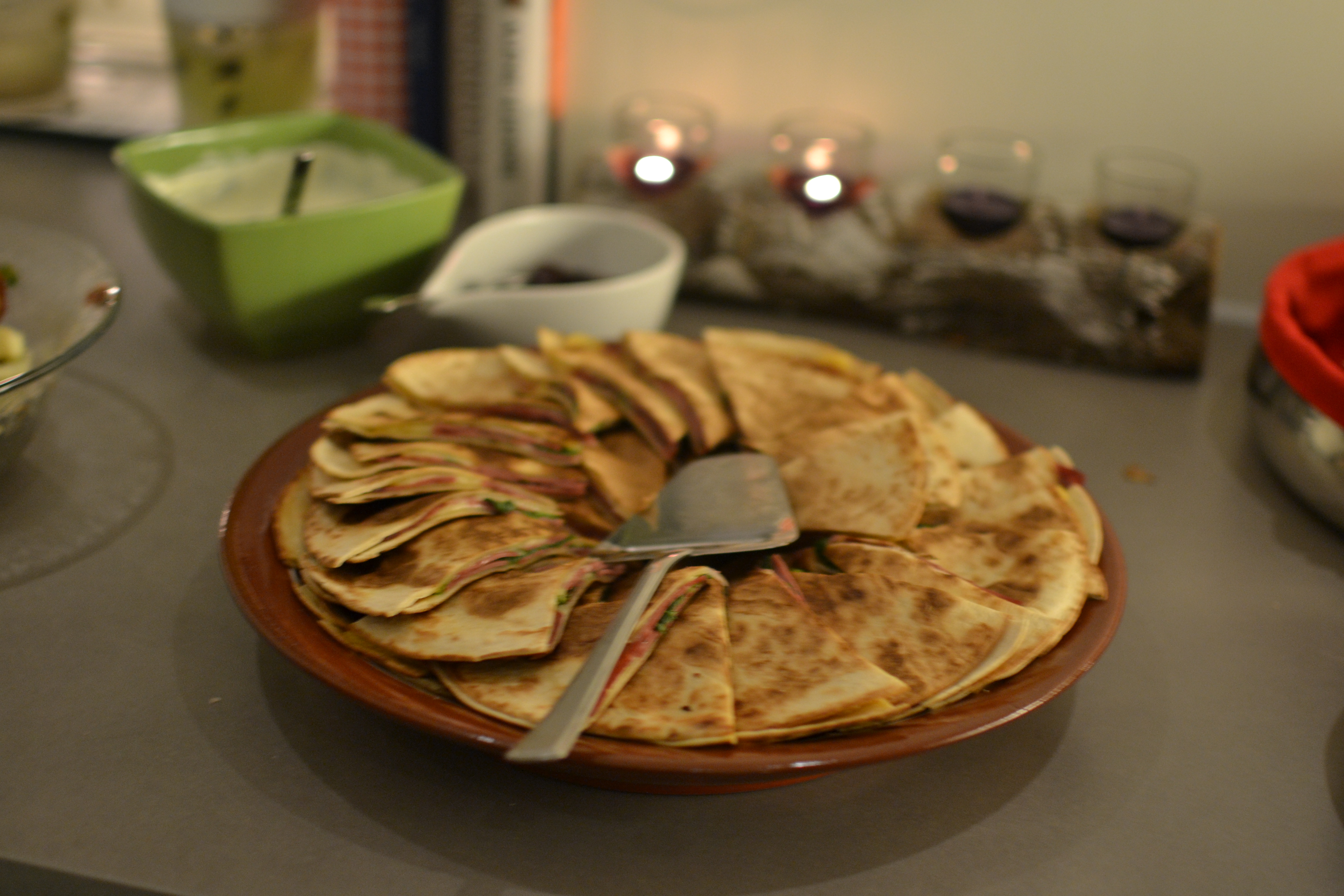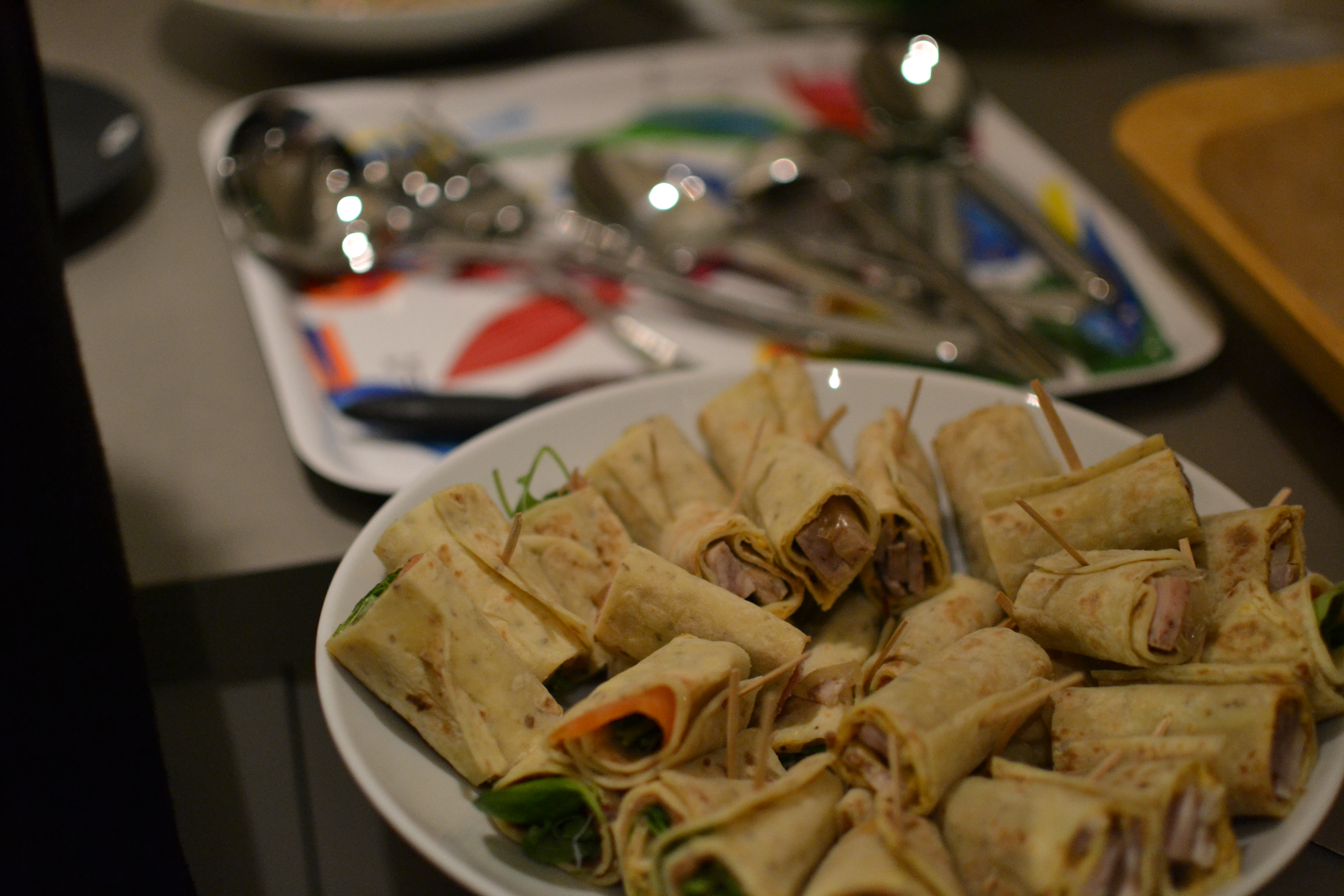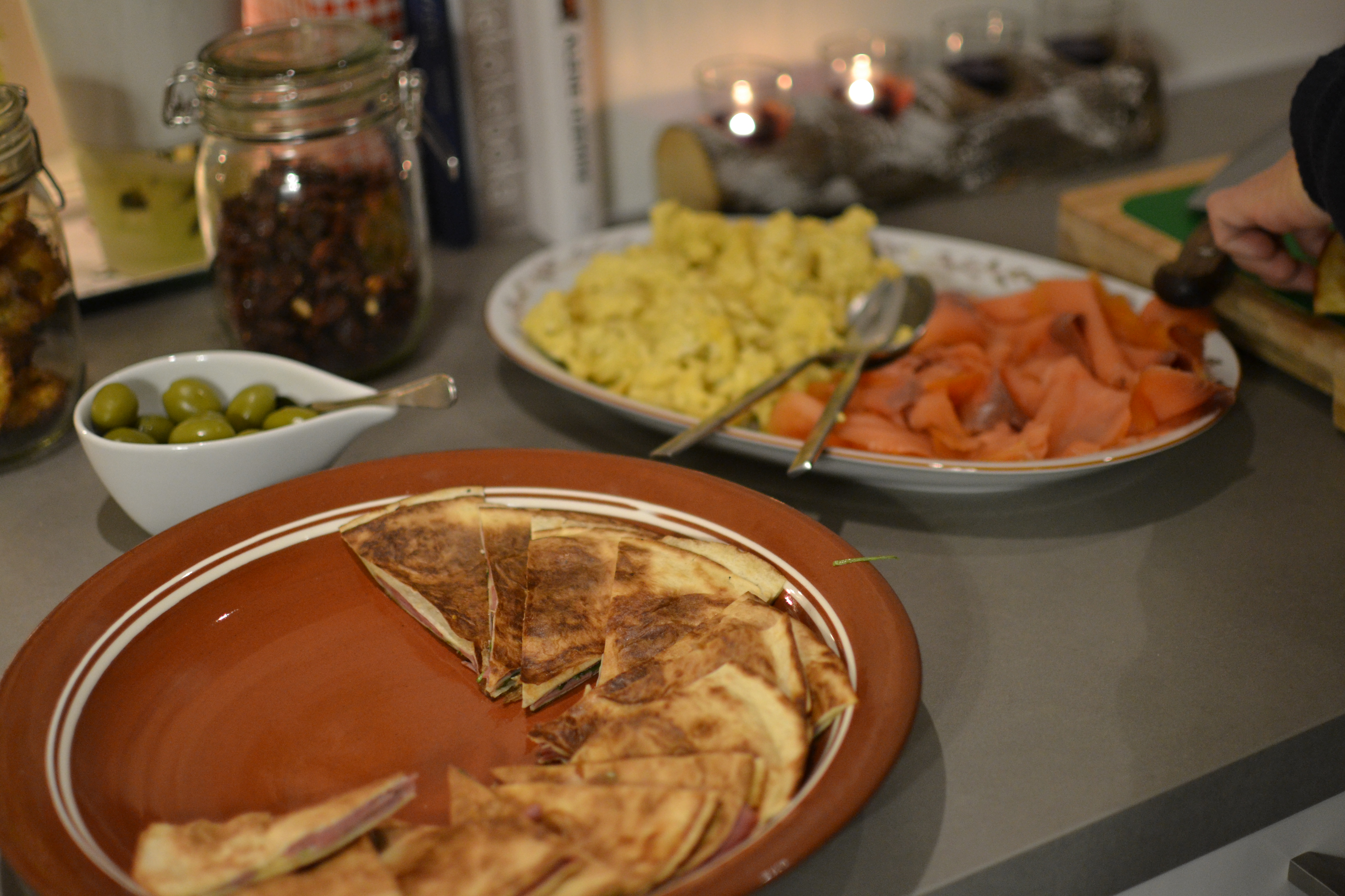 Oliven, røkelags og eggerøre. Juletorillas med spennende fyll, varmes i ovnen rett før servering.