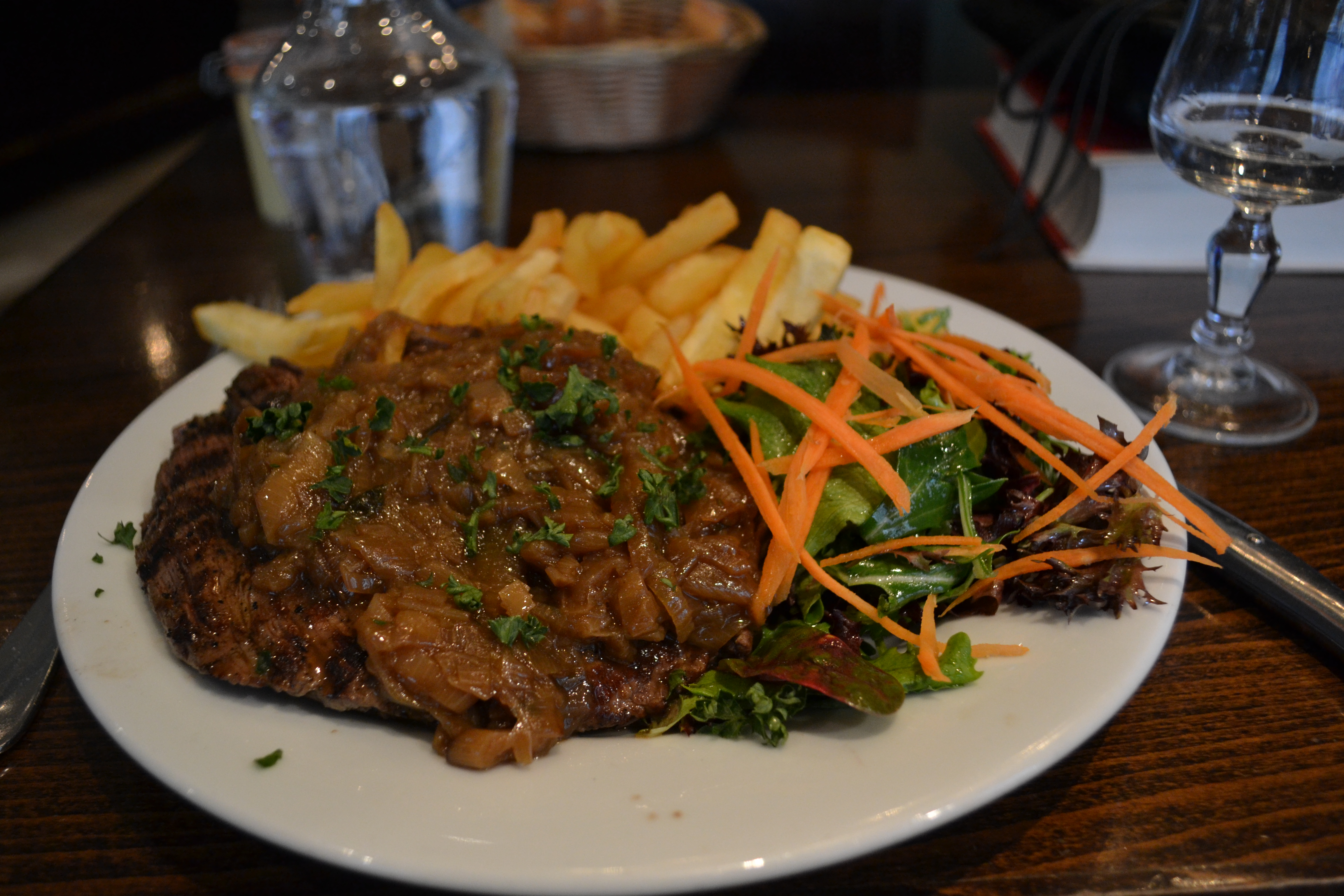 When in doubt, have steak. Ask for “bleu”, it means blue. I think it is the best thing about French, they don’t have a word for “rare” (as in “how do you like your steak”), they say blue.